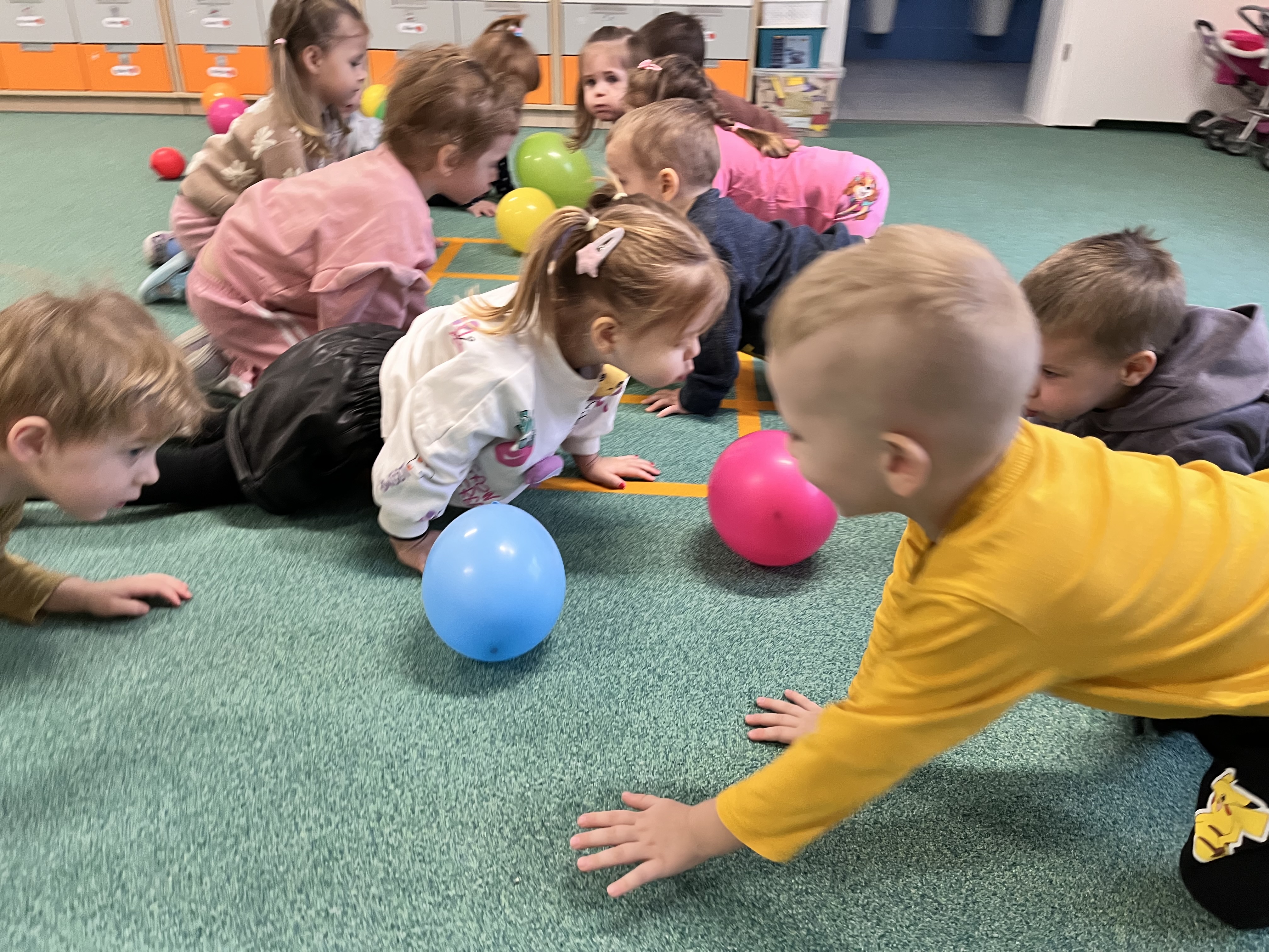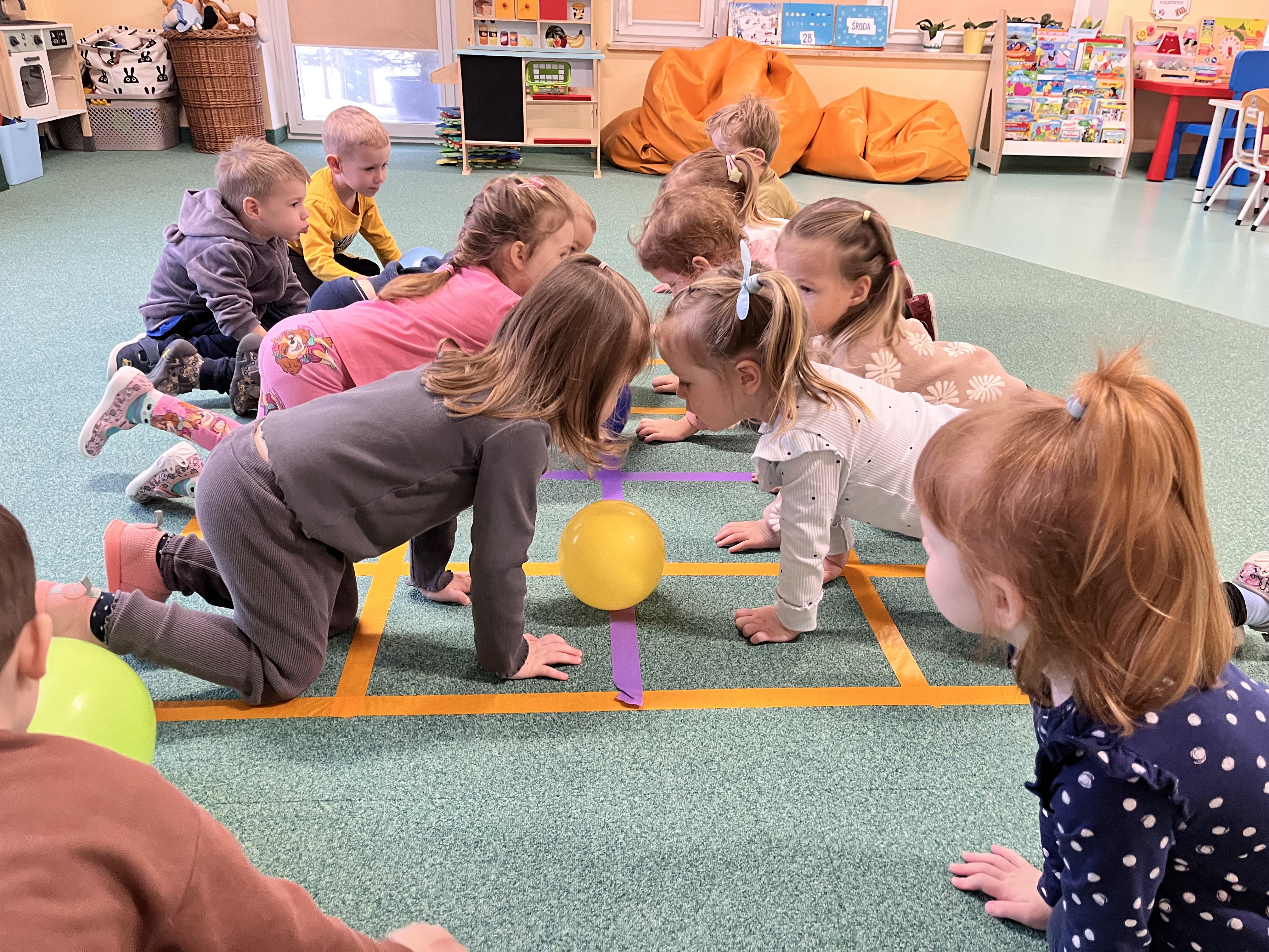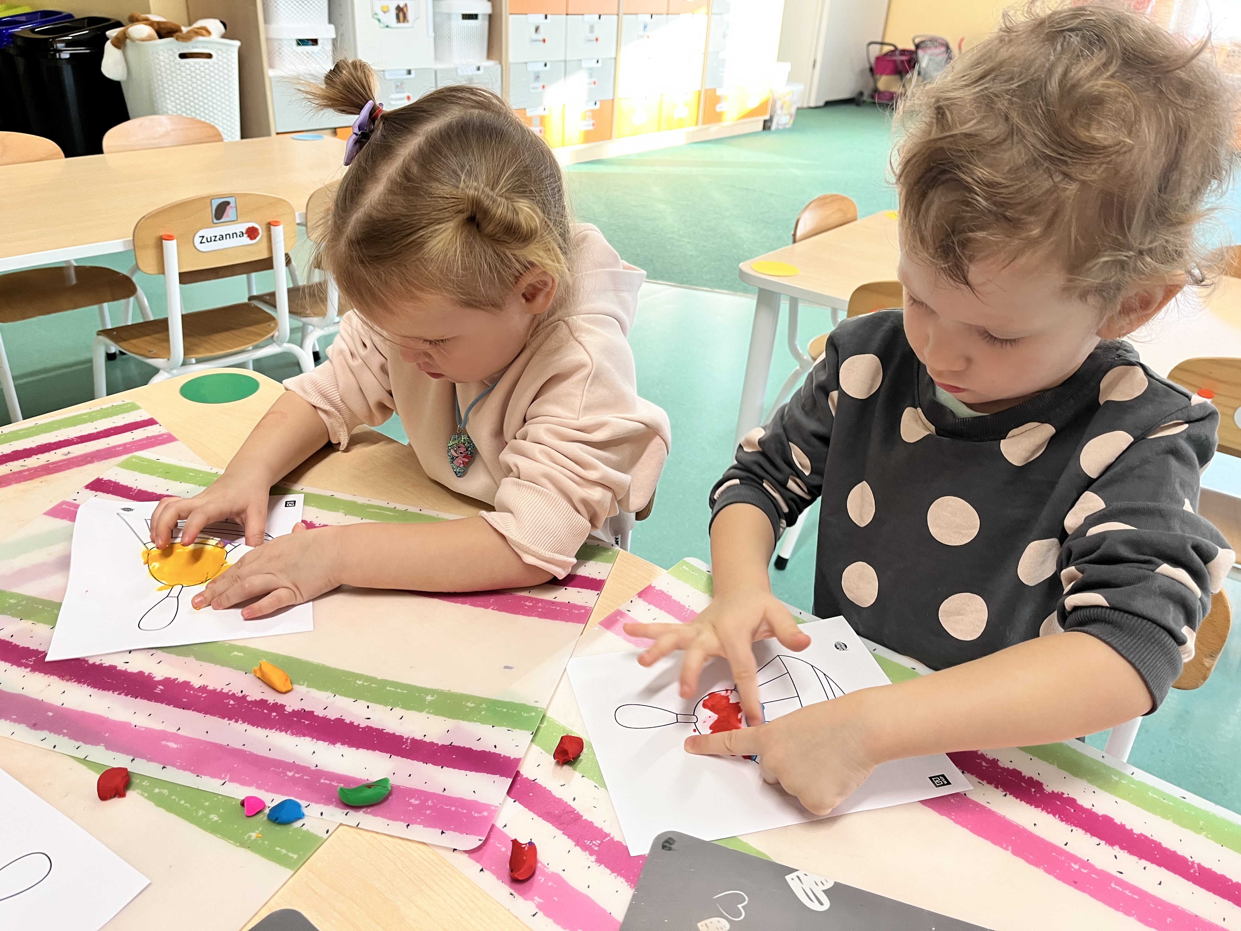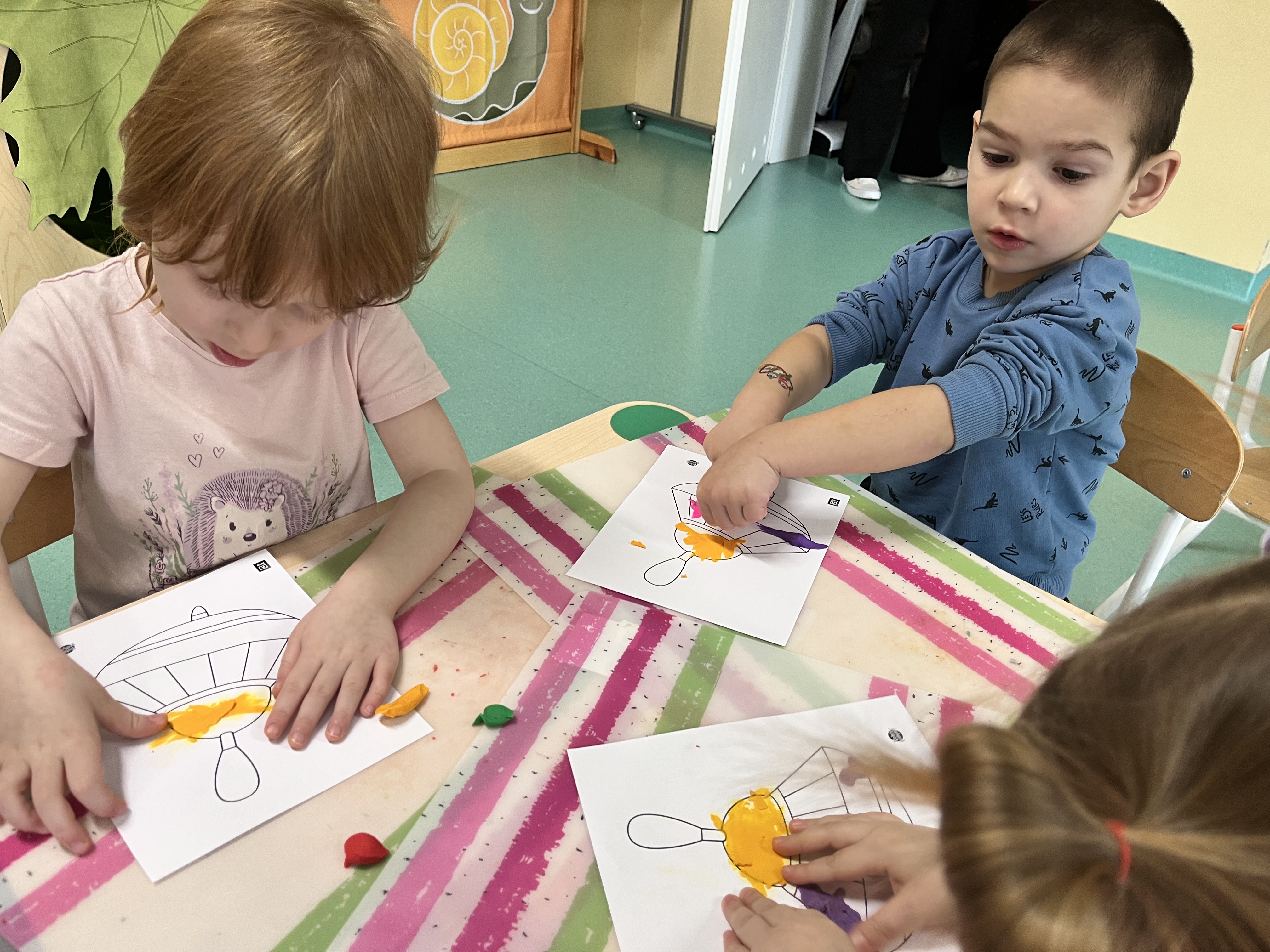 Aksamitki chętnie angażowały się także w zabawy twórcze – lepienie z plasteliny, zabawy z balonami i swobodne działania plastyczne sprawiły dzieciom wiele radości i pobudzały wyobraźnię.