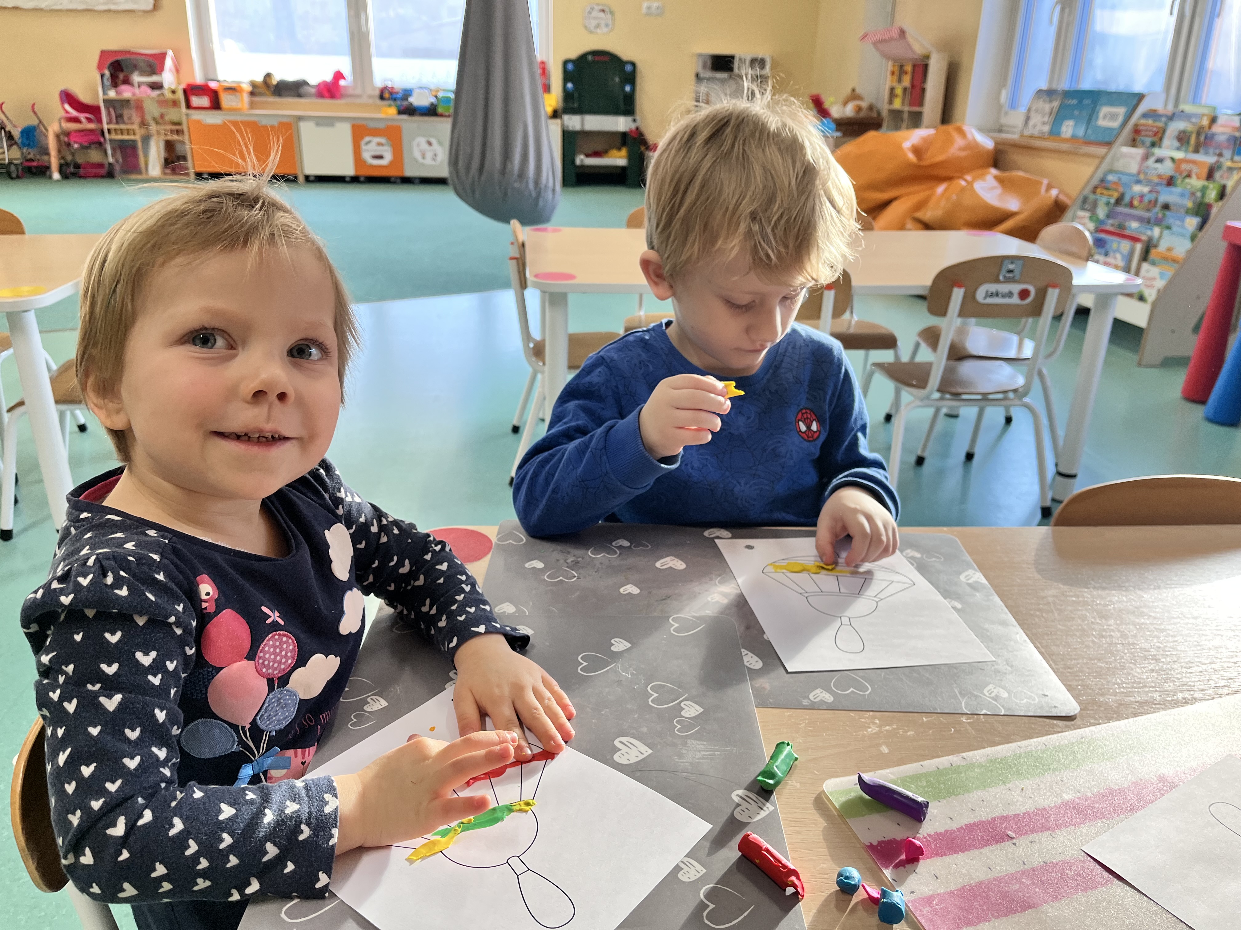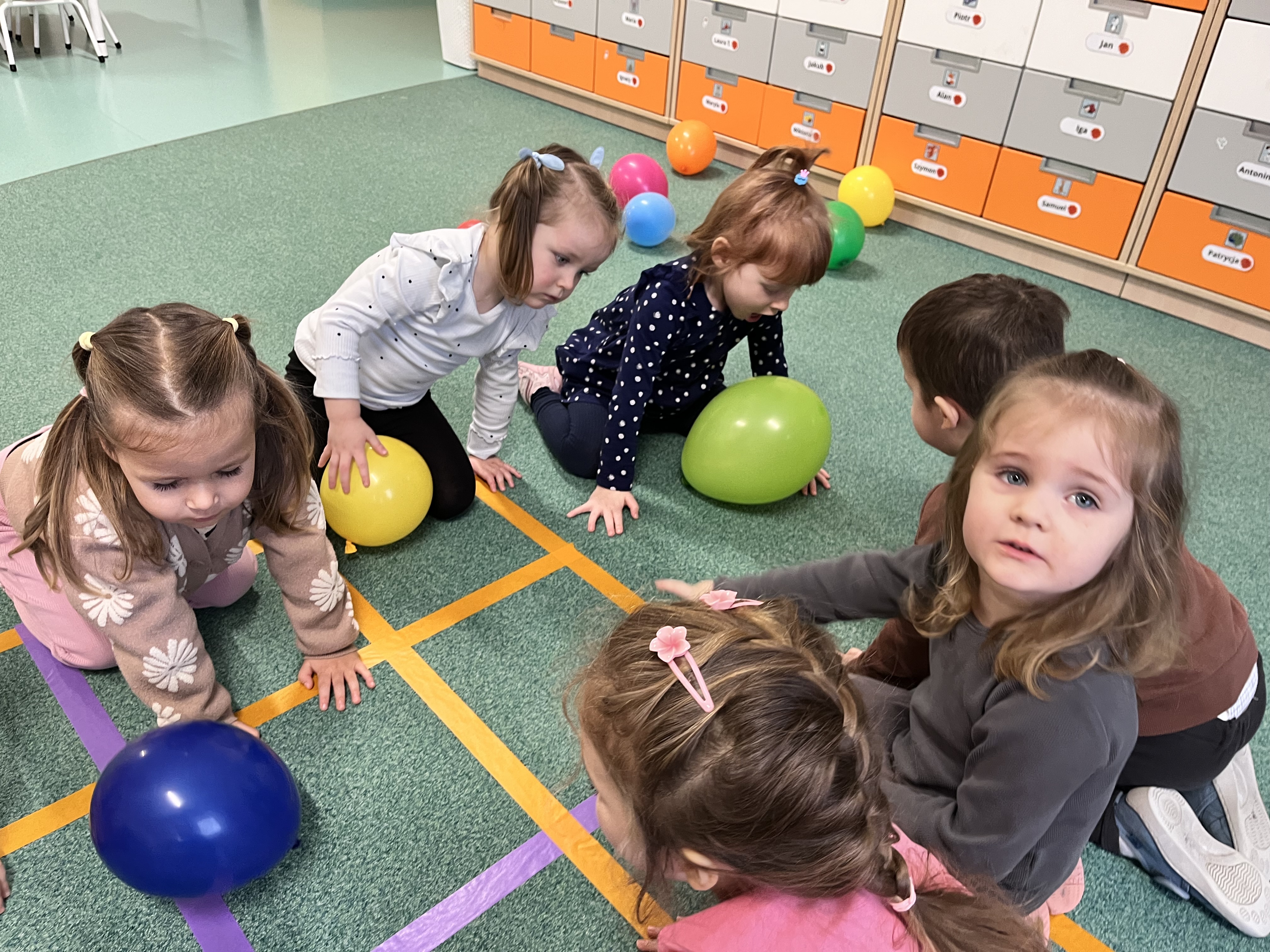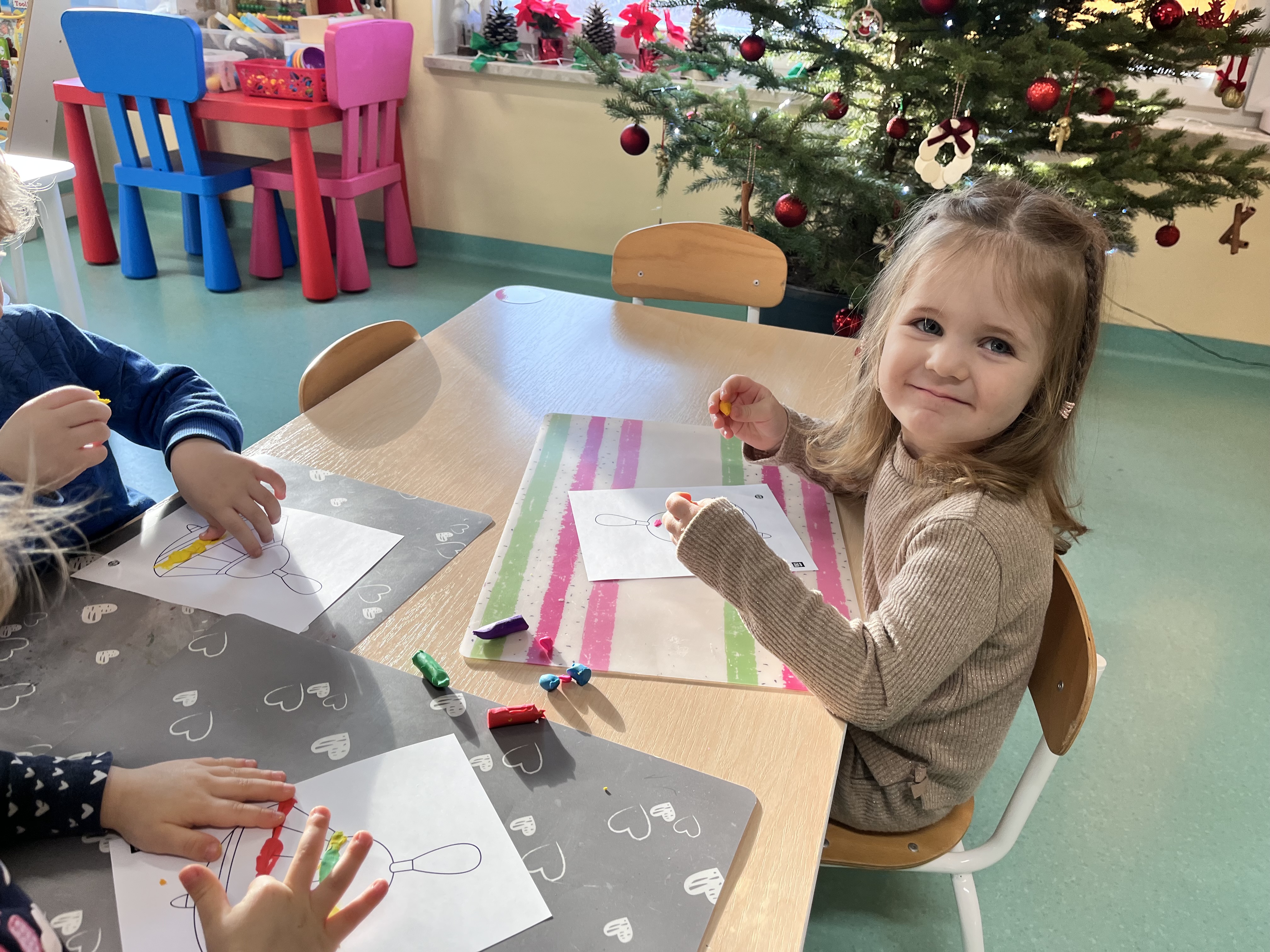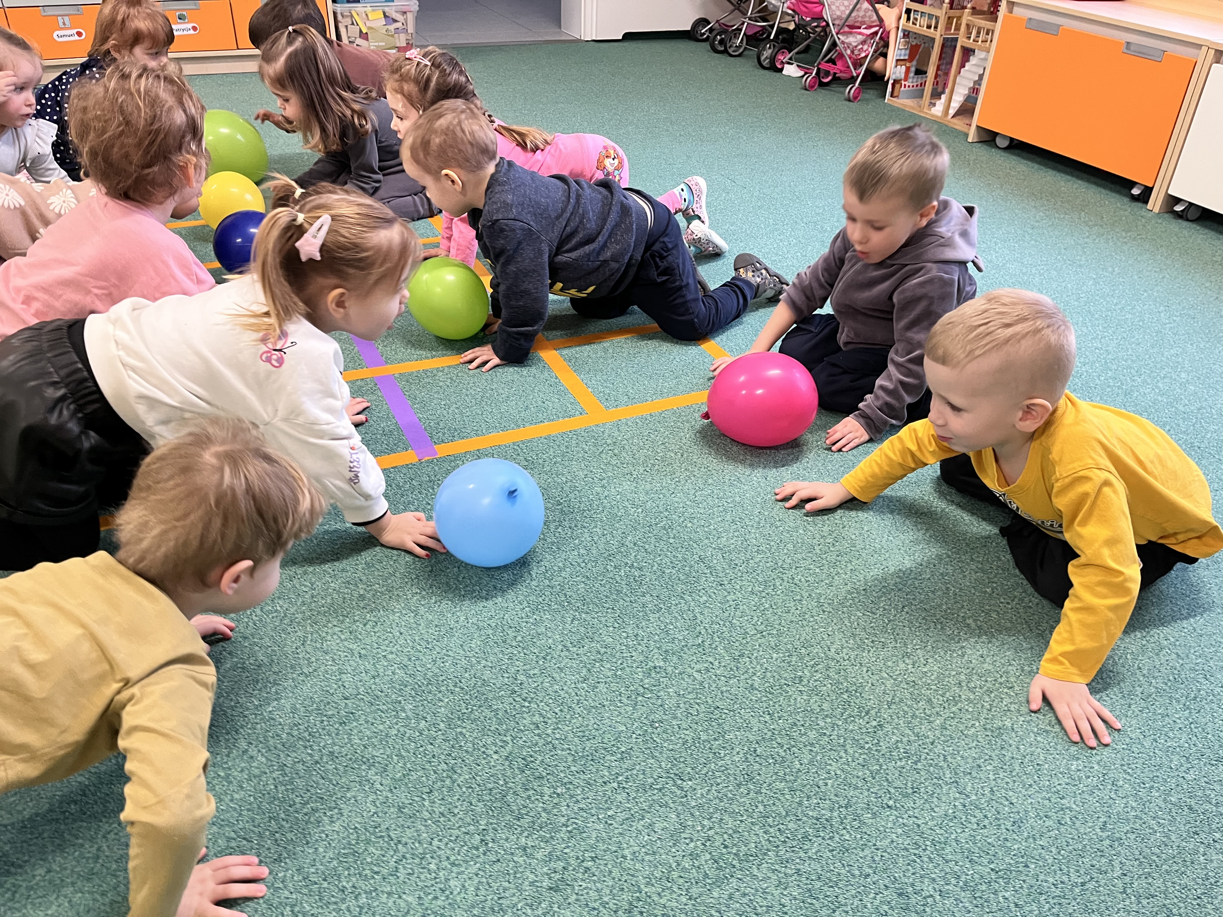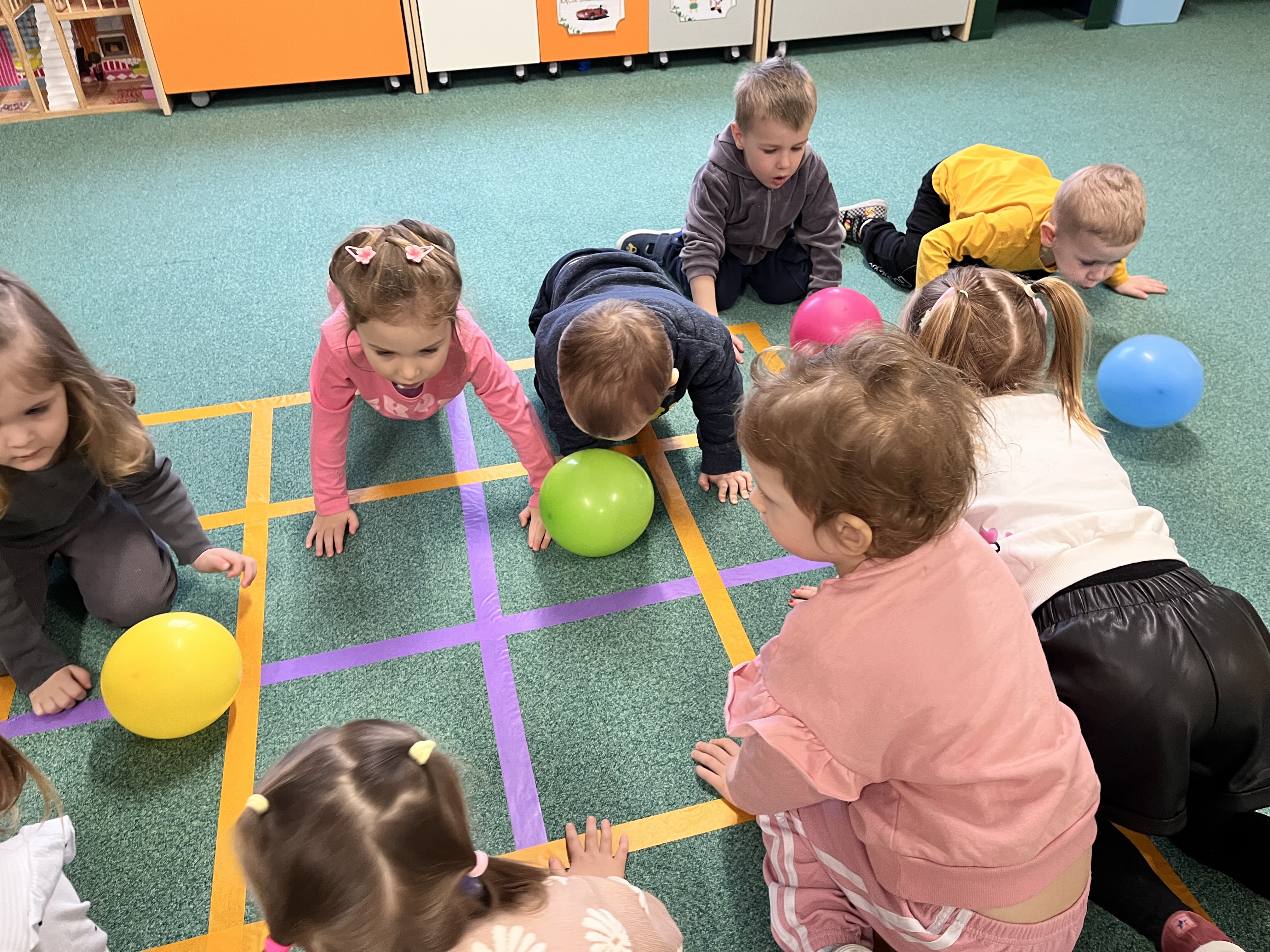 Aksamitki chętnie angażowały się także w zabawy twórcze – lepienie z plasteliny, zabawy z balonami i swobodne działania plastyczne sprawiły dzieciom wiele radości i pobudzały wyobraźnię.