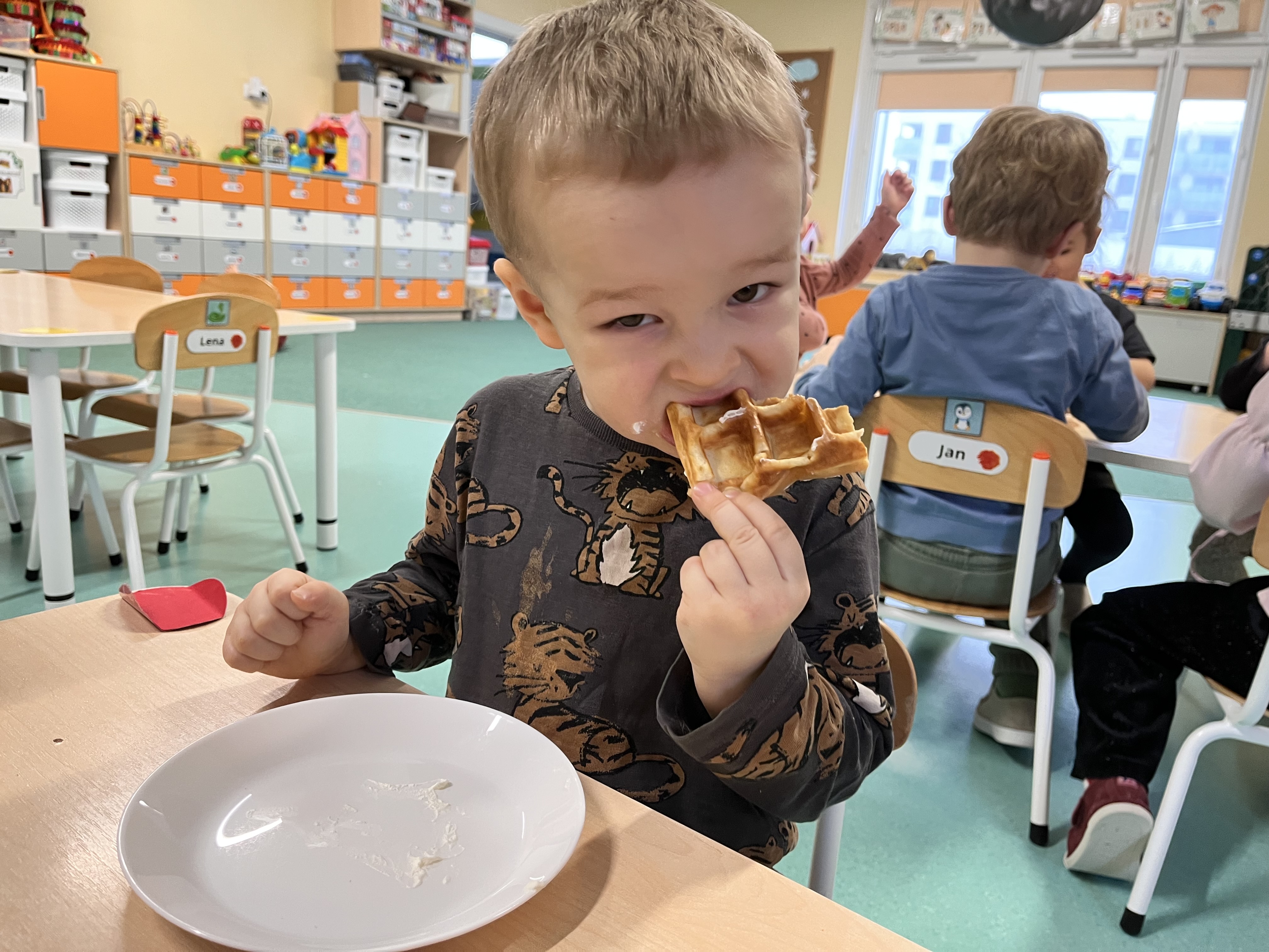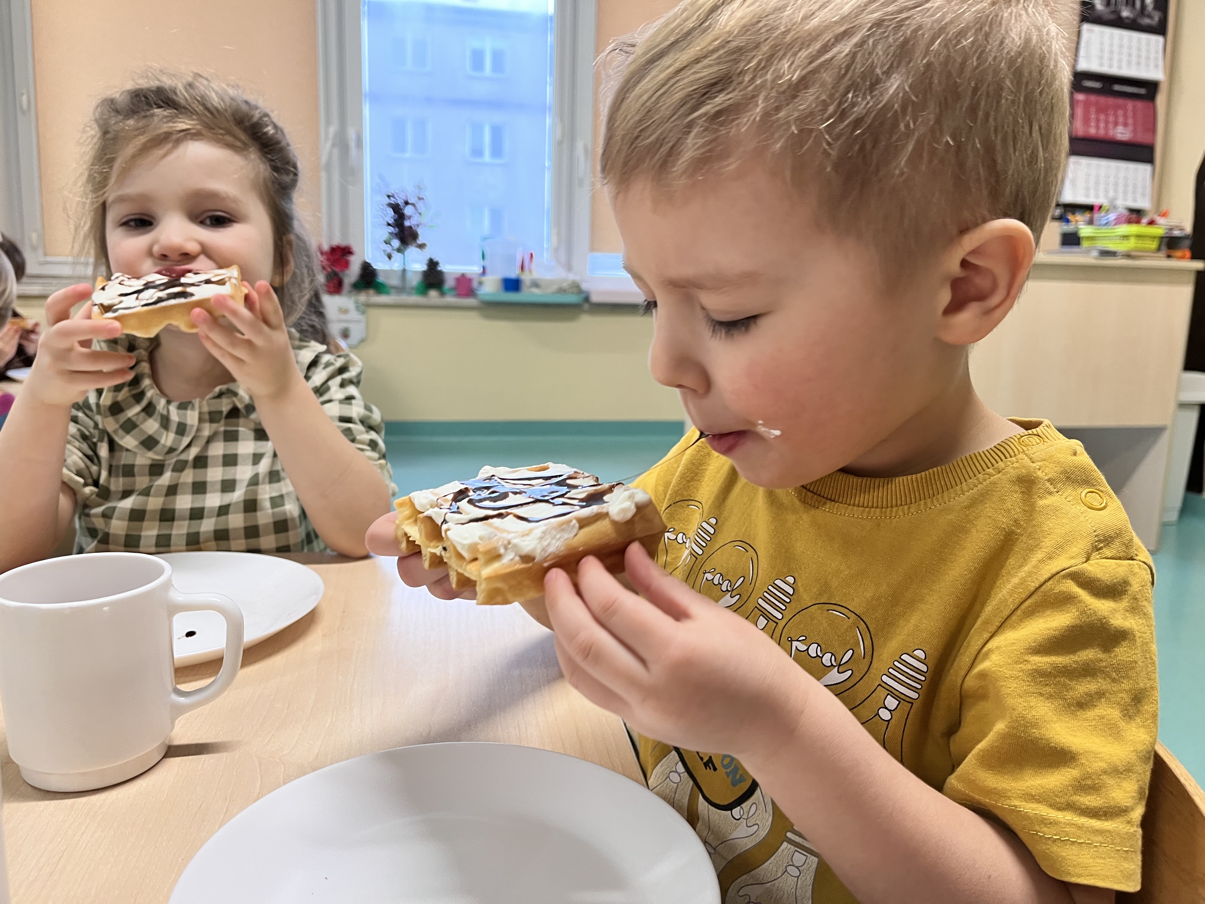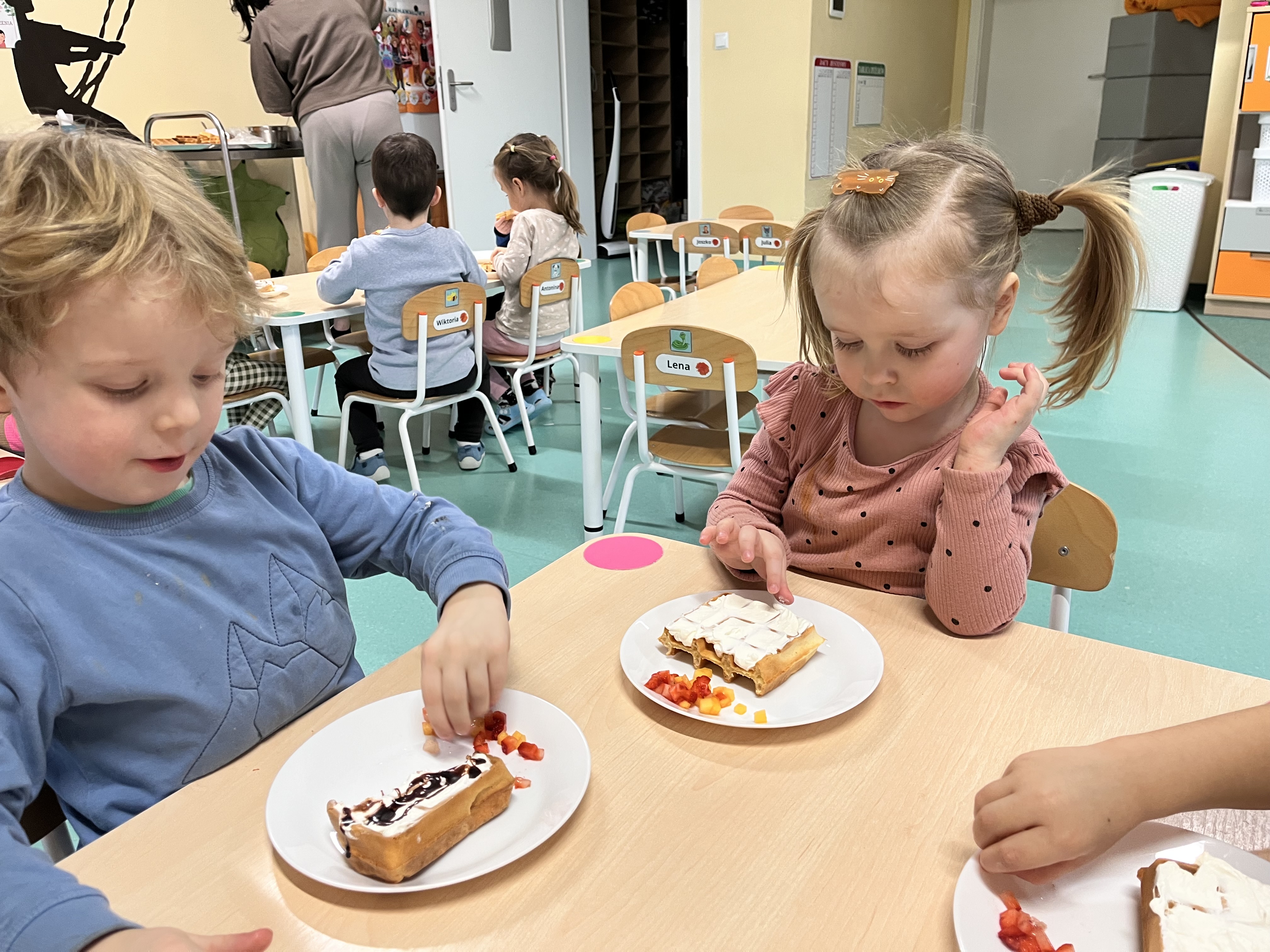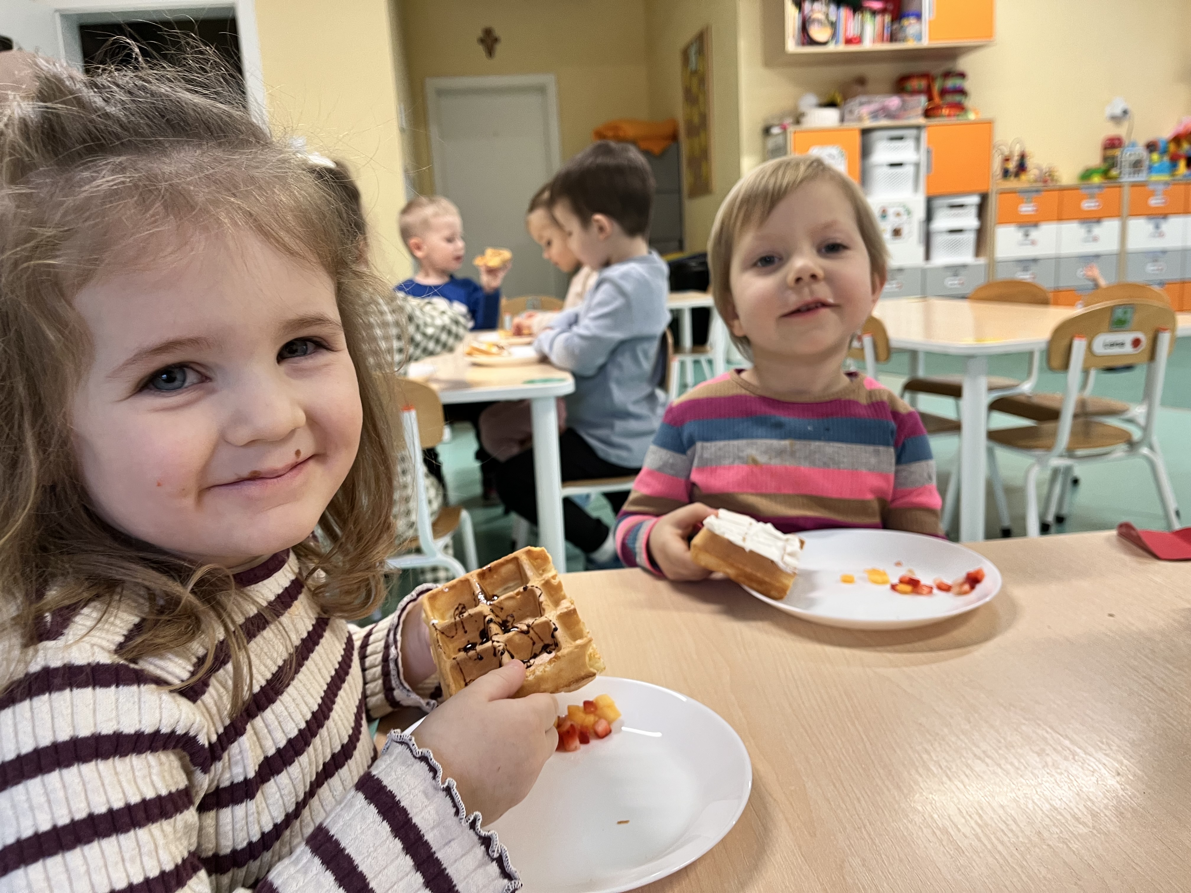 Ferie zakończyliśmy wyjątkowo słodkim akcentem – pysznymi goframi, przygotowanymi z ogromnym sercem przez nasze niezastąpione Panie Kucharki.