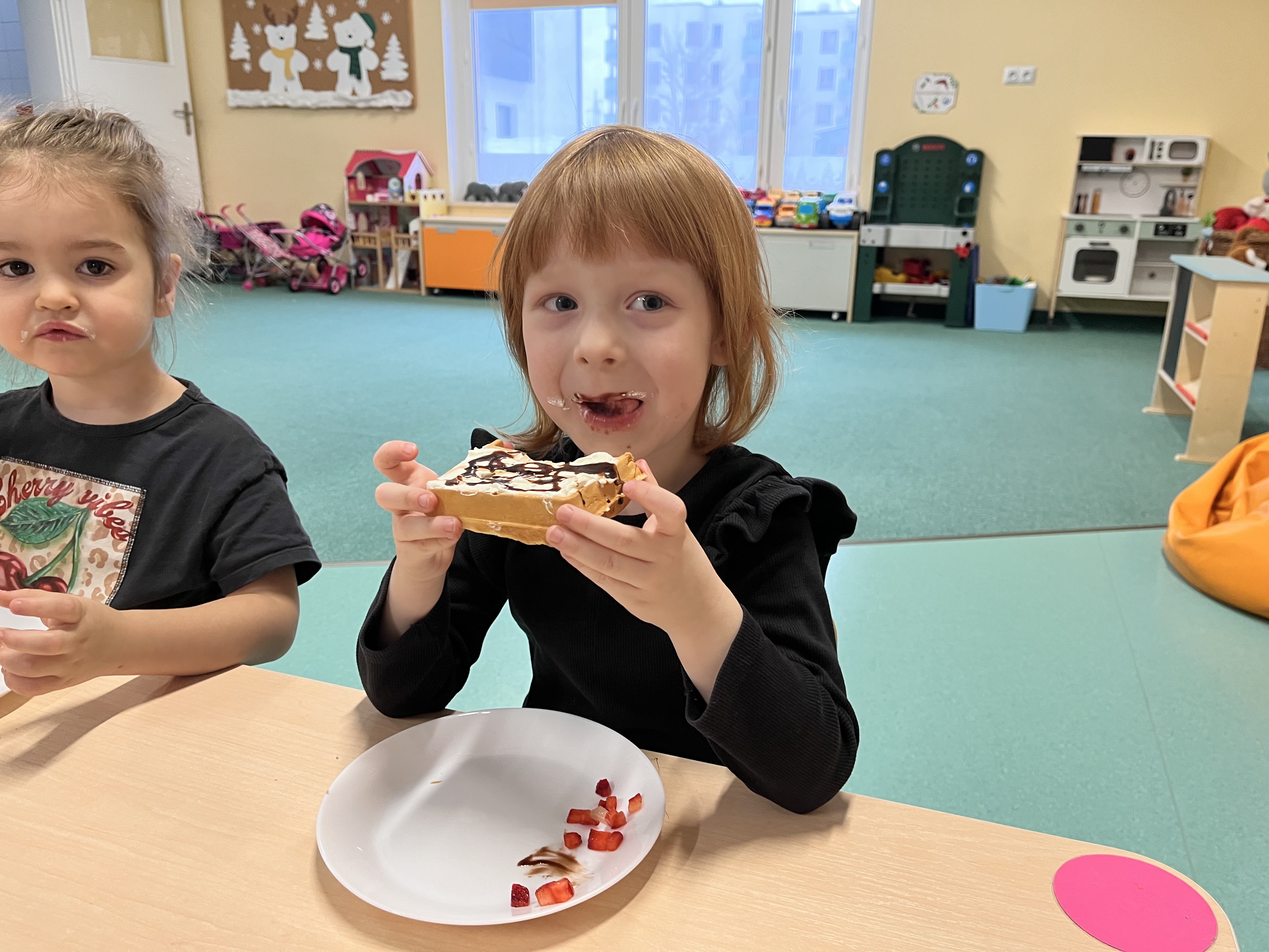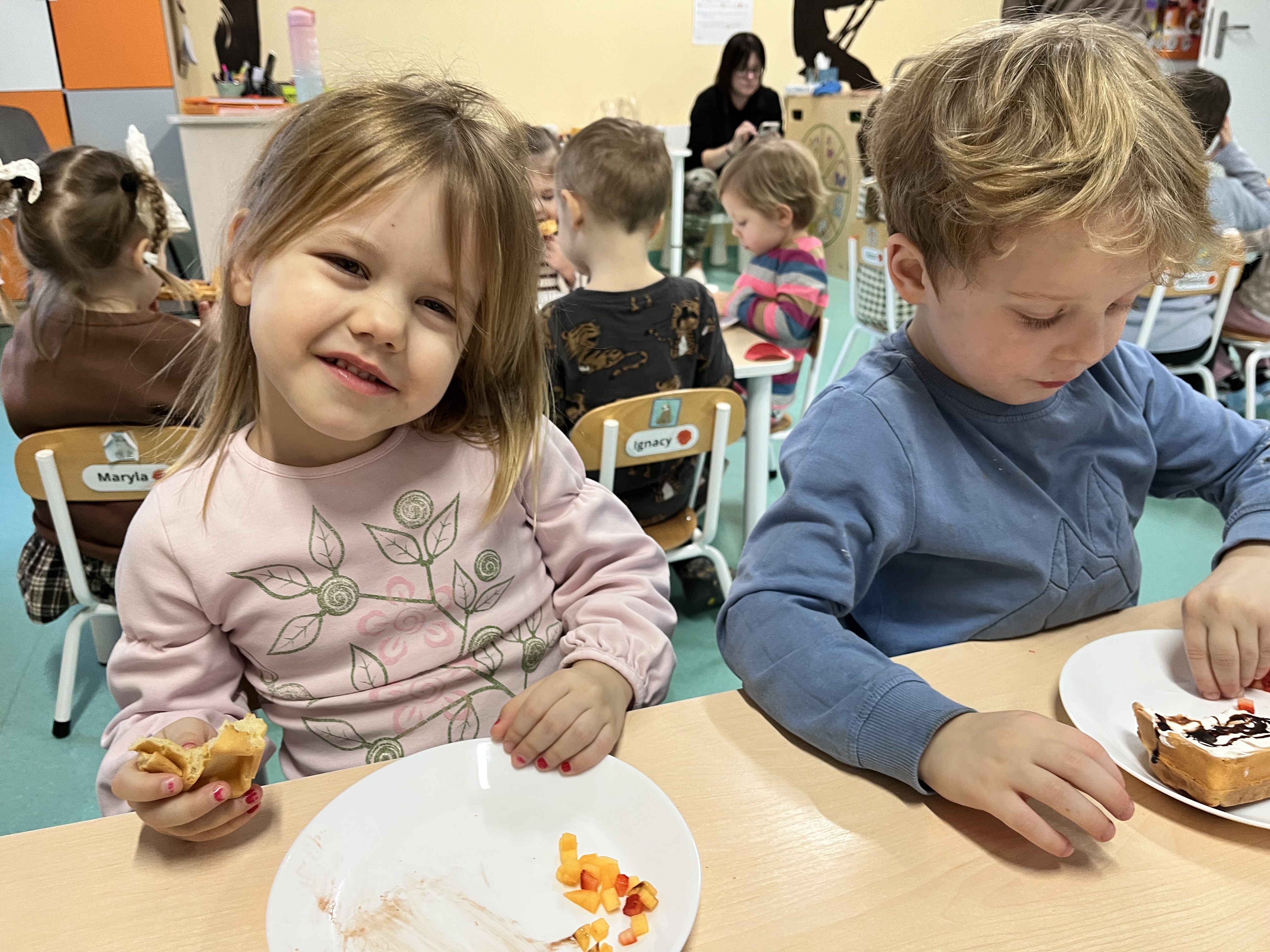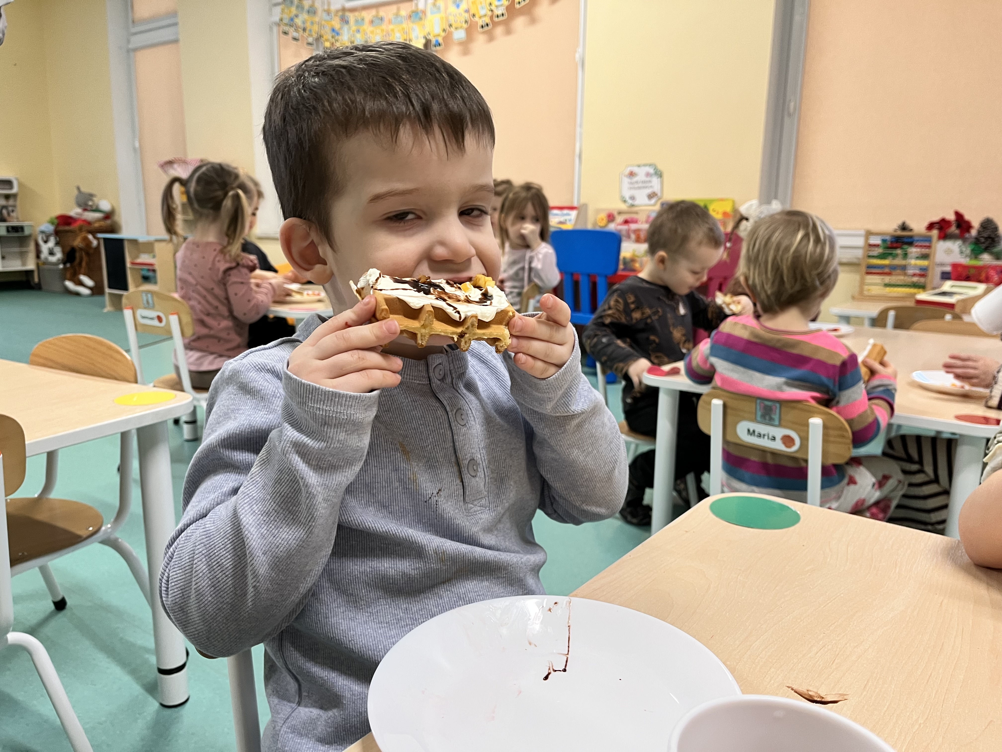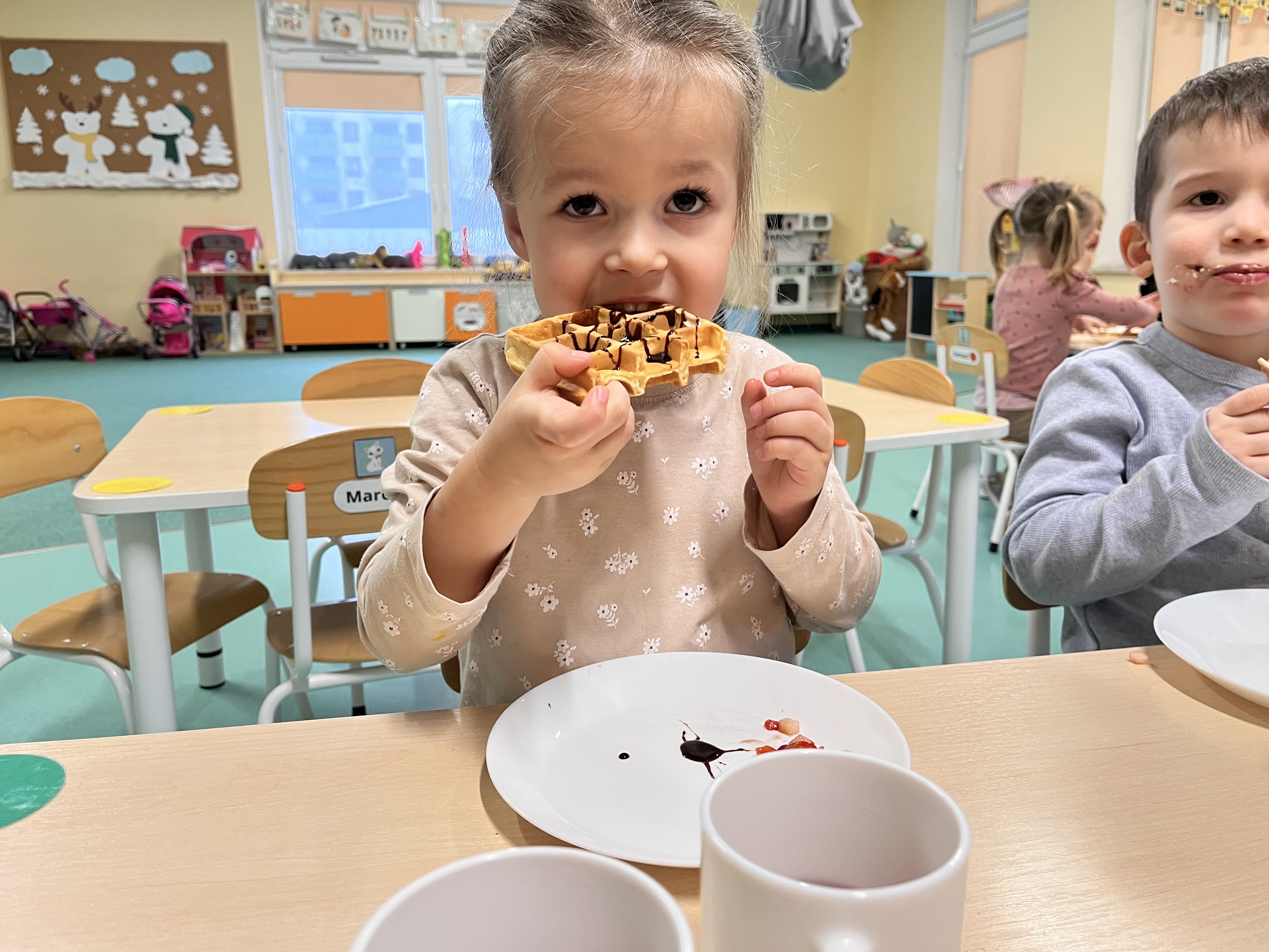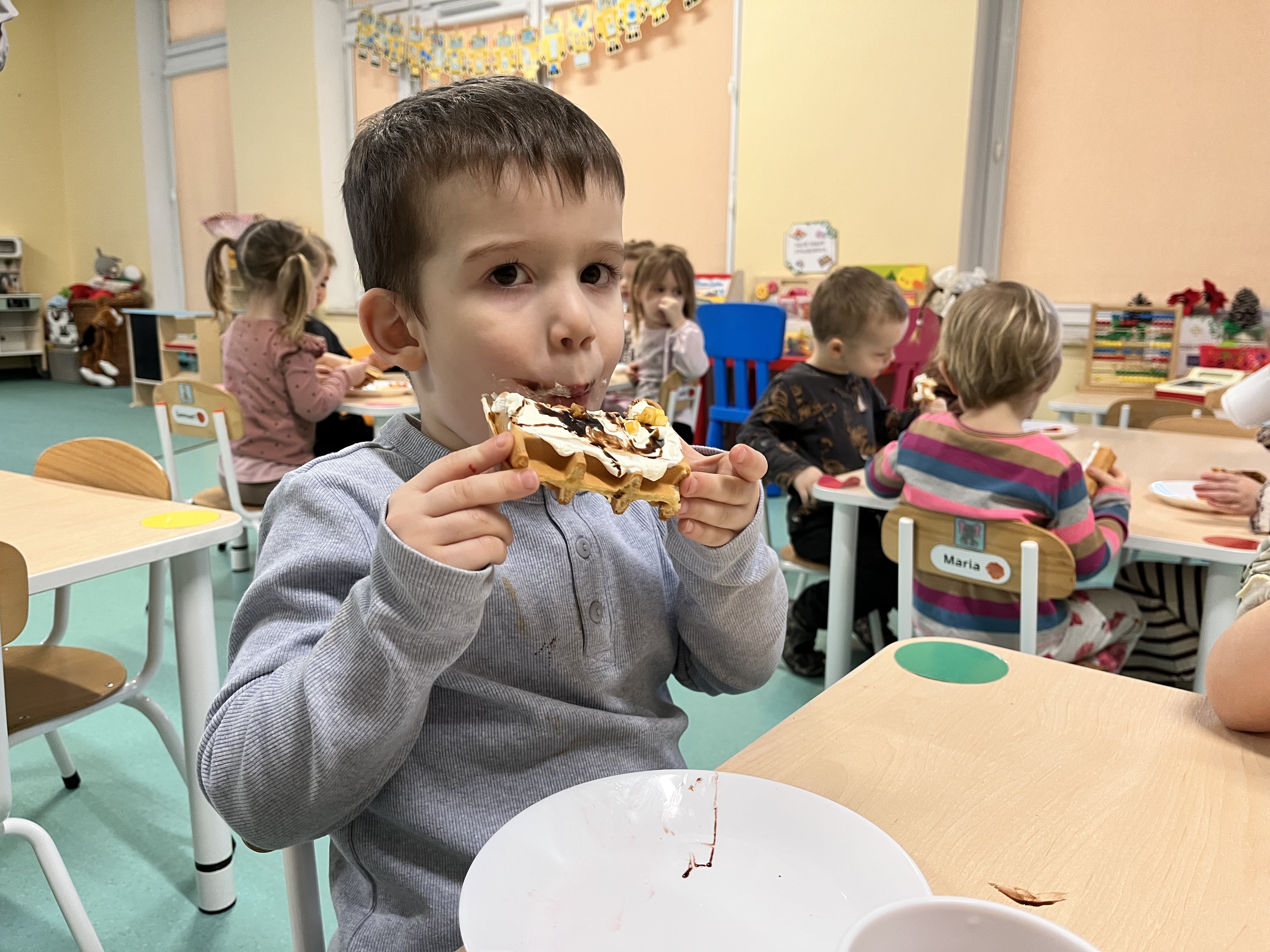 Ferie zakończyliśmy wyjątkowo słodkim akcentem – pysznymi goframi, przygotowanymi z ogromnym sercem przez nasze niezastąpione Panie Kucharki.