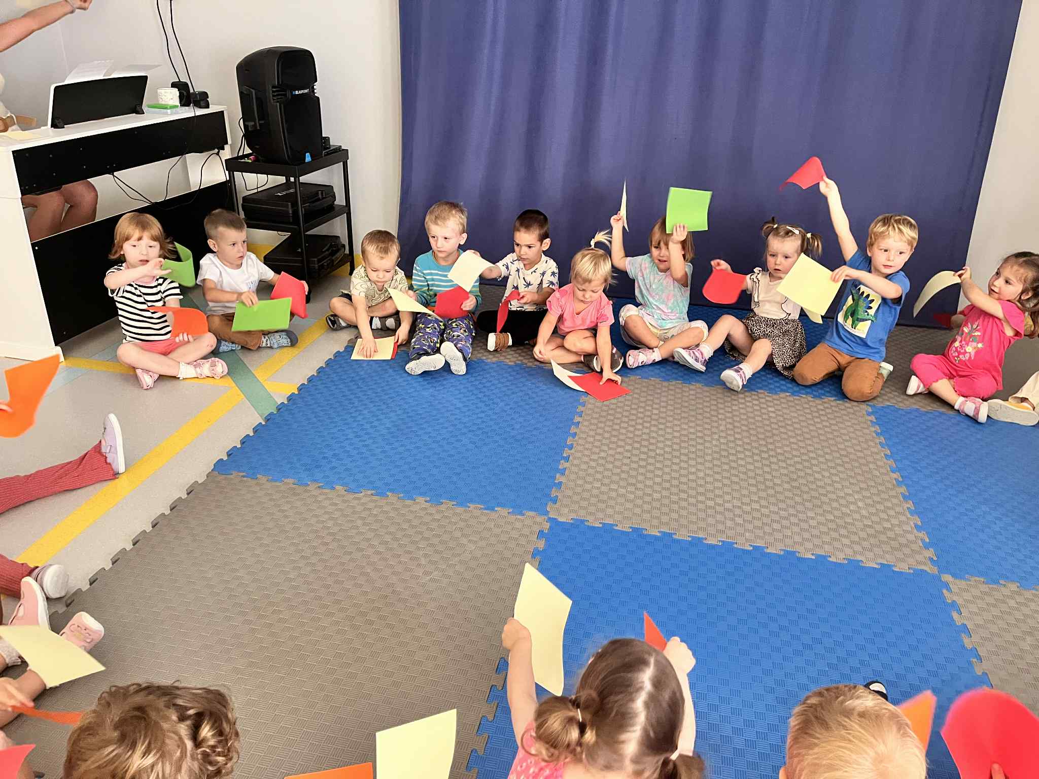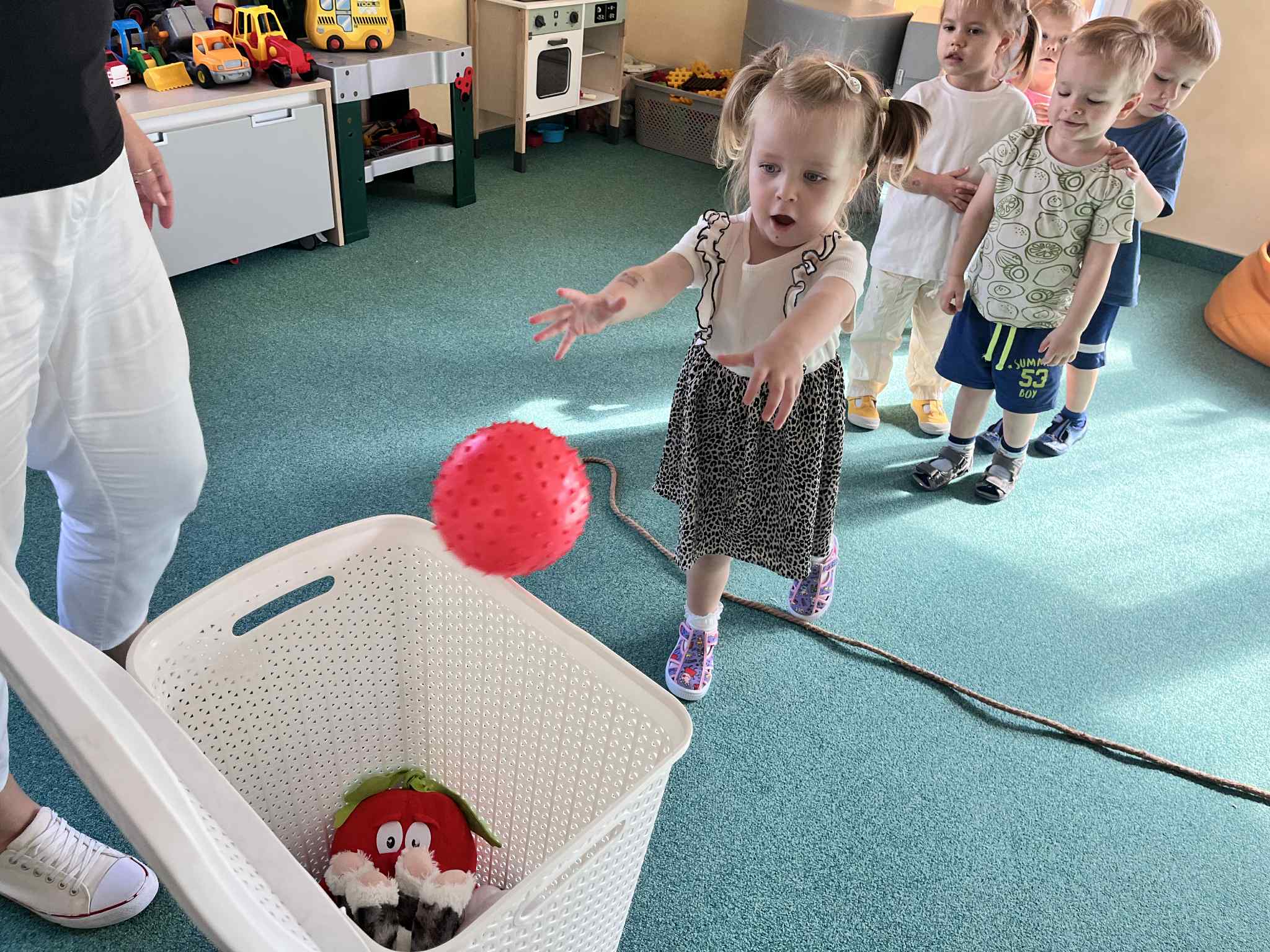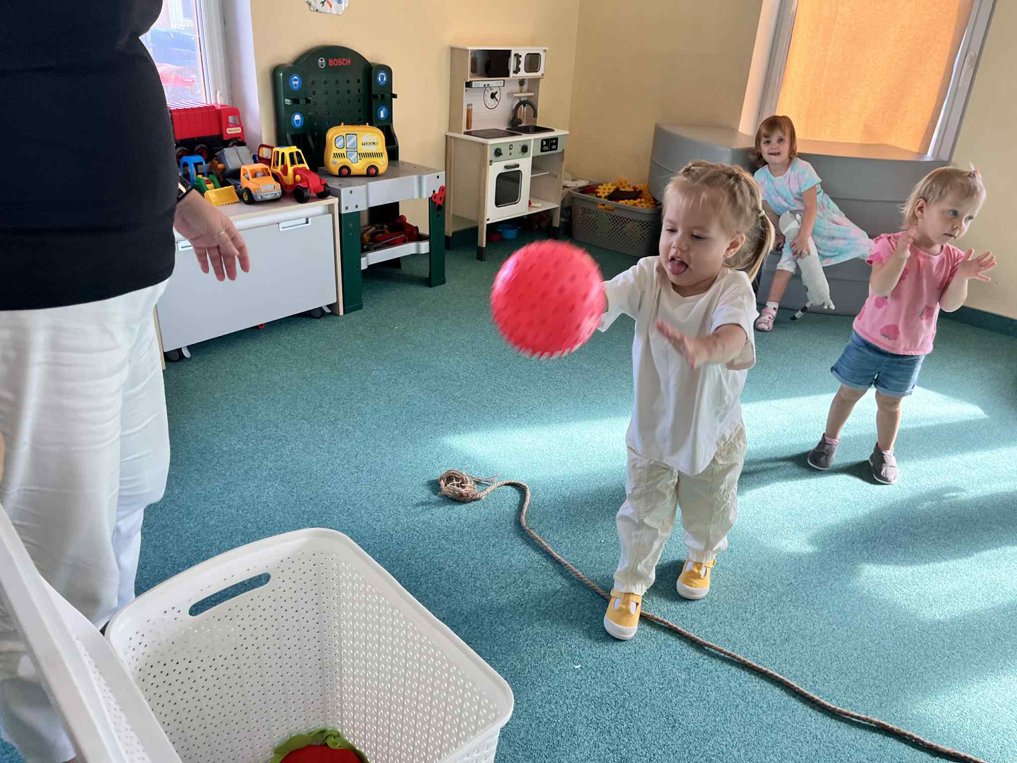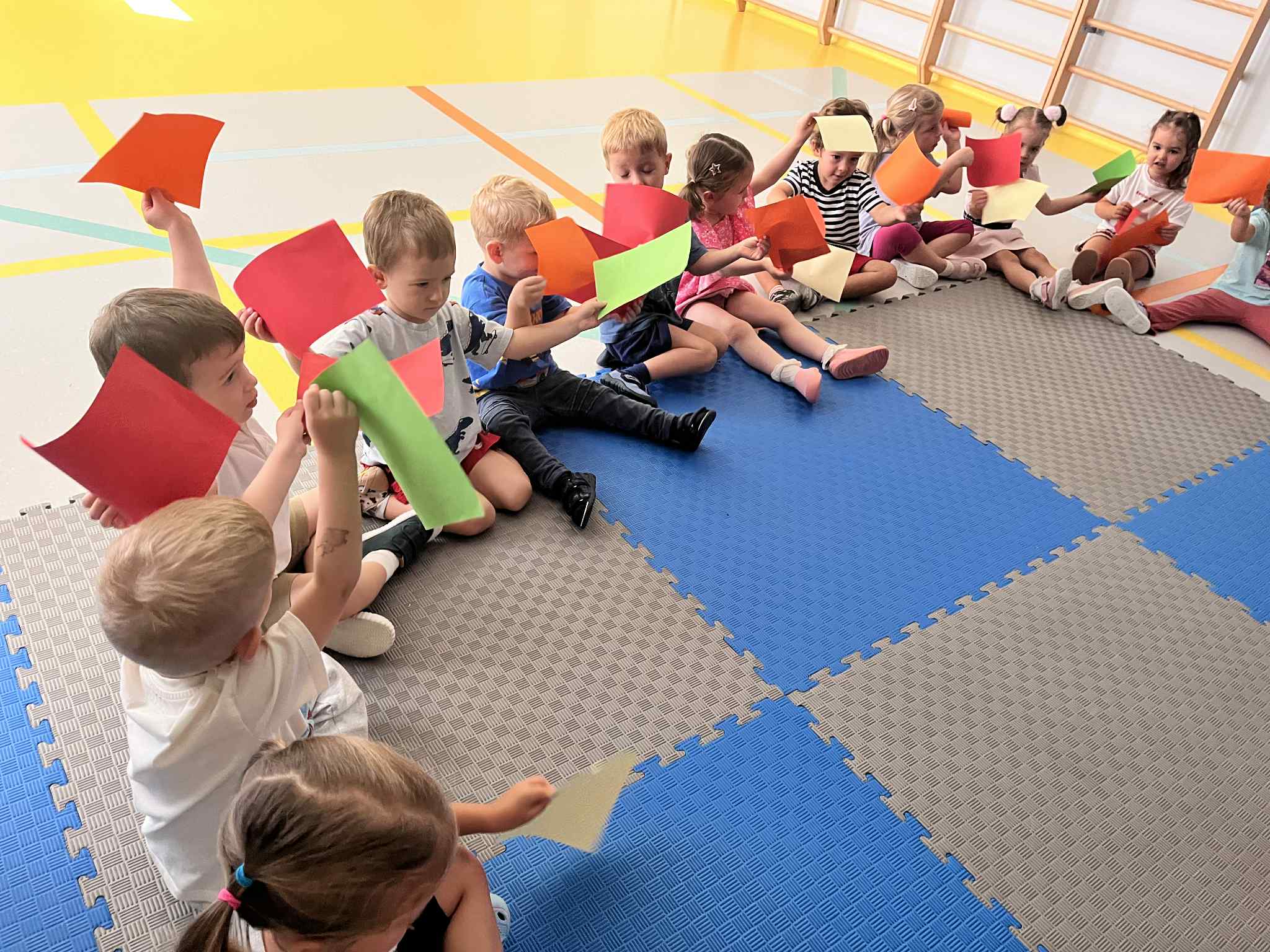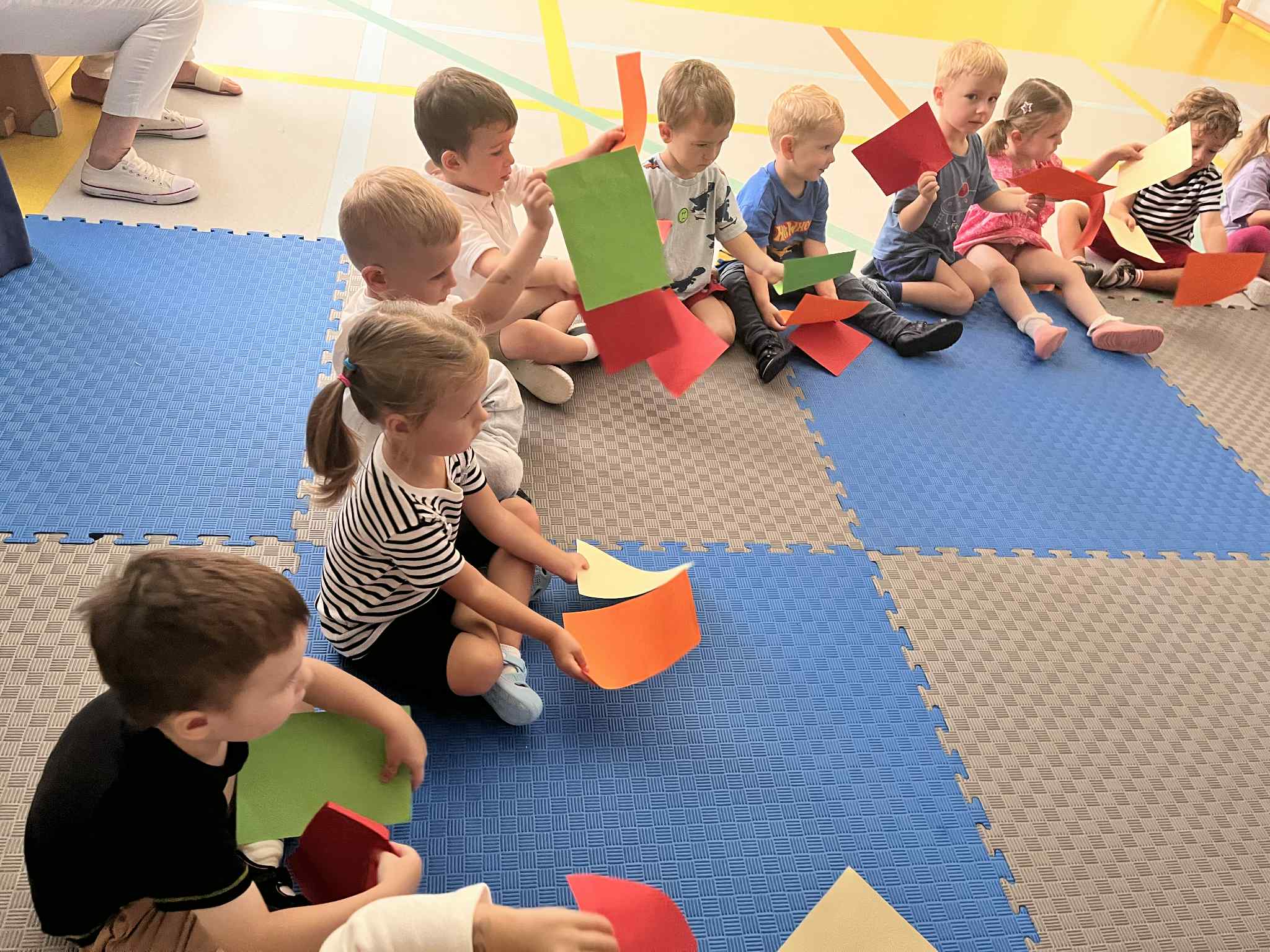 Na zajęciach rytmicznych dzieci uczyły się piosenek i zabaw ruchowych, rozwijały poczucie rytmu i koordynację ruchową. Podczas gimnastyki uczestniczyły w zabawach z elementami biegu, skoków oraz ćwiczeń równoważnych, wykorzystując przybory sportowe. Dzieci chętnie uczestniczyły w zajęciach, rozwijając swoją sprawność, kreatywność i wiedzę o otaczającym świecie. Wolny czas przedszkolaki spędzały nie tylko na zabawie swobodnej, ale również na świeżym powietrzu. Na spacerach dzieci poszukiwały oznak jesieni oraz uczyły się jak bezpiecznie zachować się na drodze.