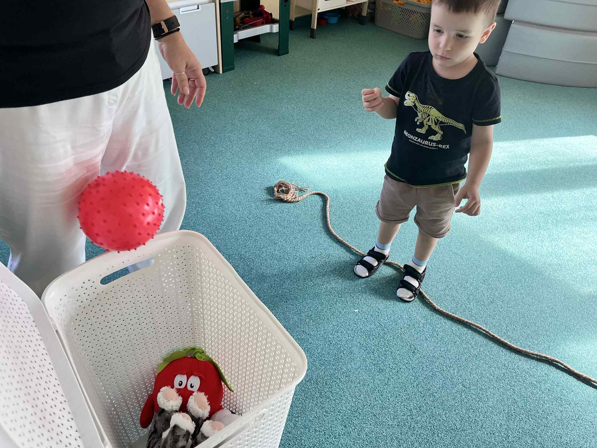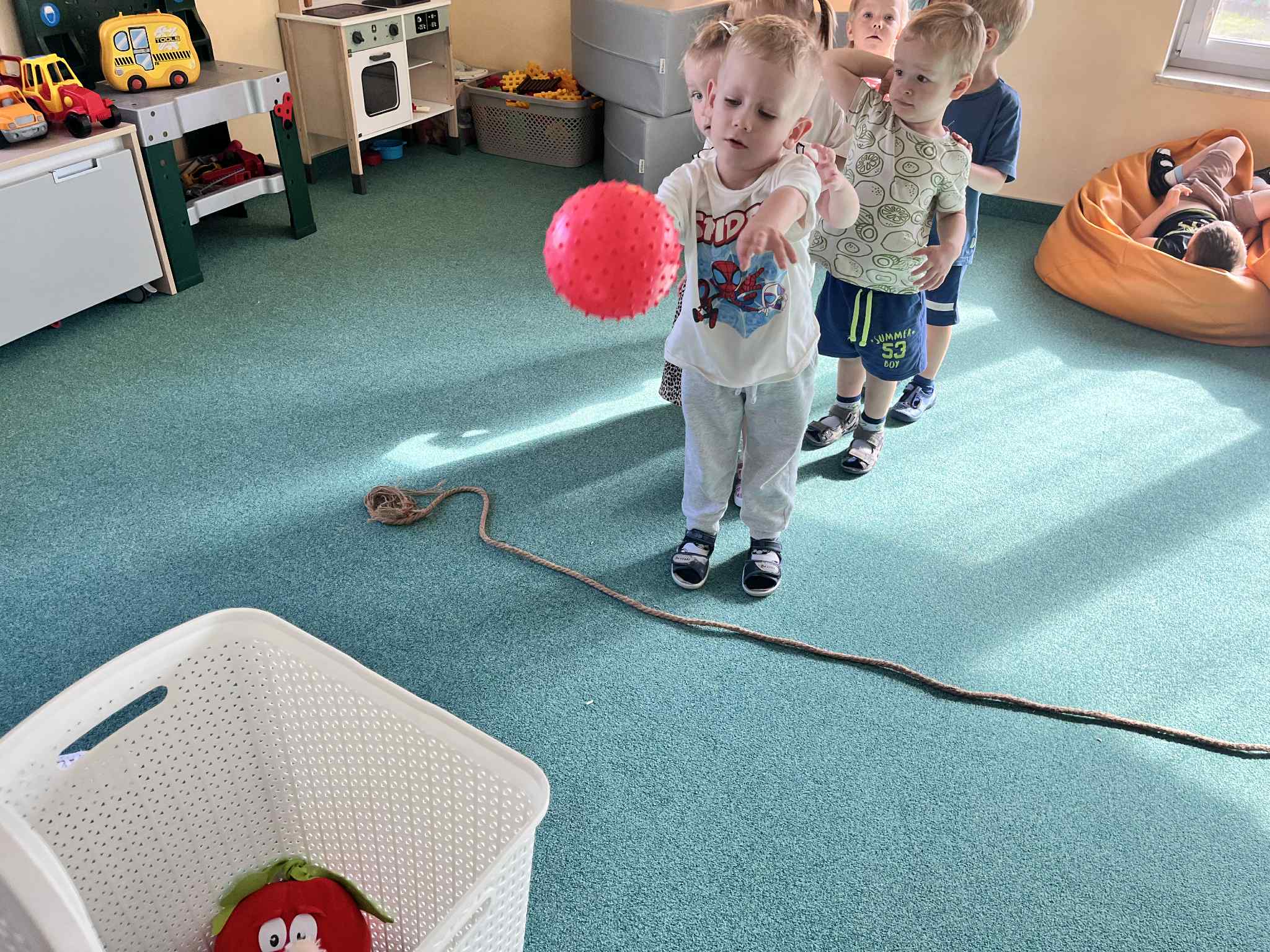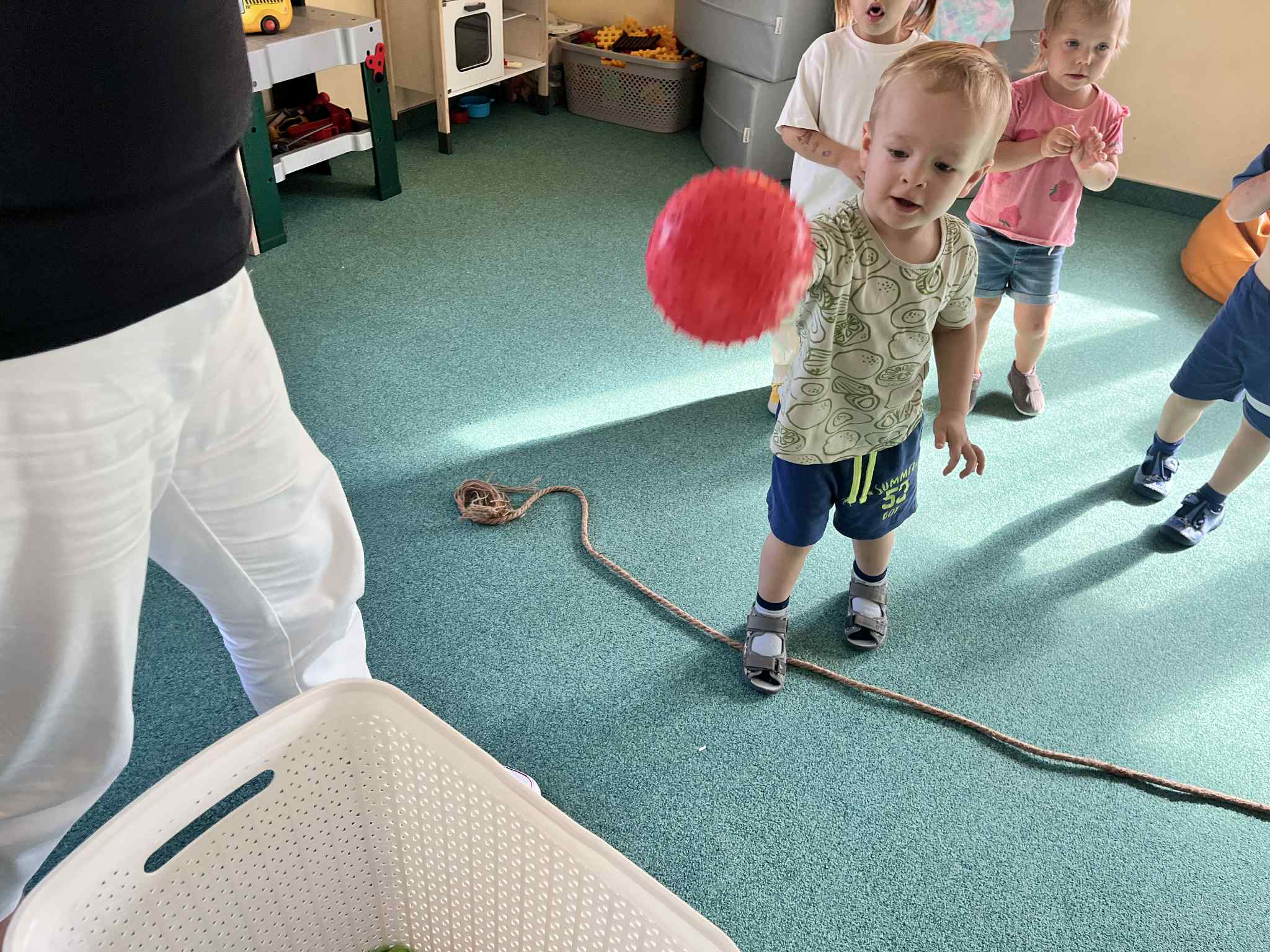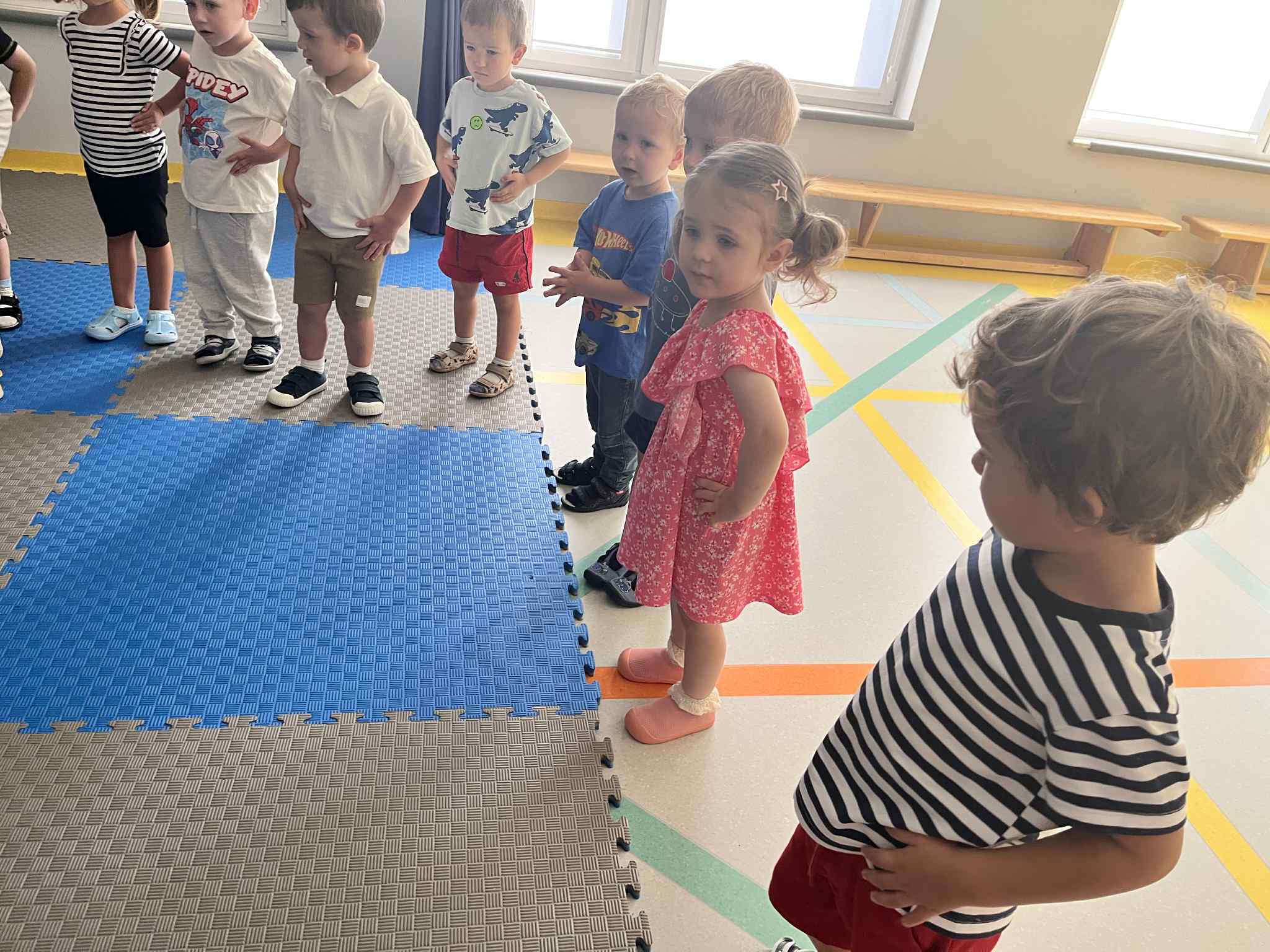 Na zajęciach rytmicznych dzieci uczyły się piosenek i zabaw ruchowych, rozwijały poczucie rytmu i koordynację ruchową. Podczas gimnastyki uczestniczyły w zabawach z elementami biegu, skoków oraz ćwiczeń równoważnych, wykorzystując przybory sportowe. Dzieci chętnie uczestniczyły w zajęciach, rozwijając swoją sprawność, kreatywność i wiedzę o otaczającym świecie. Wolny czas przedszkolaki spędzały nie tylko na zabawie swobodnej, ale również na świeżym powietrzu. Na spacerach dzieci poszukiwały oznak jesieni oraz uczyły się jak bezpiecznie zachować się na drodze.