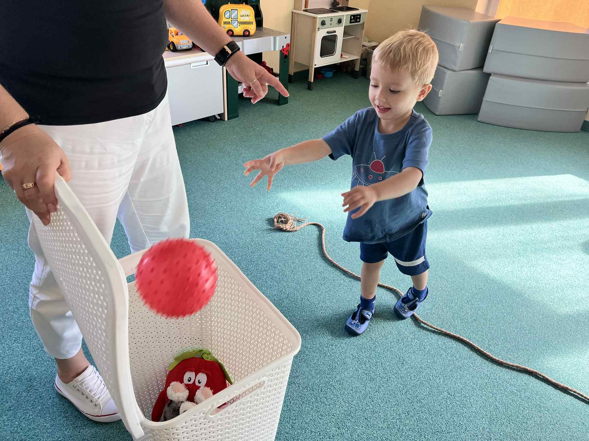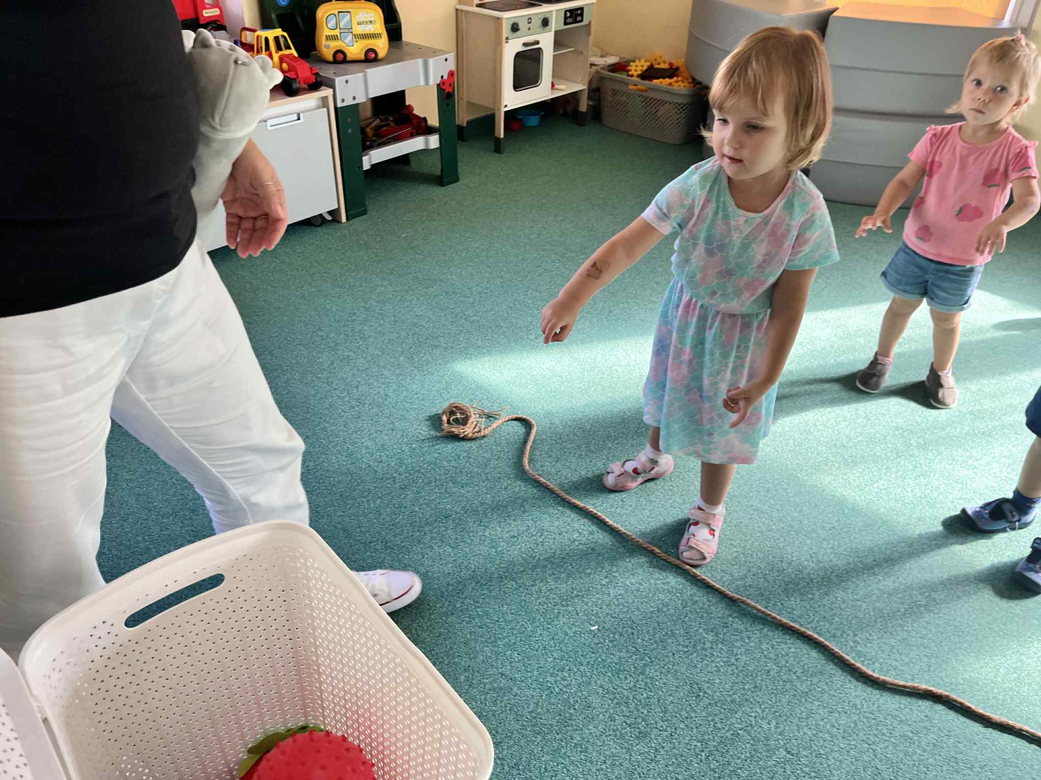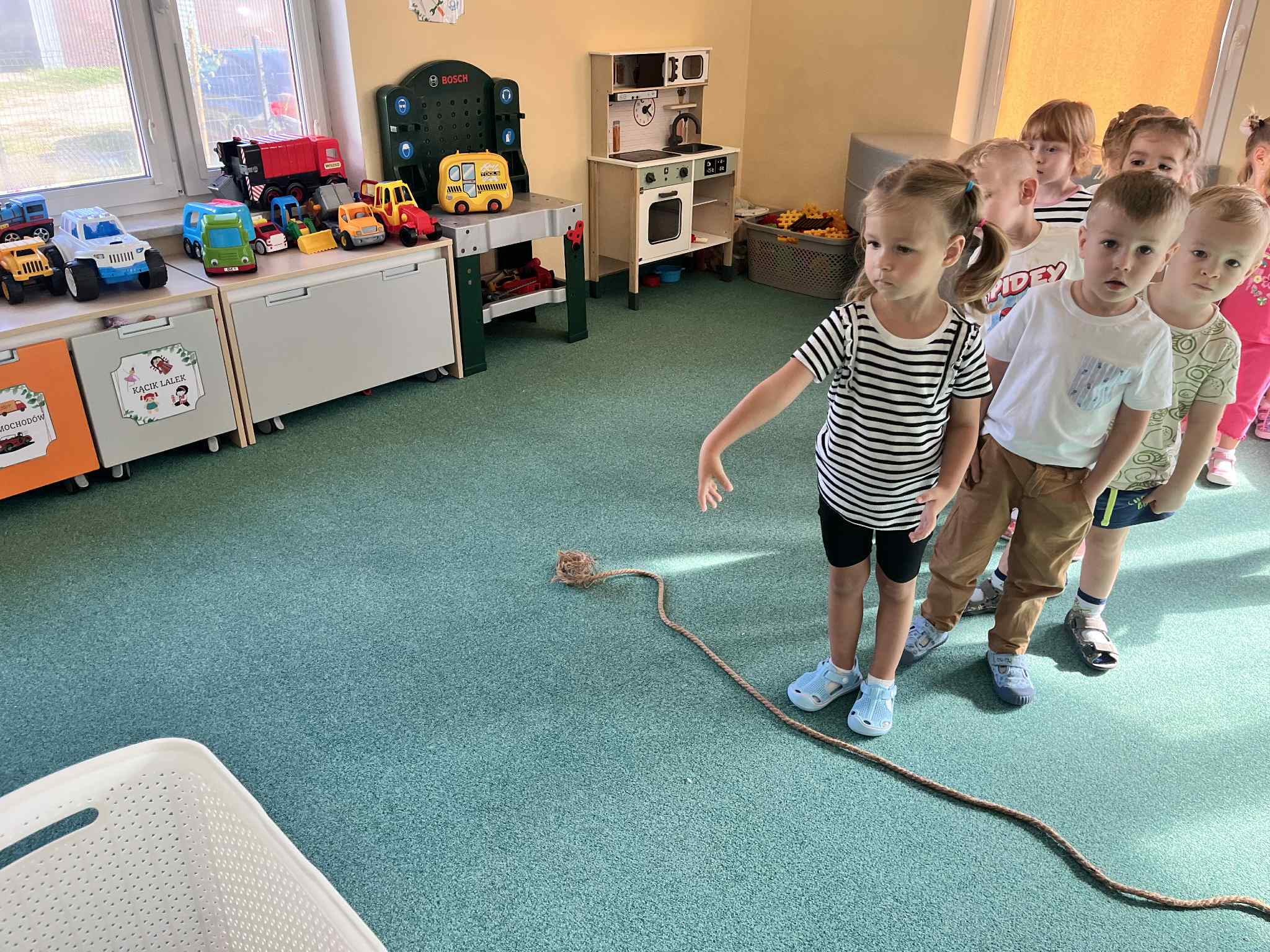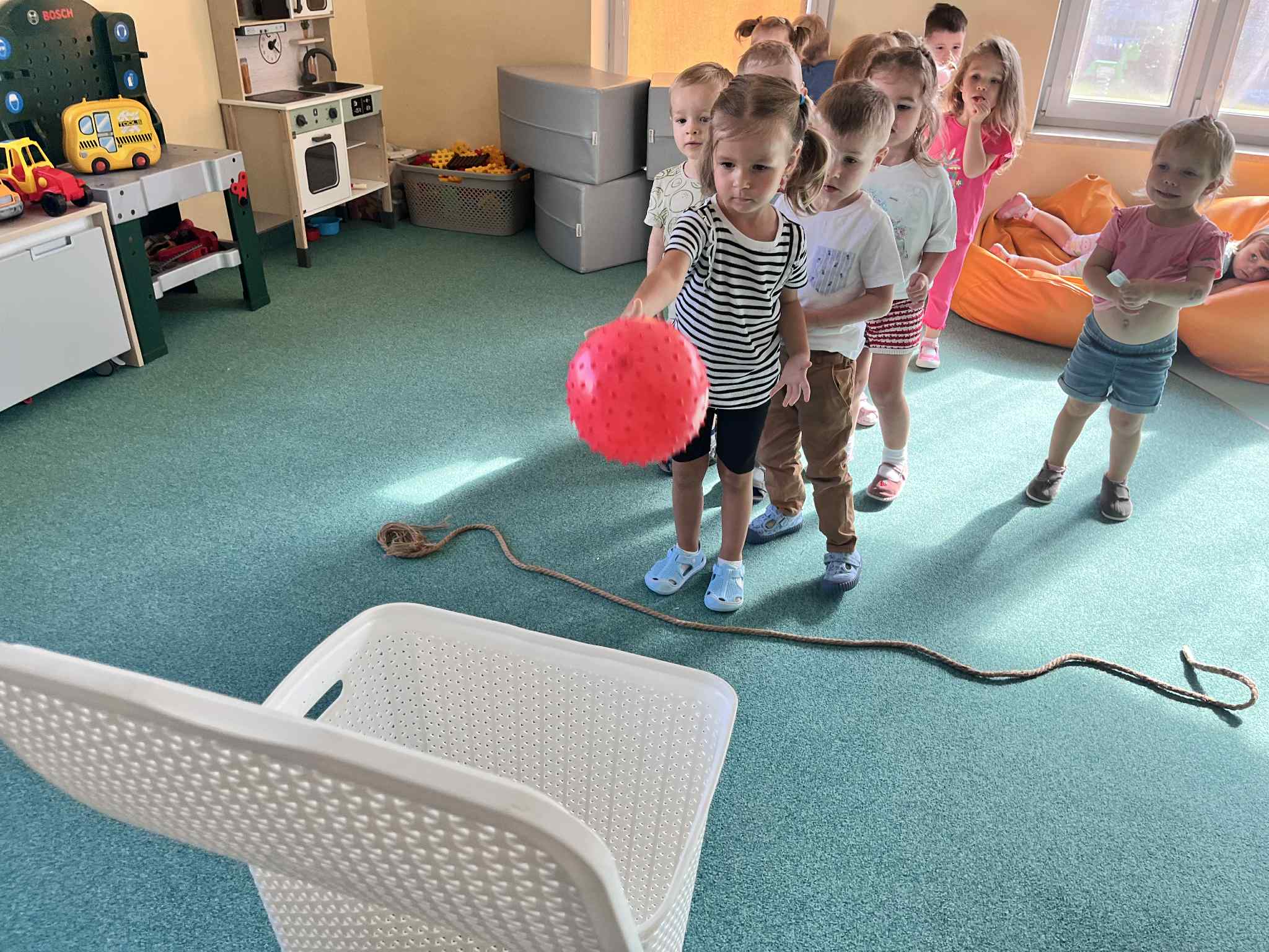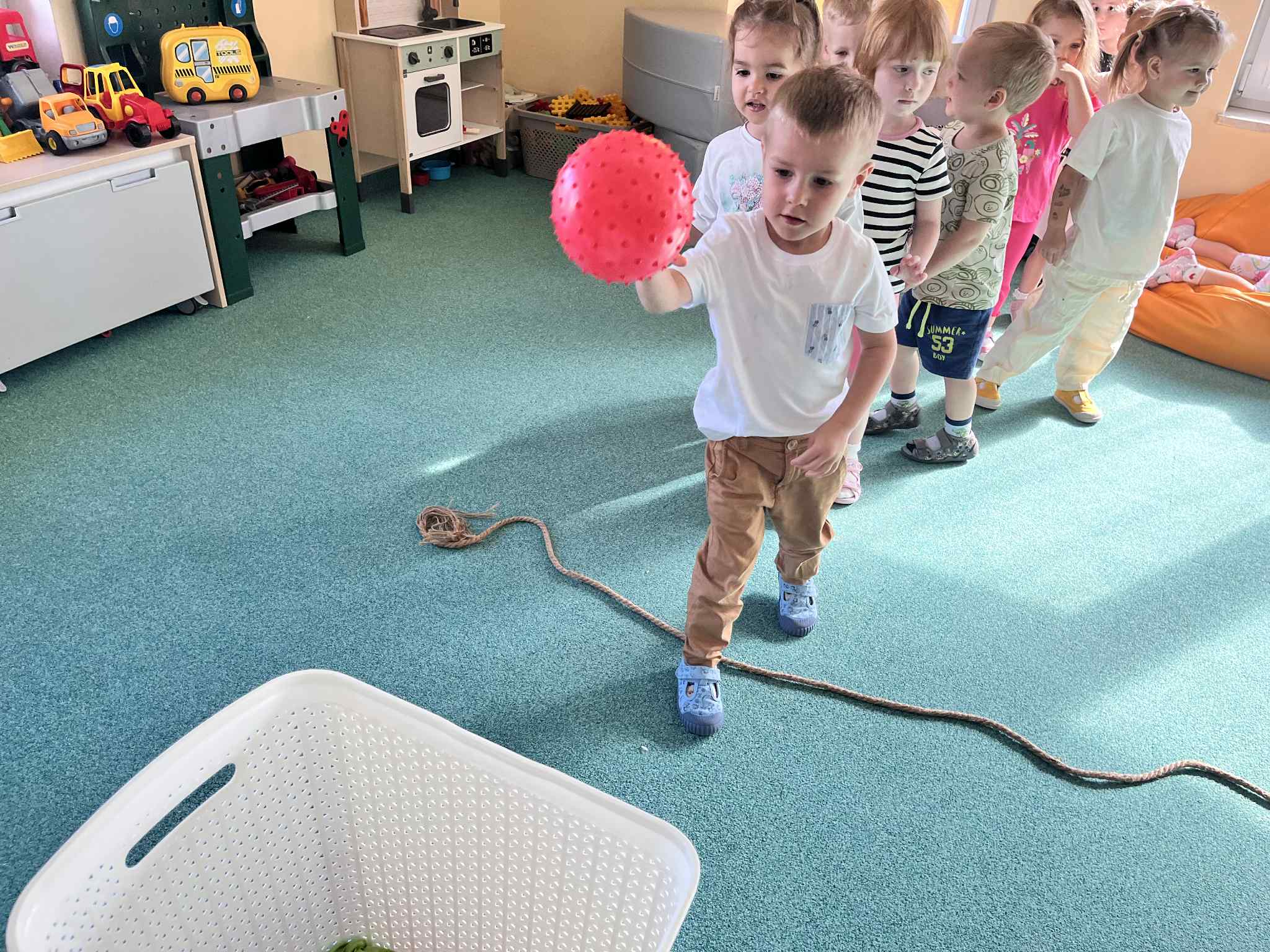 Na zajęciach rytmicznych dzieci uczyły się piosenek i zabaw ruchowych, rozwijały poczucie rytmu i koordynację ruchową. Podczas gimnastyki uczestniczyły w zabawach z elementami biegu, skoków oraz ćwiczeń równoważnych, wykorzystując przybory sportowe. Dzieci chętnie uczestniczyły w zajęciach, rozwijając swoją sprawność, kreatywność i wiedzę o otaczającym świecie. Wolny czas przedszkolaki spędzały nie tylko na zabawie swobodnej, ale również na świeżym powietrzu. Na spacerach dzieci poszukiwały oznak jesieni oraz uczyły się jak bezpiecznie zachować się na drodze.