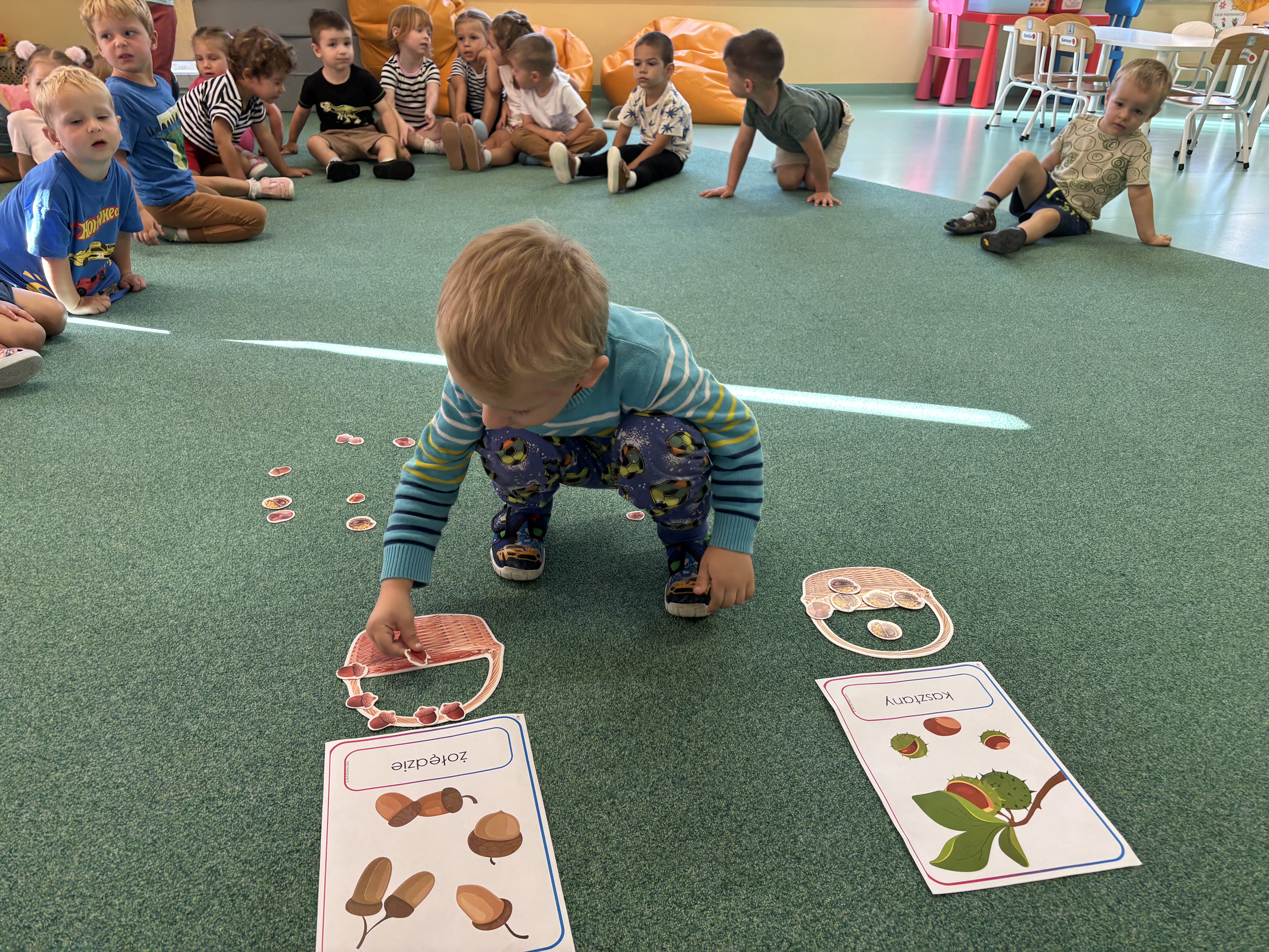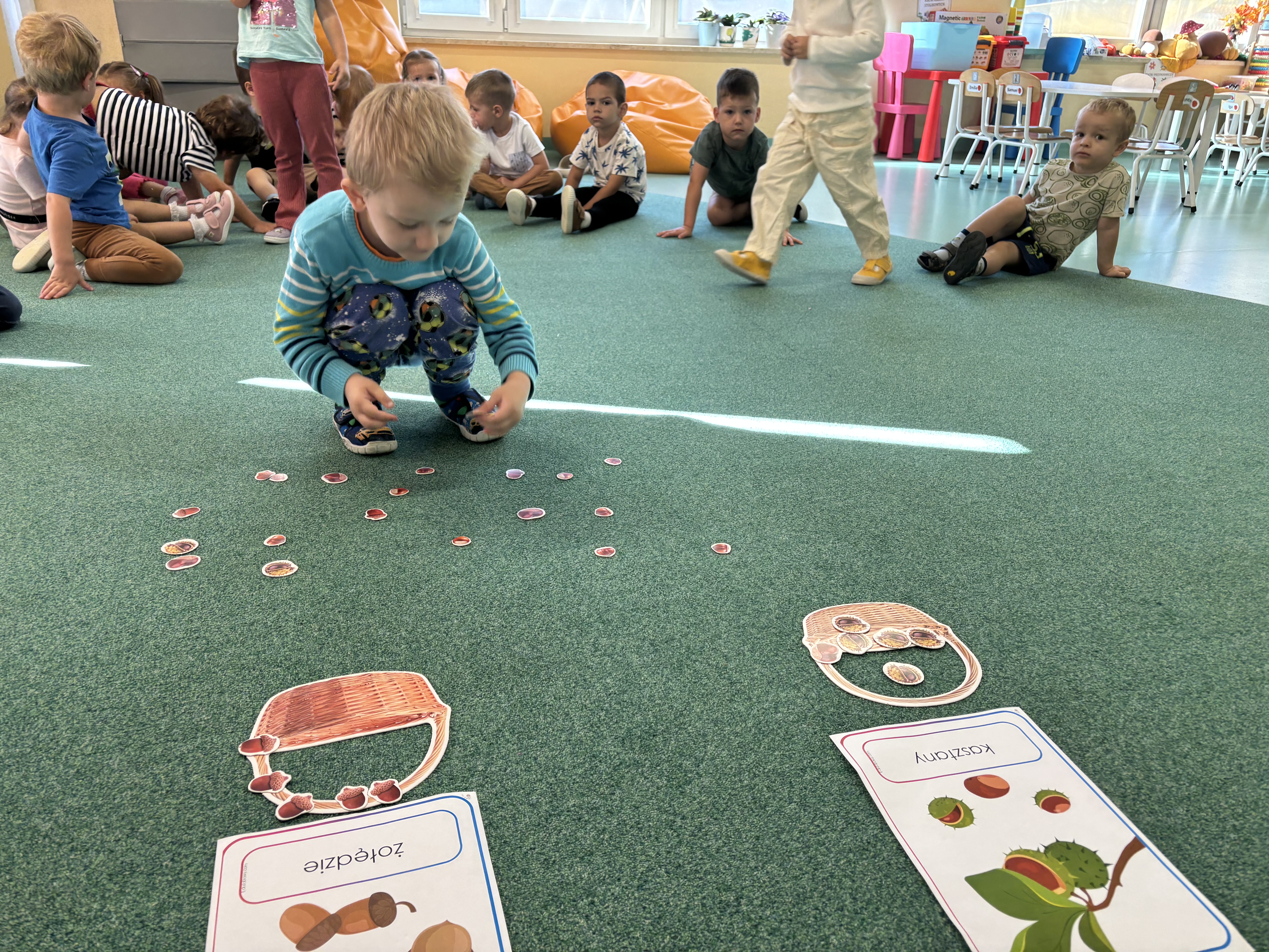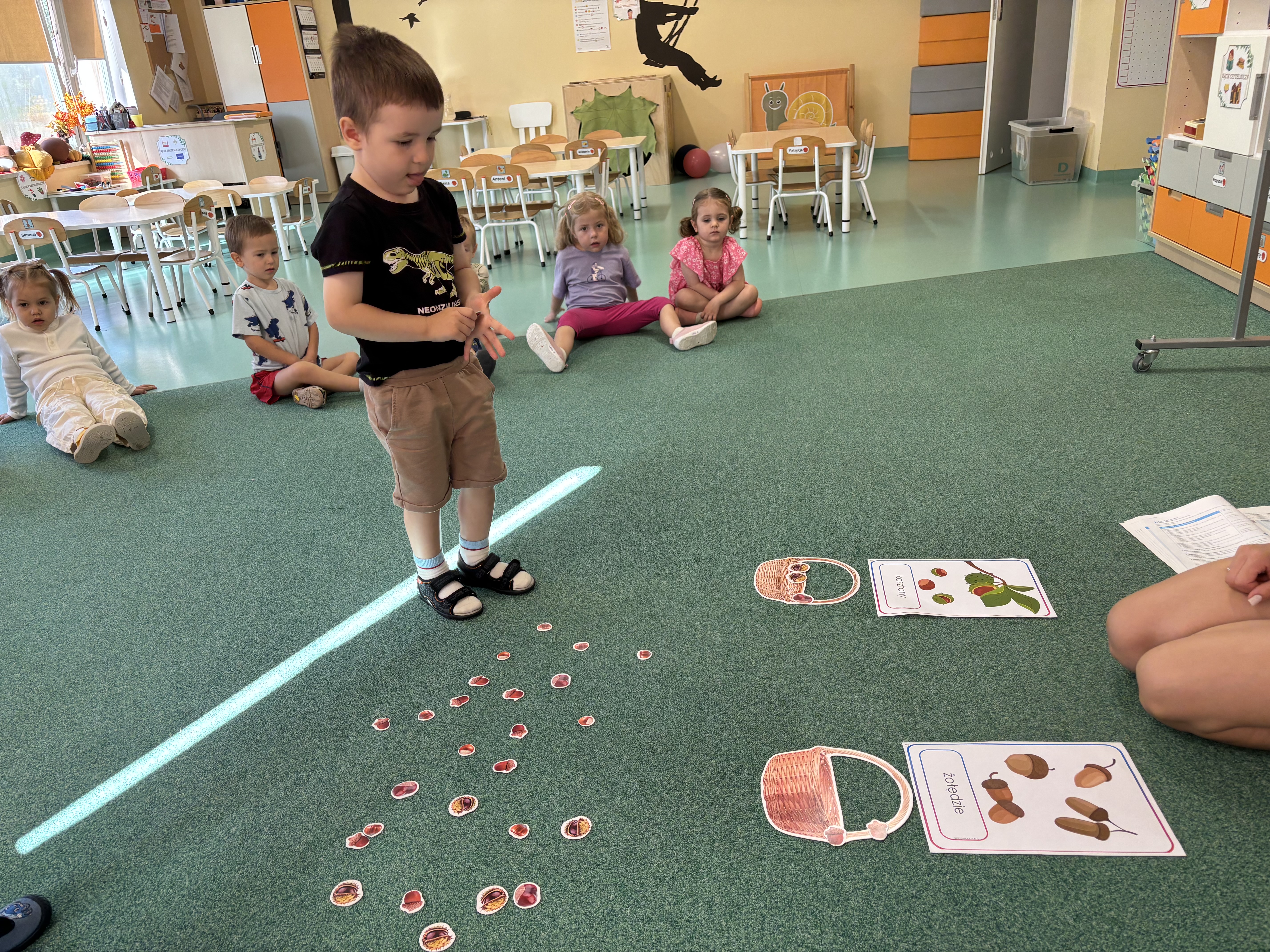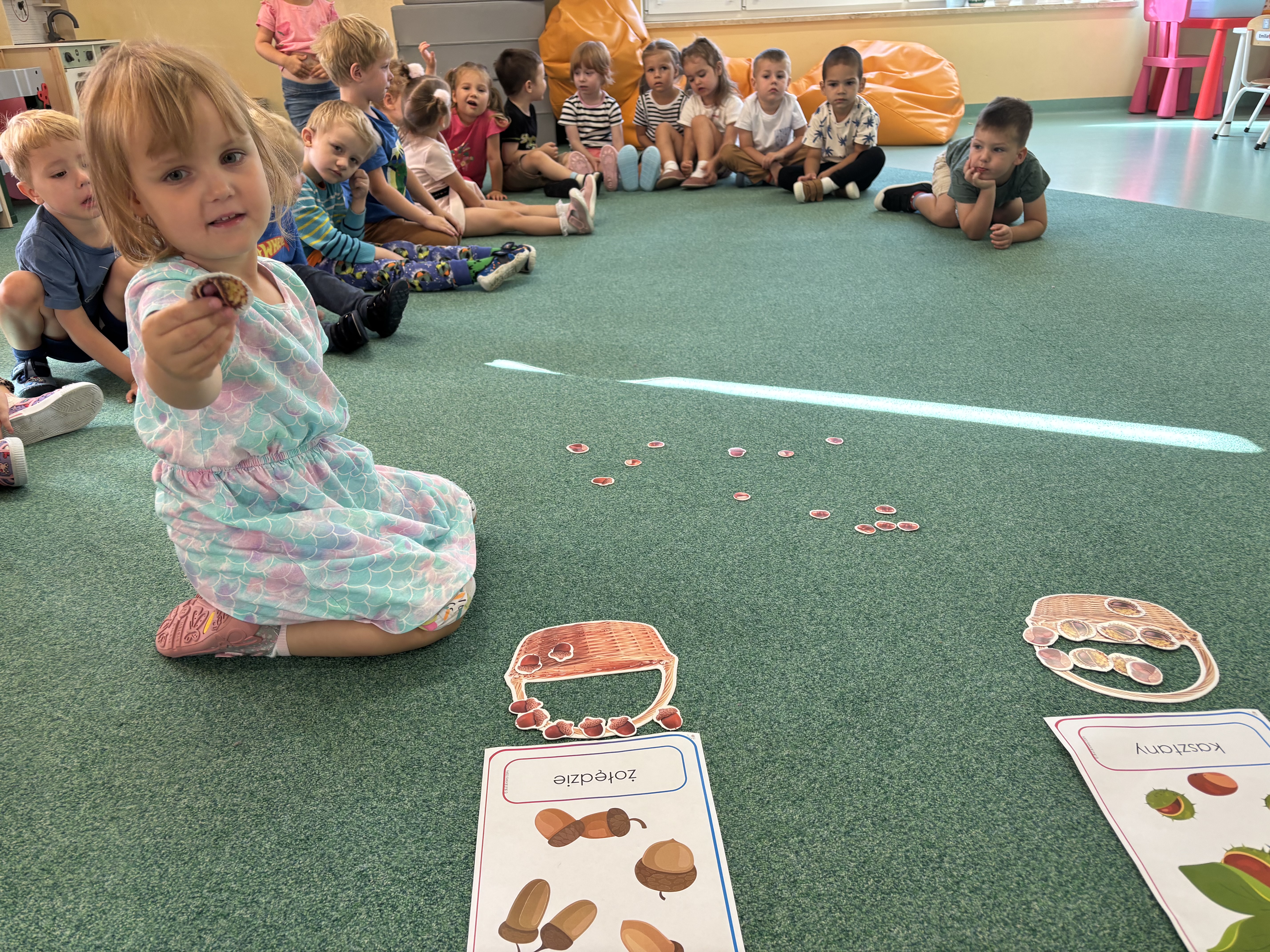 W minionym tygodniu dzieci poznawały uroki jesieni. Podczas zajęć plastycznych tworzyły prace z wykorzystaniem darów jesieni – liści, kasztanów i żołędzi. Rozmawiały o zmianach w przyrodzie, oglądały jesienne owoce i warzywa, a także słuchały opowiadań i wierszy o jesieni.