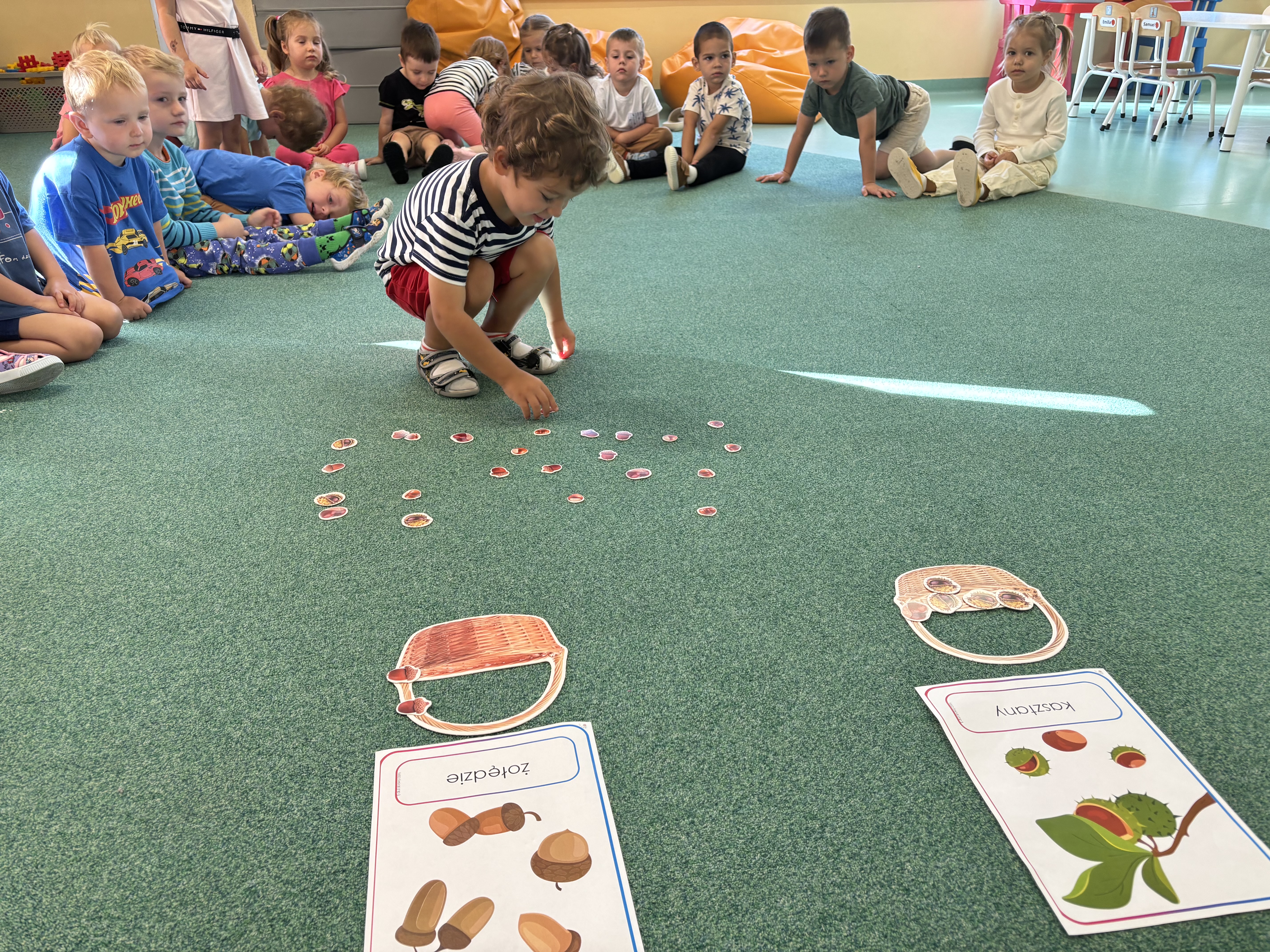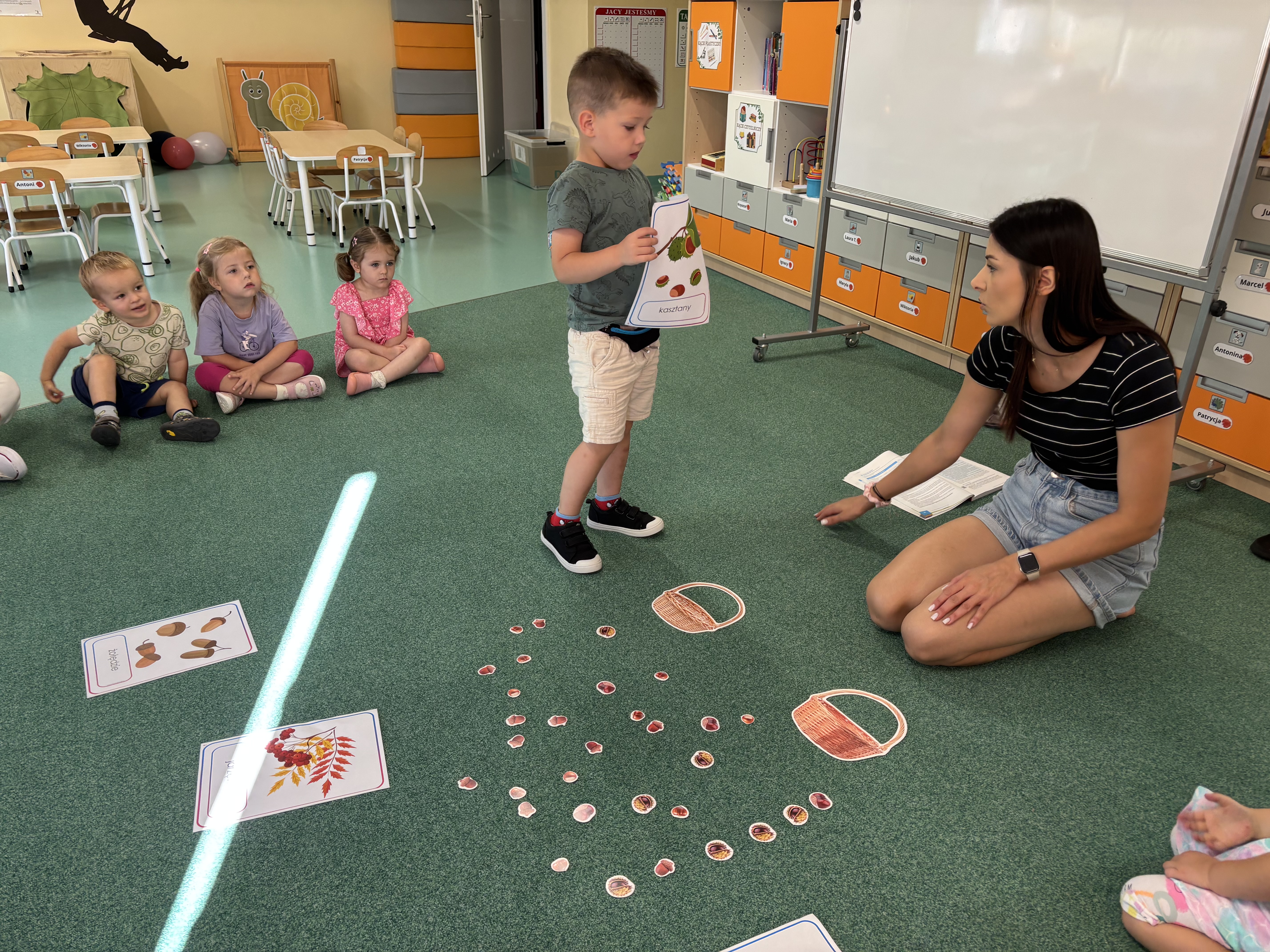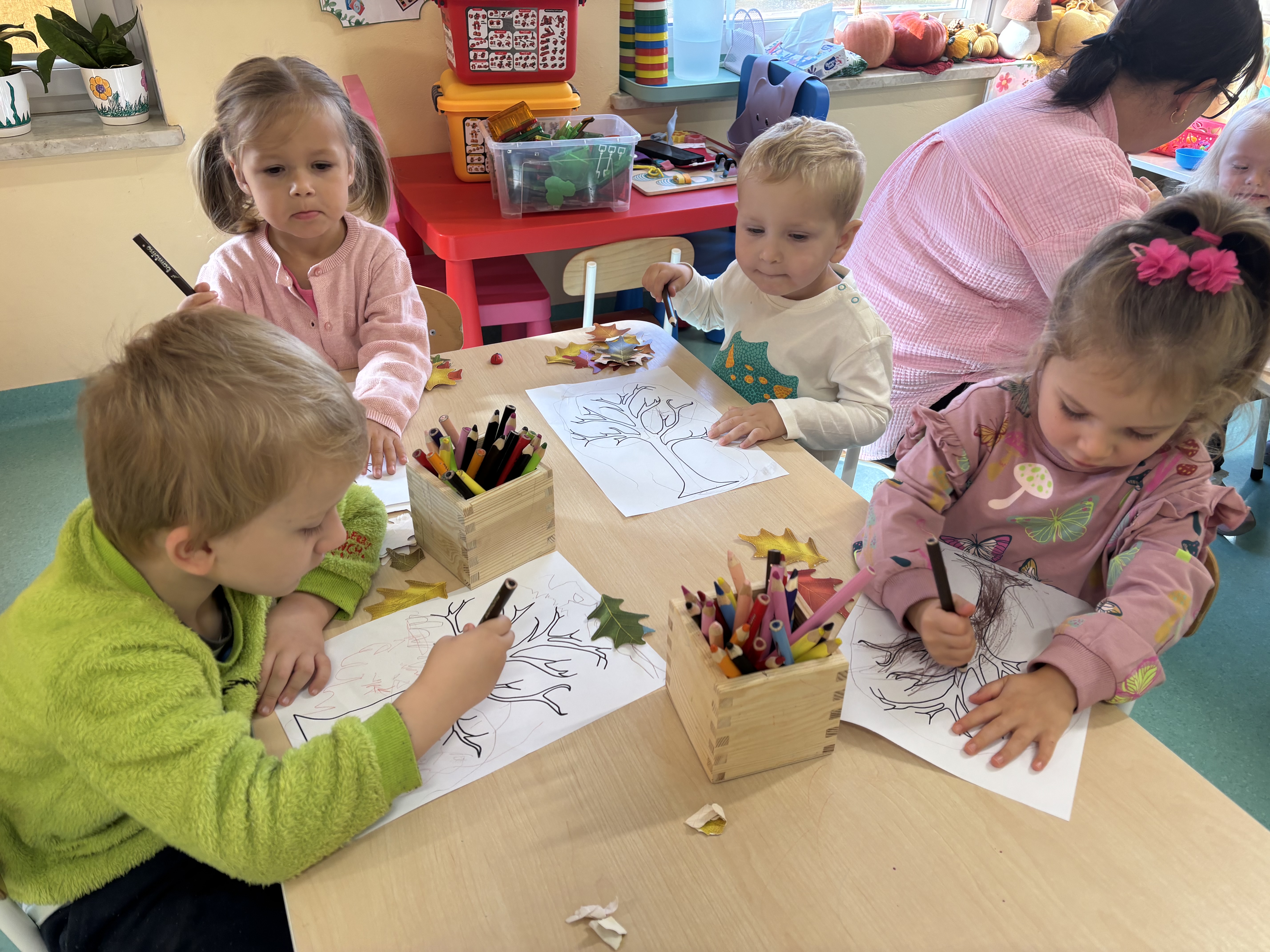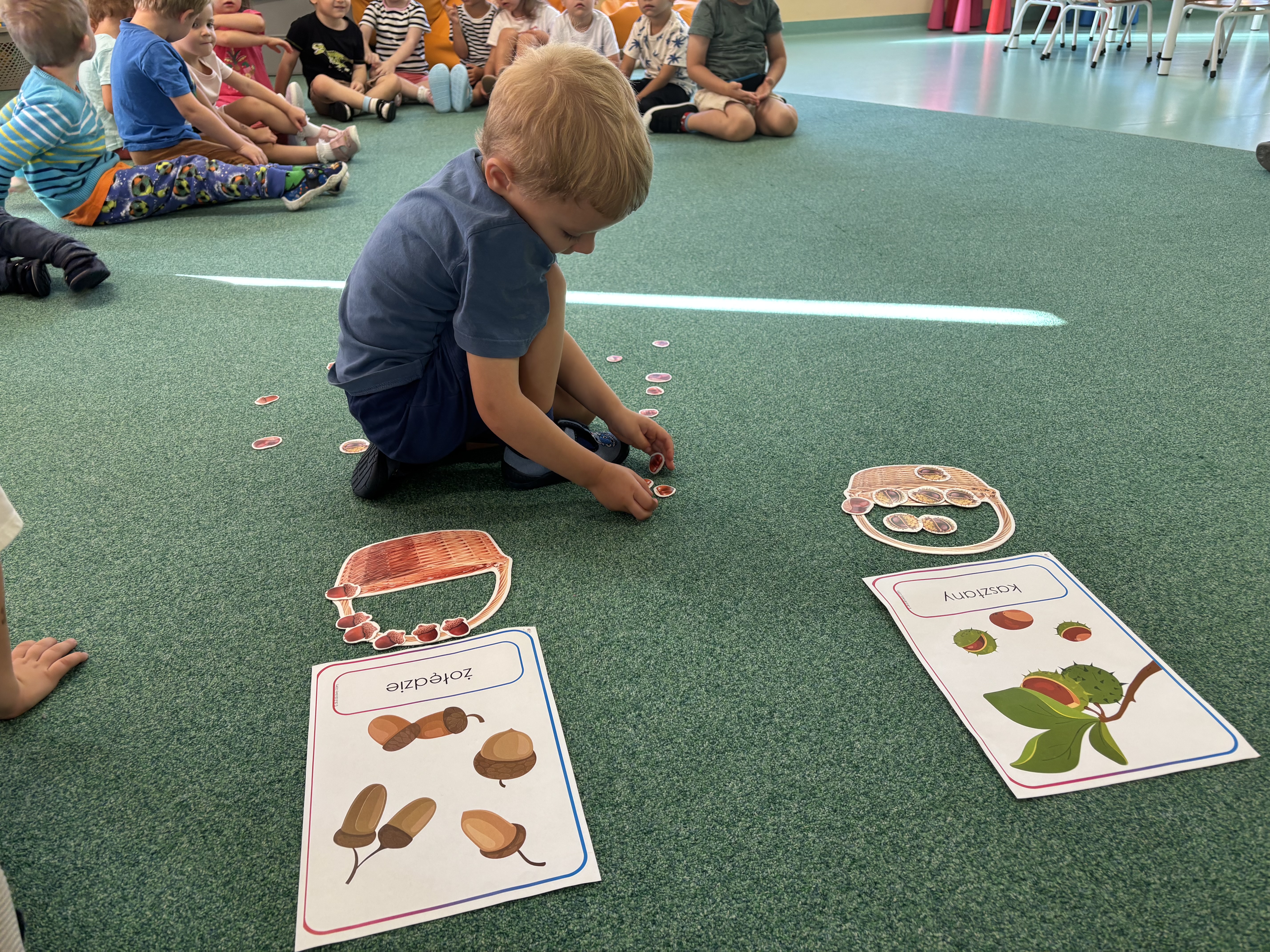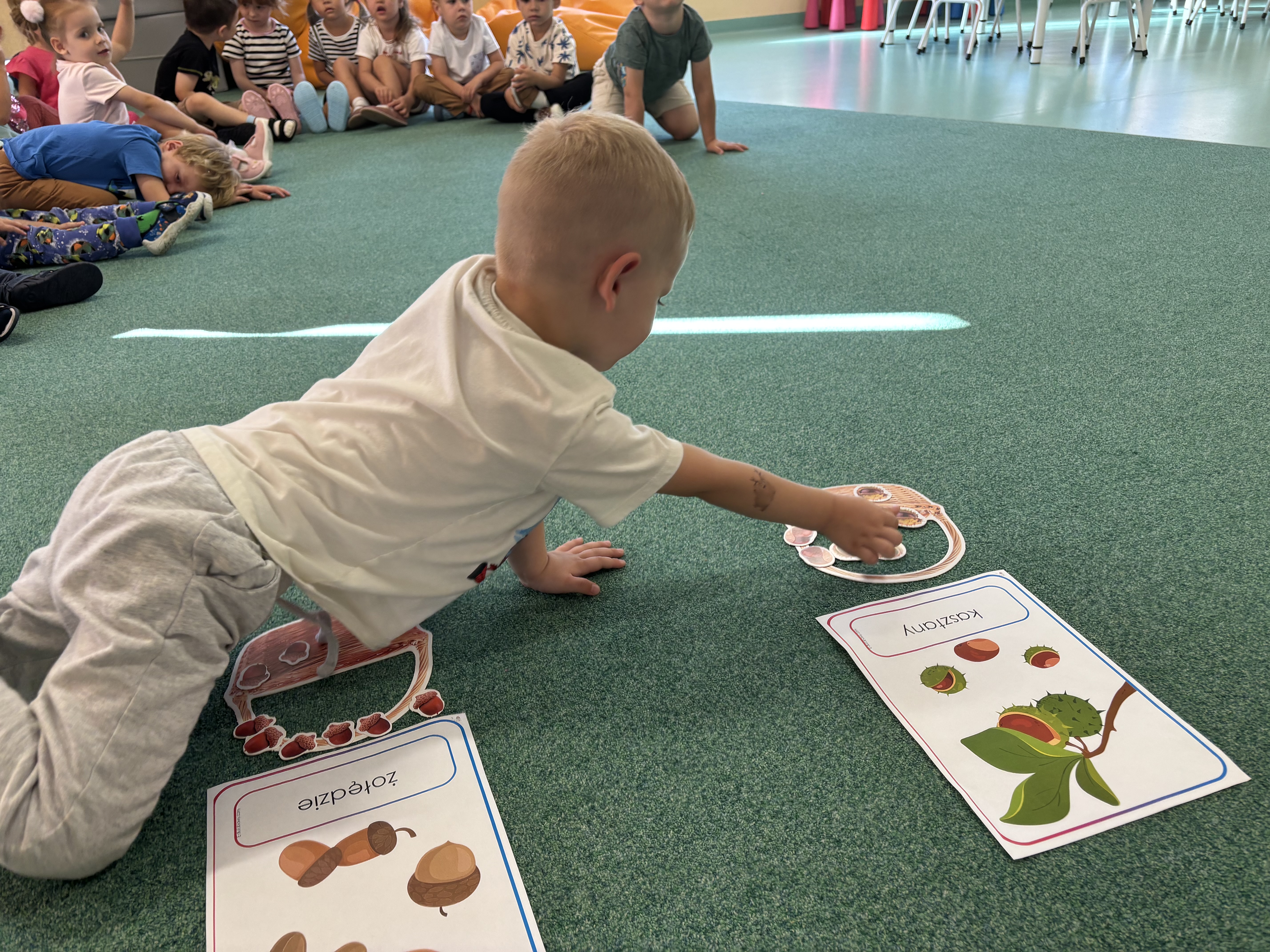 W minionym tygodniu dzieci poznawały uroki jesieni. Podczas zajęć plastycznych tworzyły prace z wykorzystaniem darów jesieni – liści, kasztanów i żołędzi. Rozmawiały o zmianach w przyrodzie, oglądały jesienne owoce i warzywa, a także słuchały opowiadań i wierszy o jesieni.