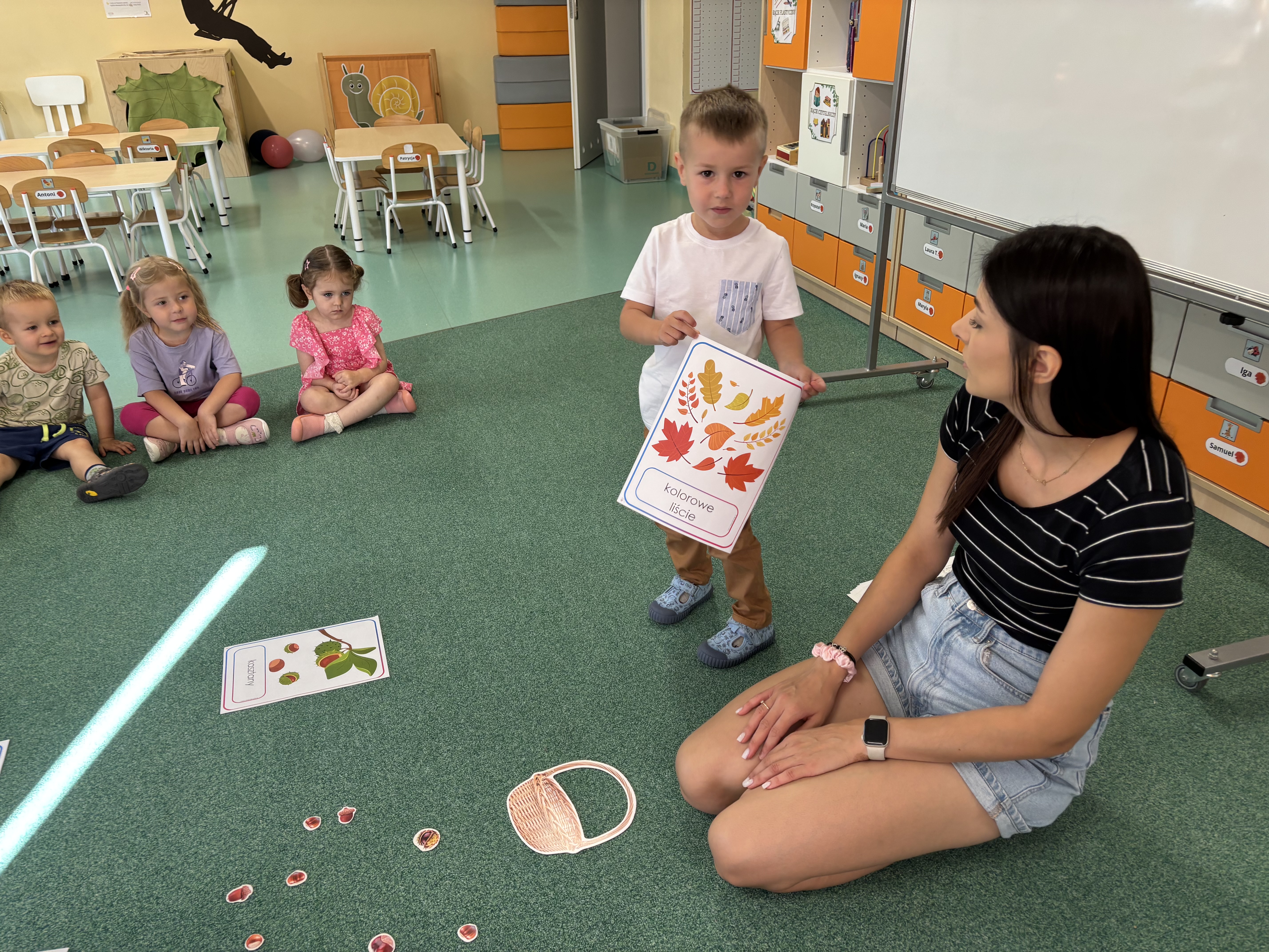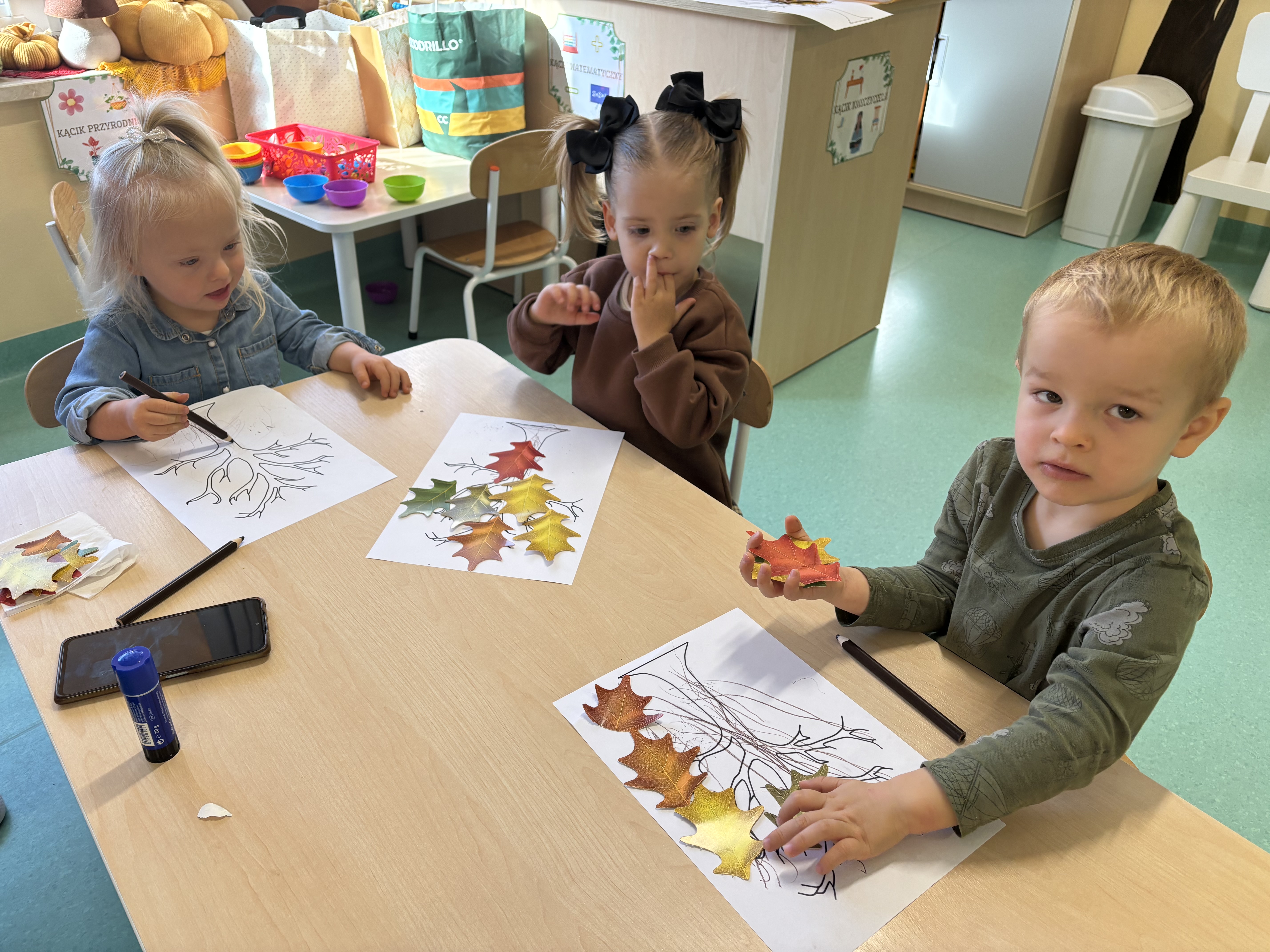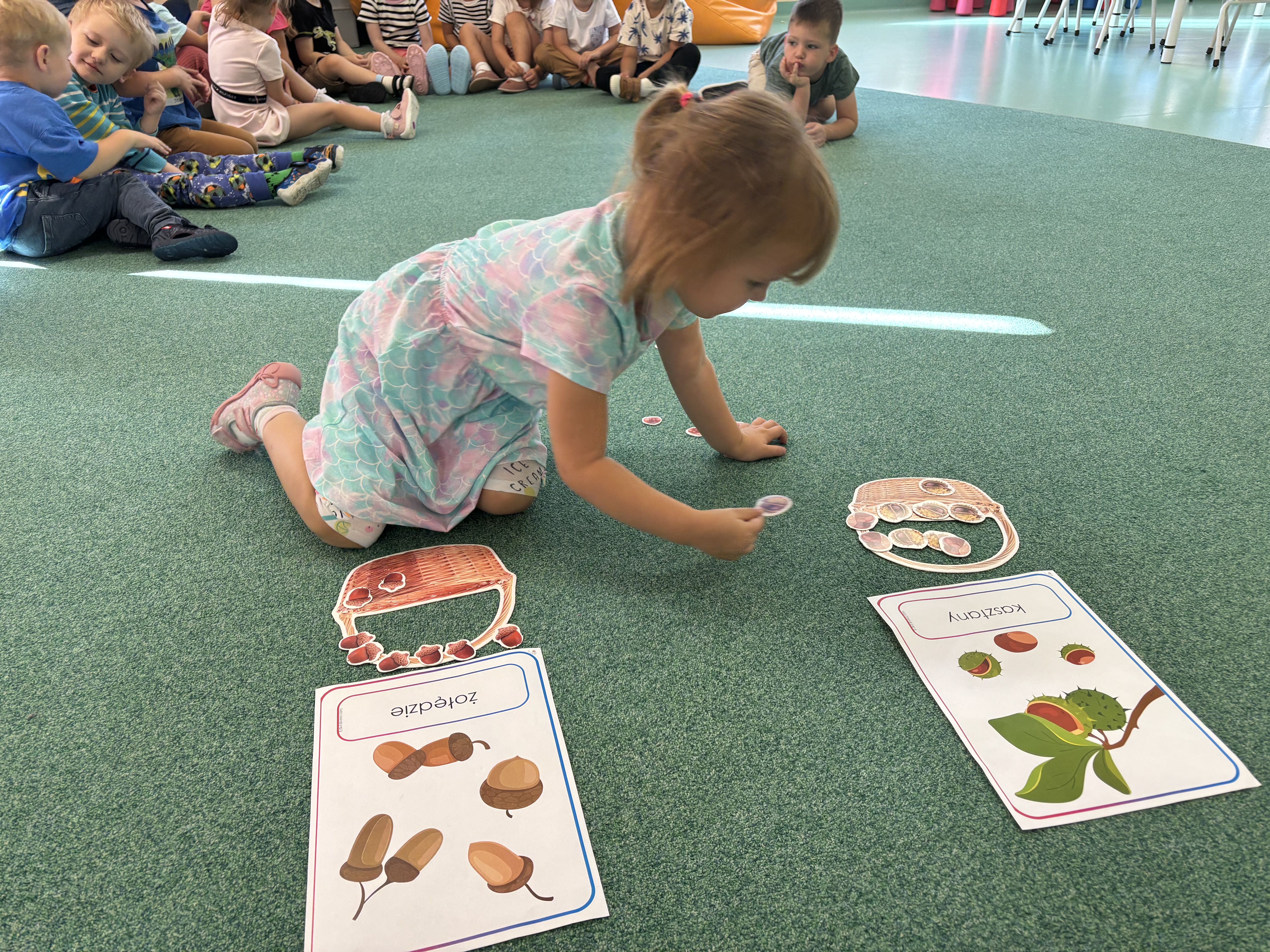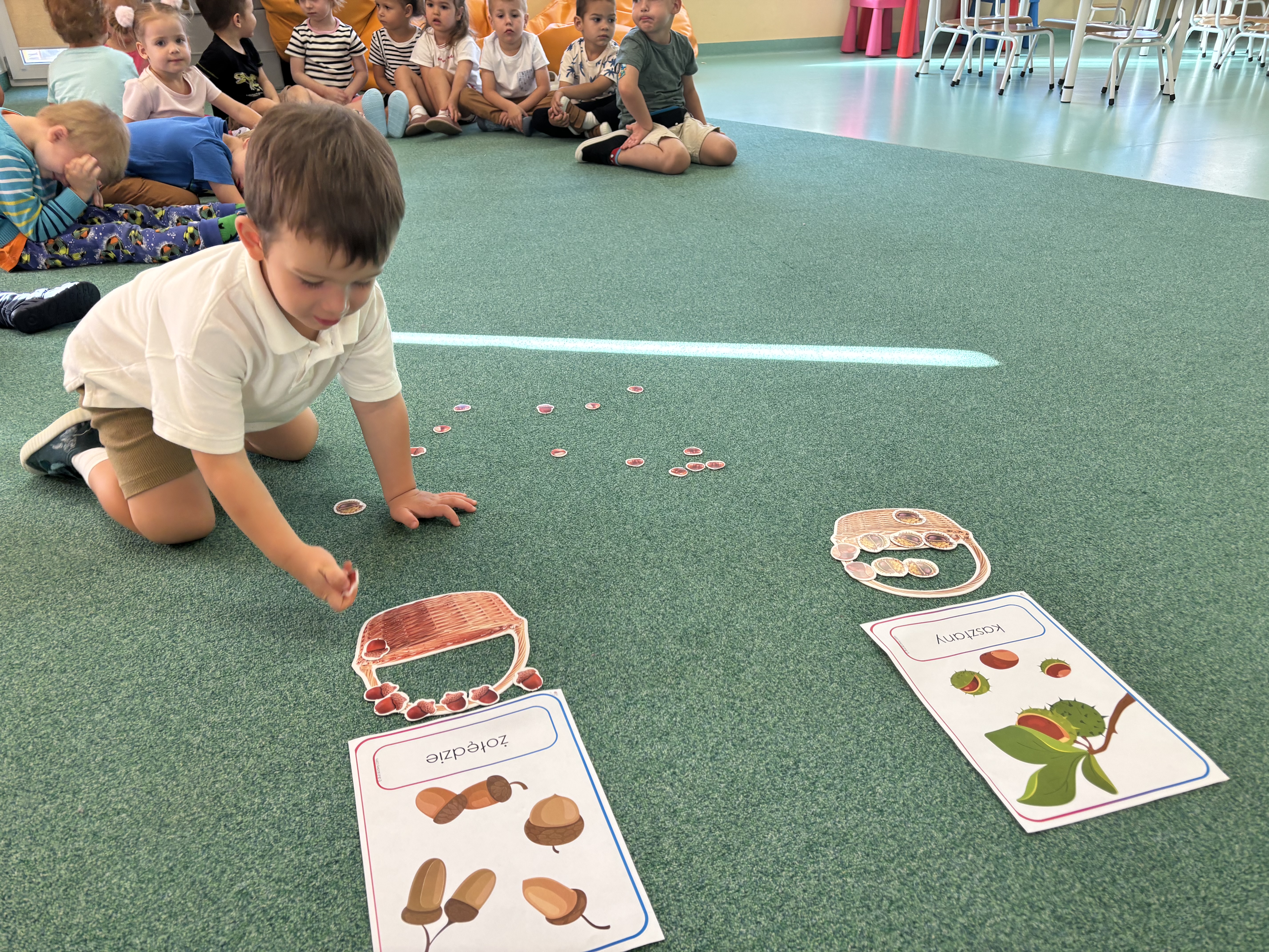 W minionym tygodniu dzieci poznawały uroki jesieni. Podczas zajęć plastycznych tworzyły prace z wykorzystaniem darów jesieni – liści, kasztanów i żołędzi. Rozmawiały o zmianach w przyrodzie, oglądały jesienne owoce i warzywa, a także słuchały opowiadań i wierszy o jesieni.