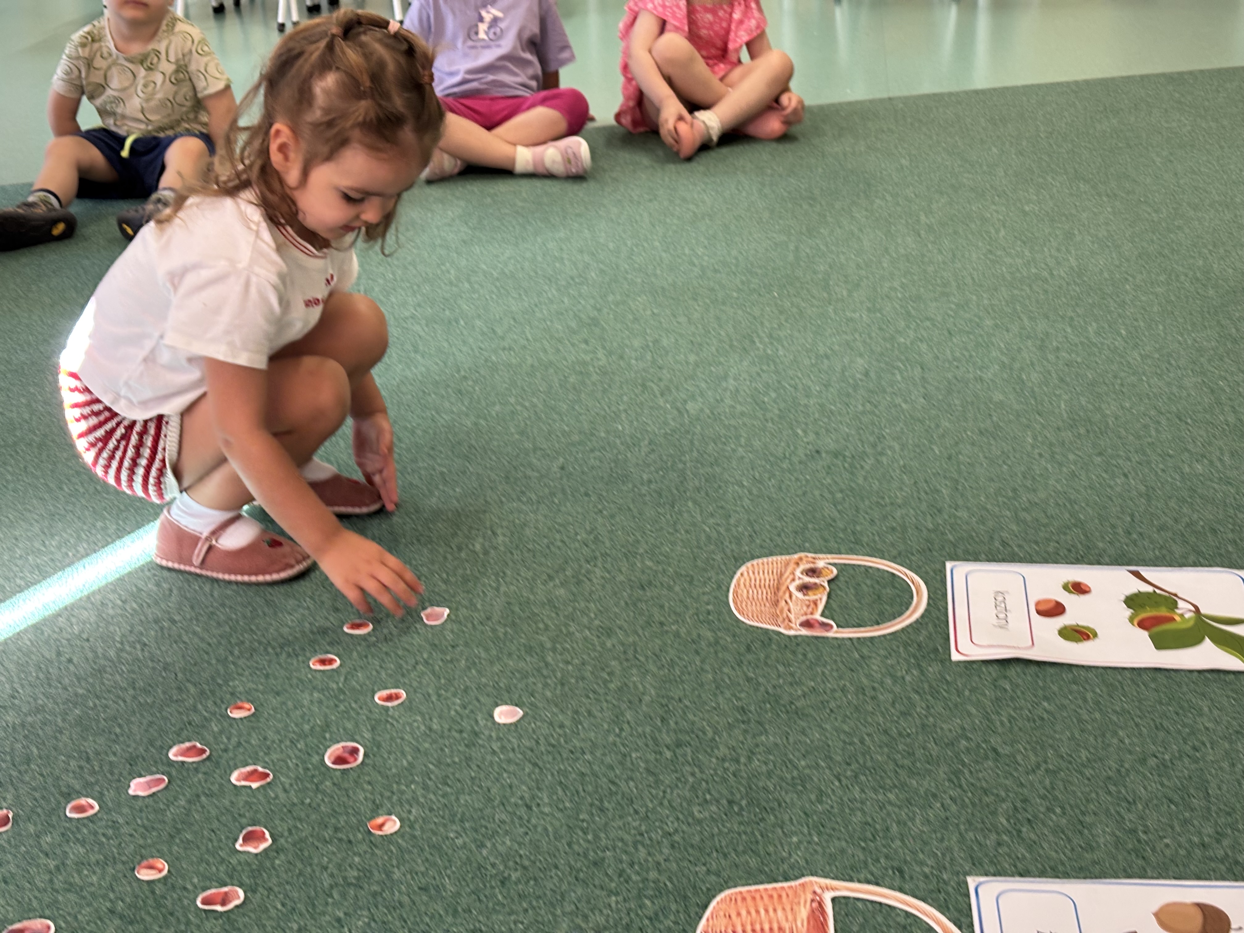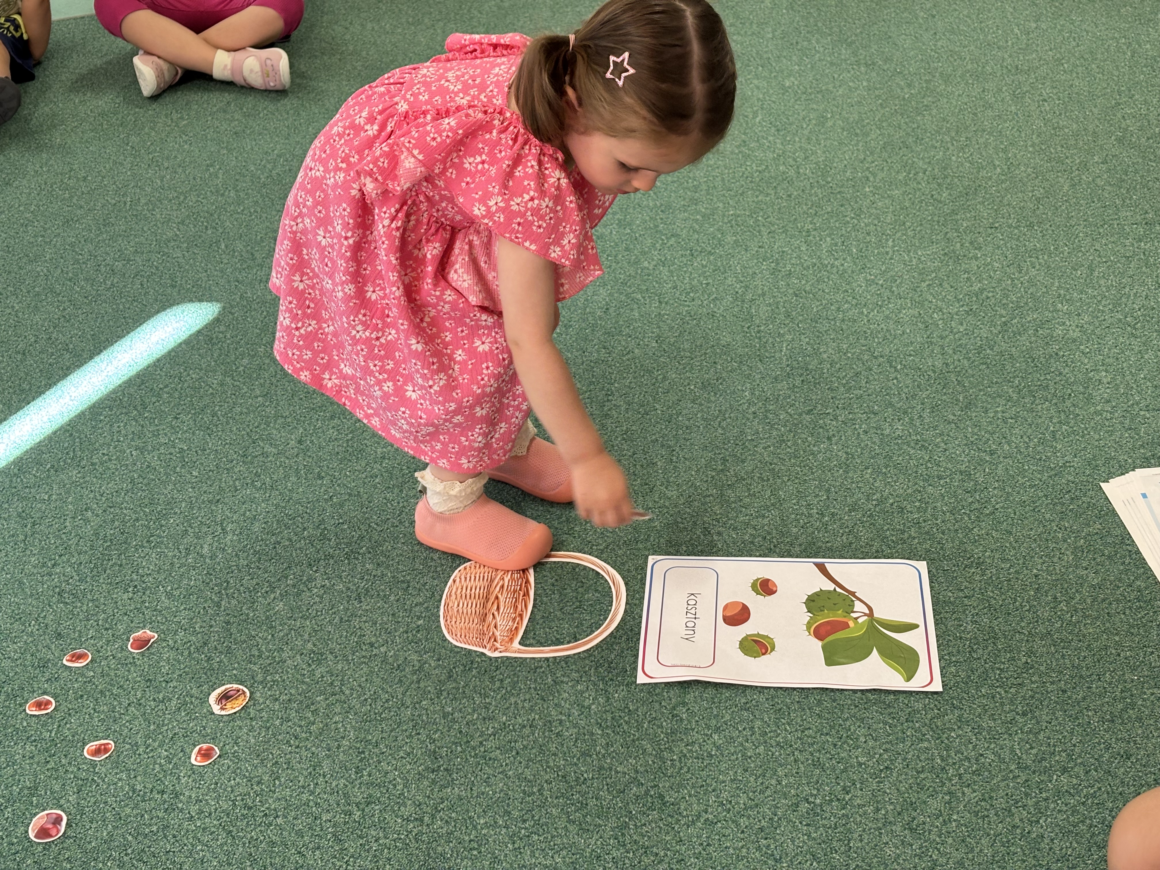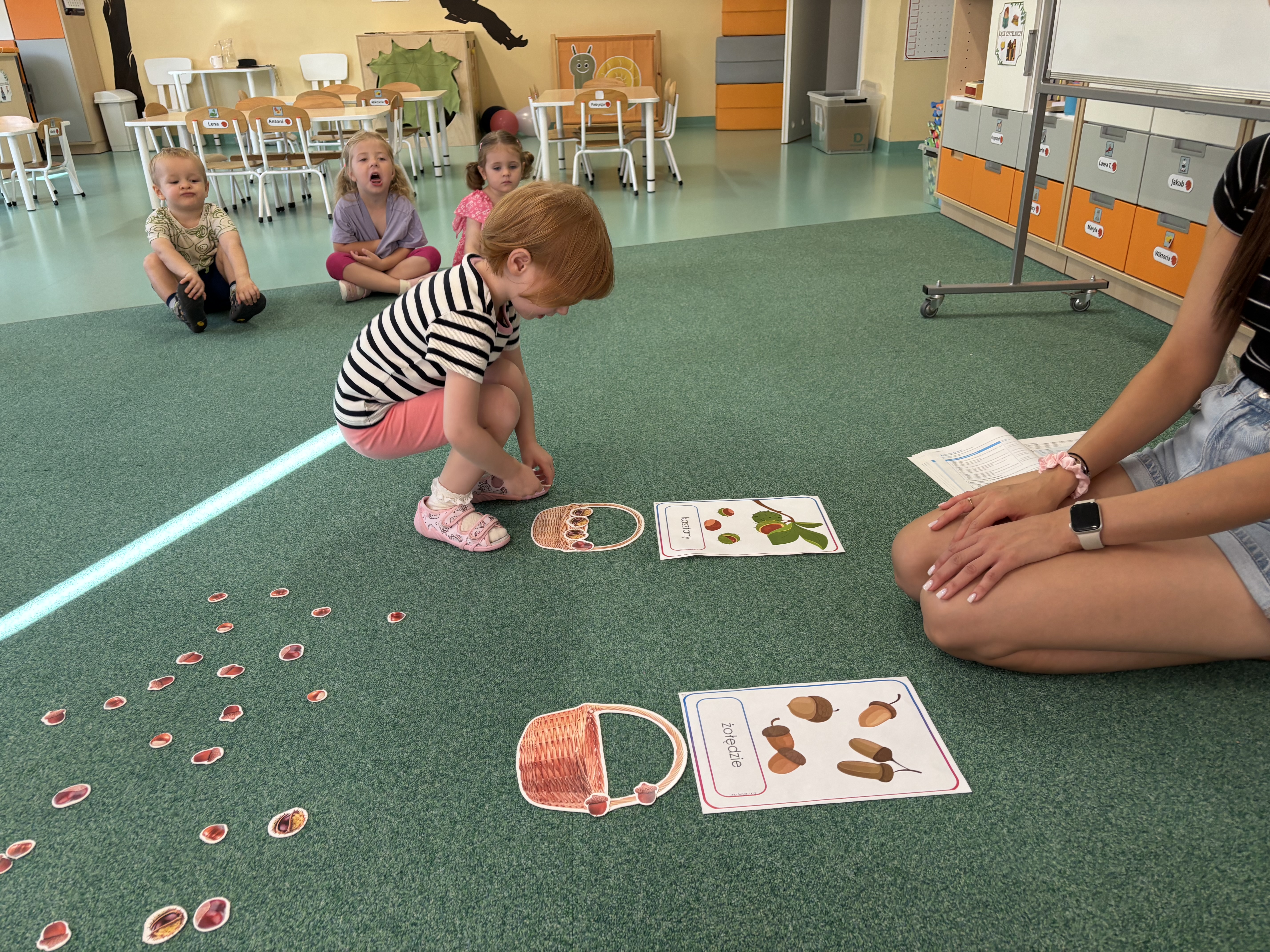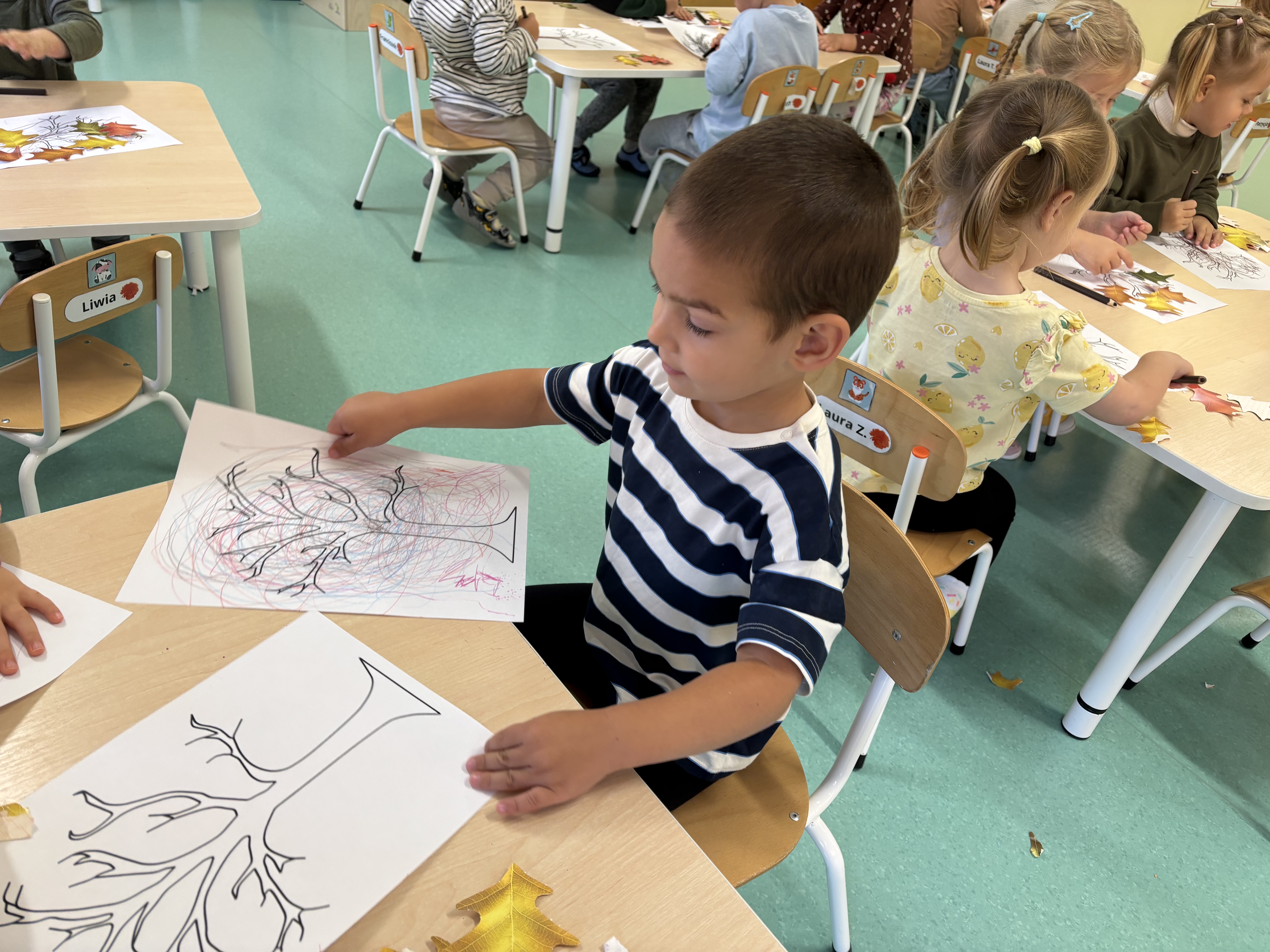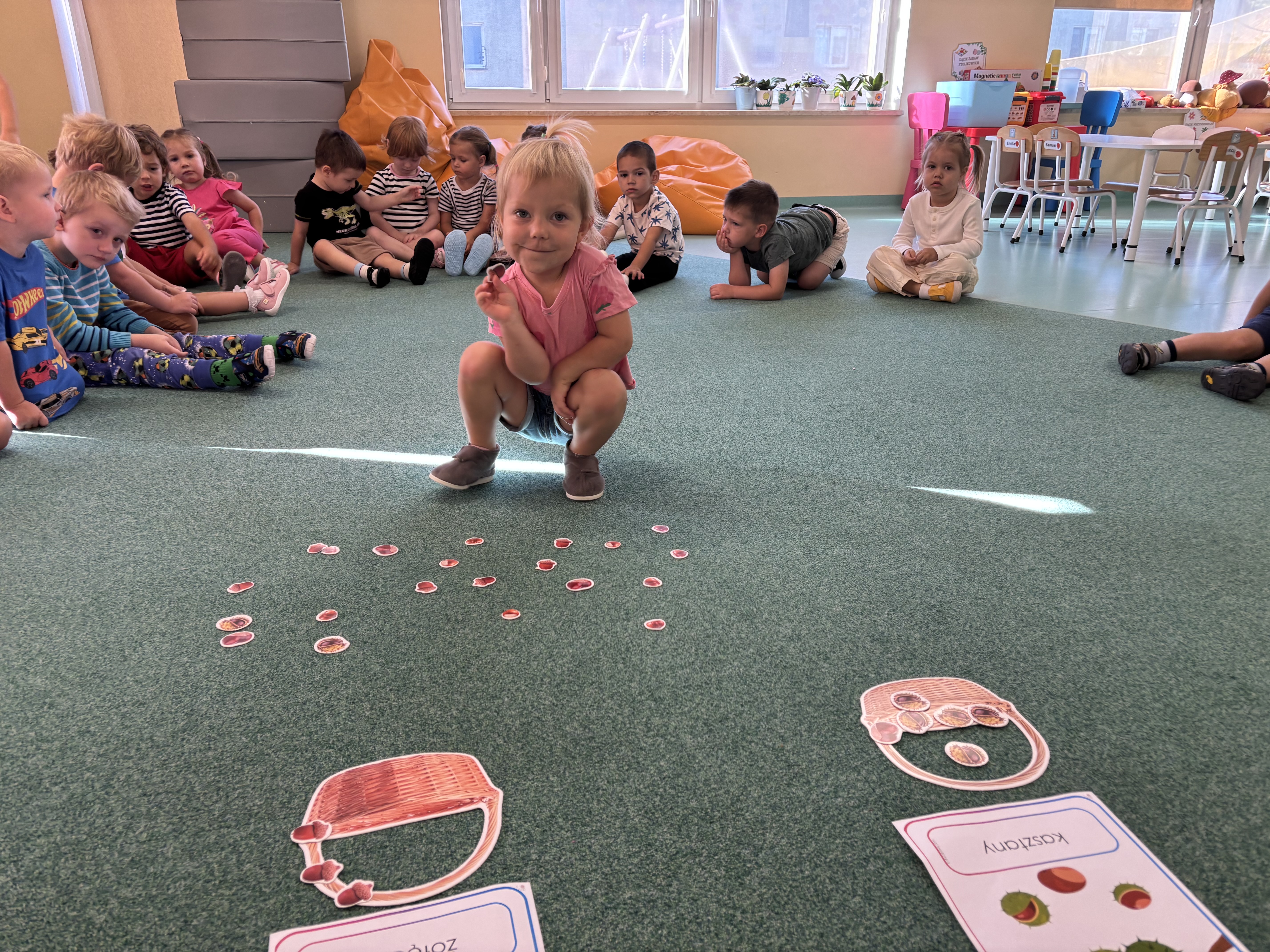 W minionym tygodniu dzieci poznawały uroki jesieni. Podczas zajęć plastycznych tworzyły prace z wykorzystaniem darów jesieni – liści, kasztanów i żołędzi. Rozmawiały o zmianach w przyrodzie, oglądały jesienne owoce i warzywa, a także słuchały opowiadań i wierszy o jesieni.