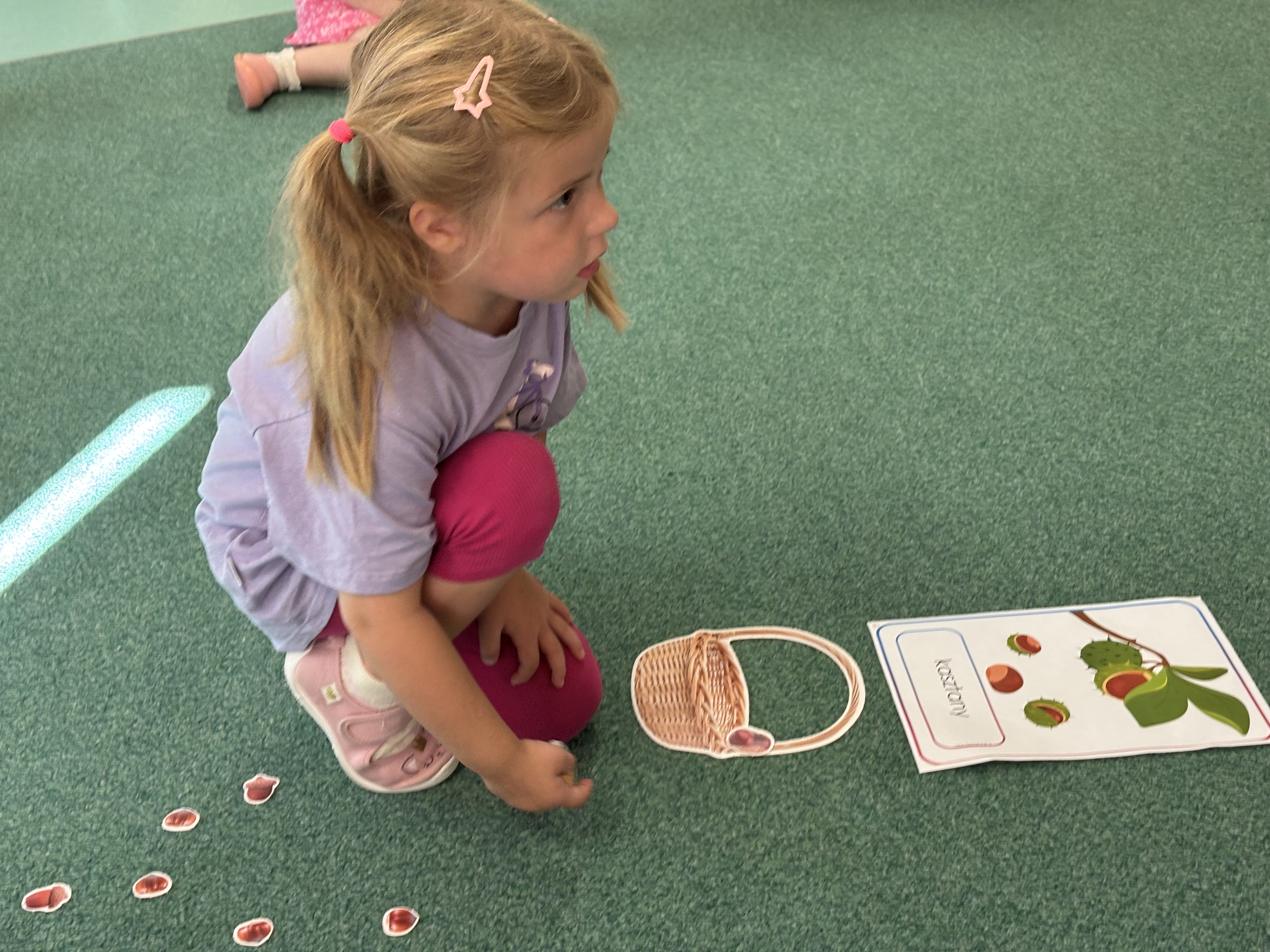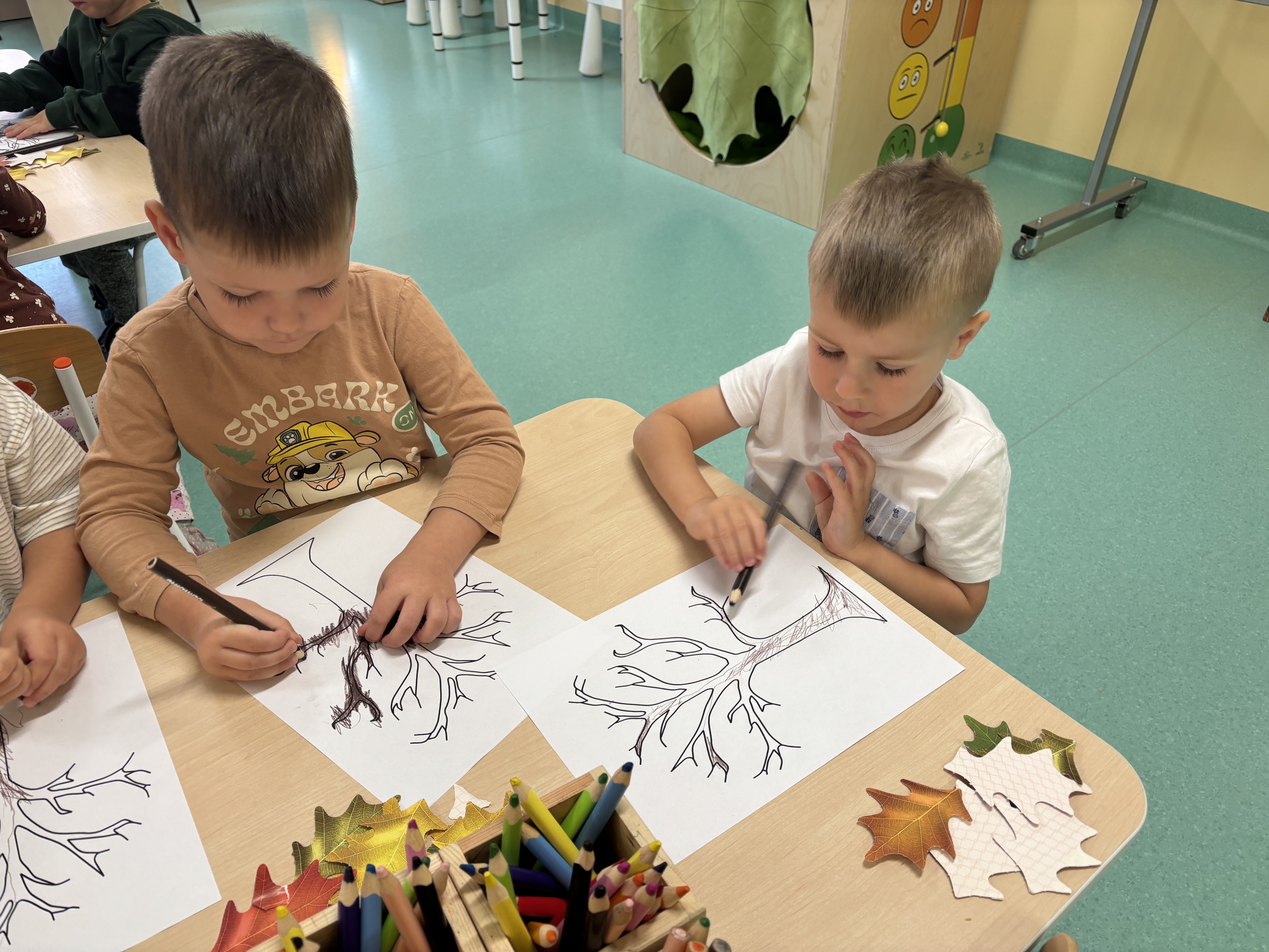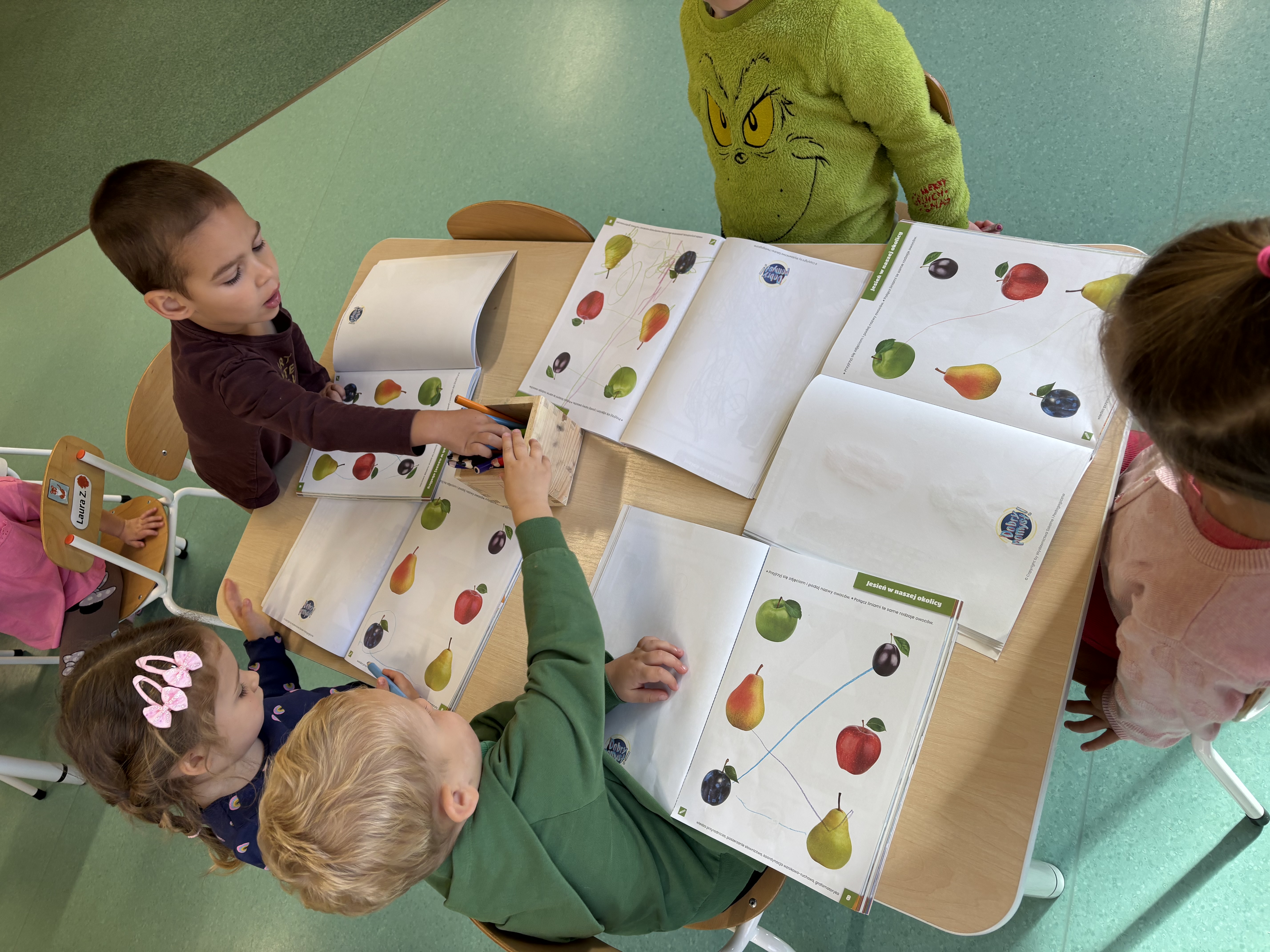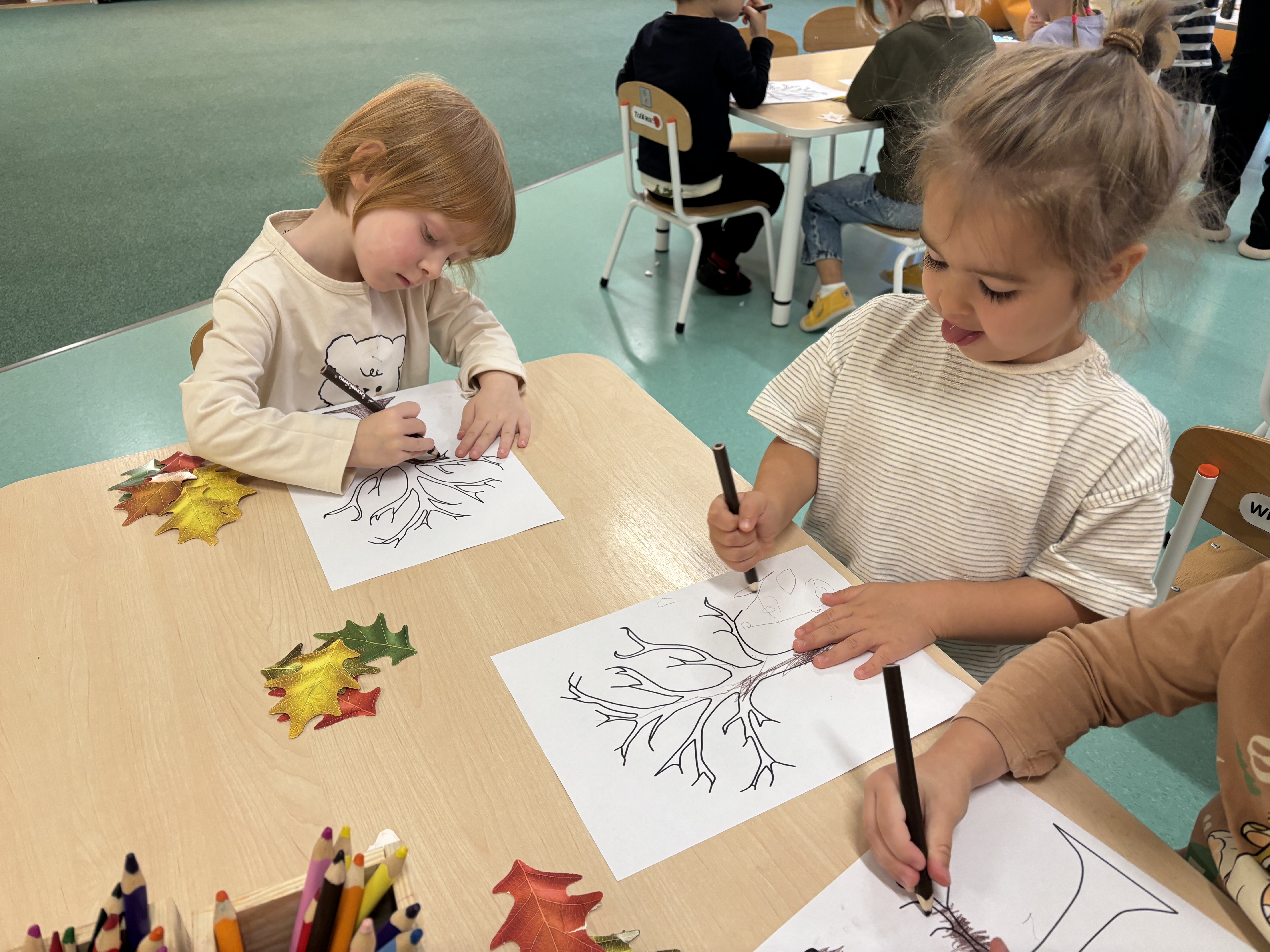 W minionym tygodniu dzieci poznawały uroki jesieni. Podczas zajęć plastycznych tworzyły prace z wykorzystaniem darów jesieni – liści, kasztanów i żołędzi. Rozmawiały o zmianach w przyrodzie, oglądały jesienne owoce i warzywa, a także słuchały opowiadań i wierszy o jesieni.
