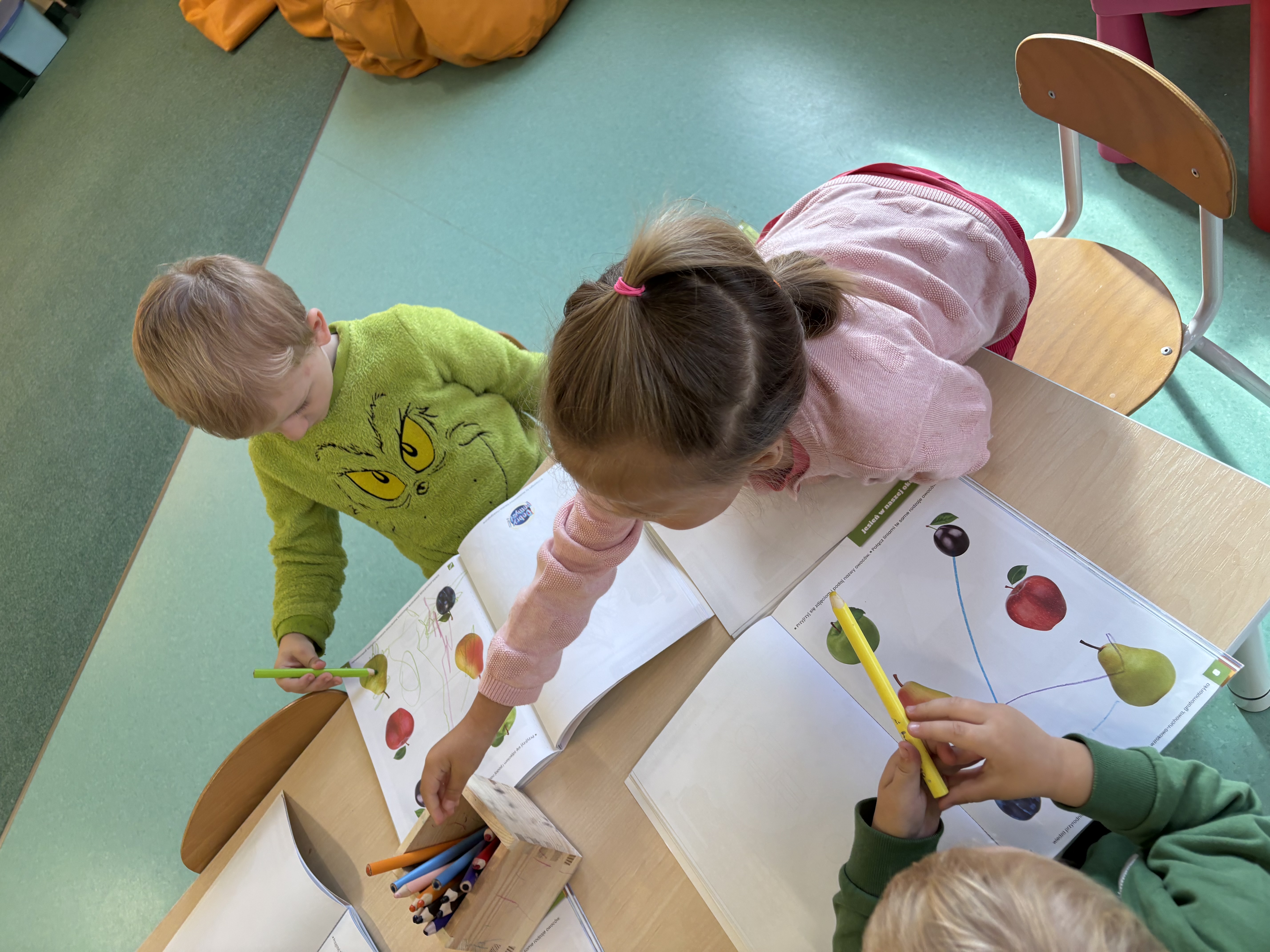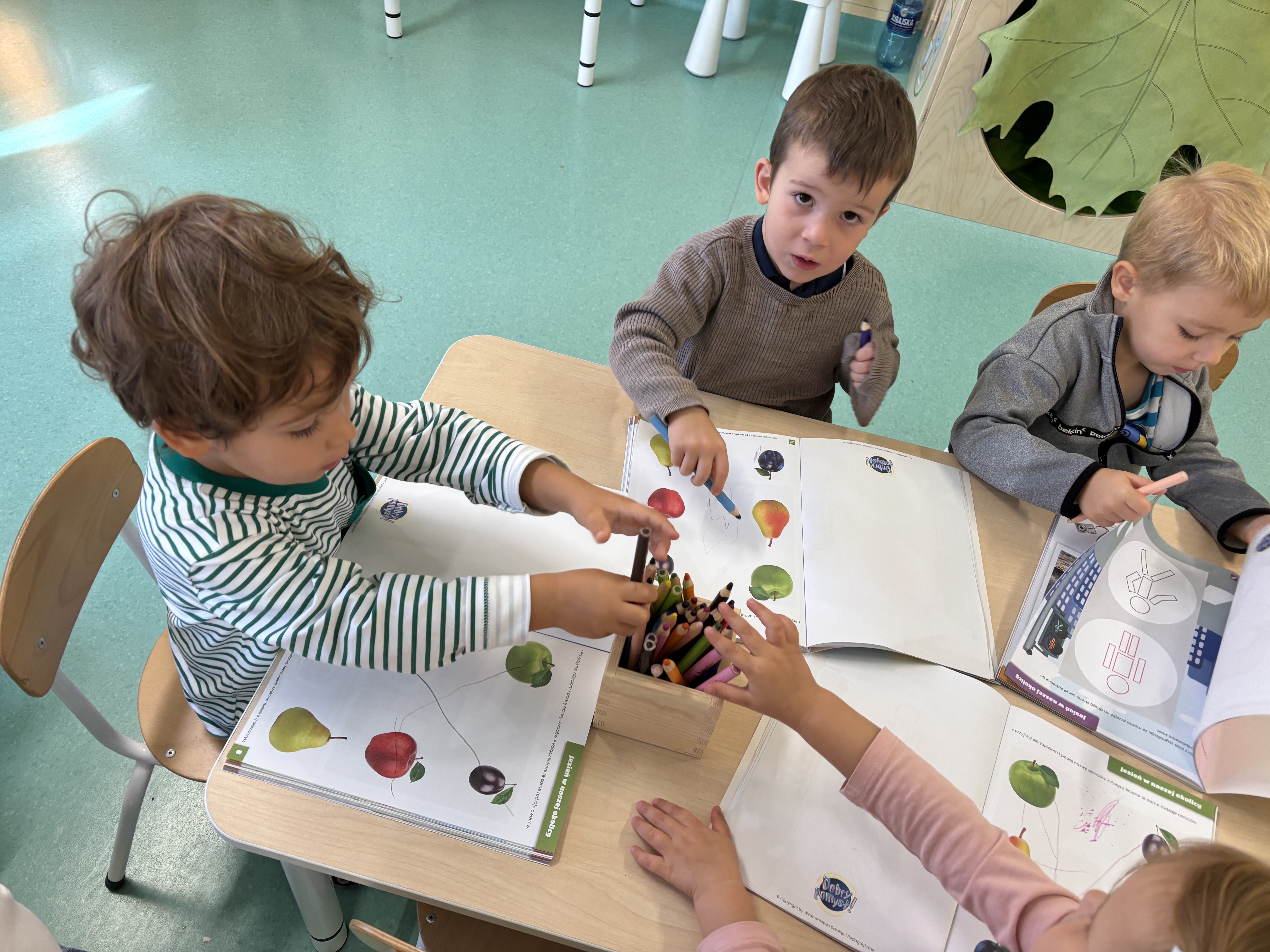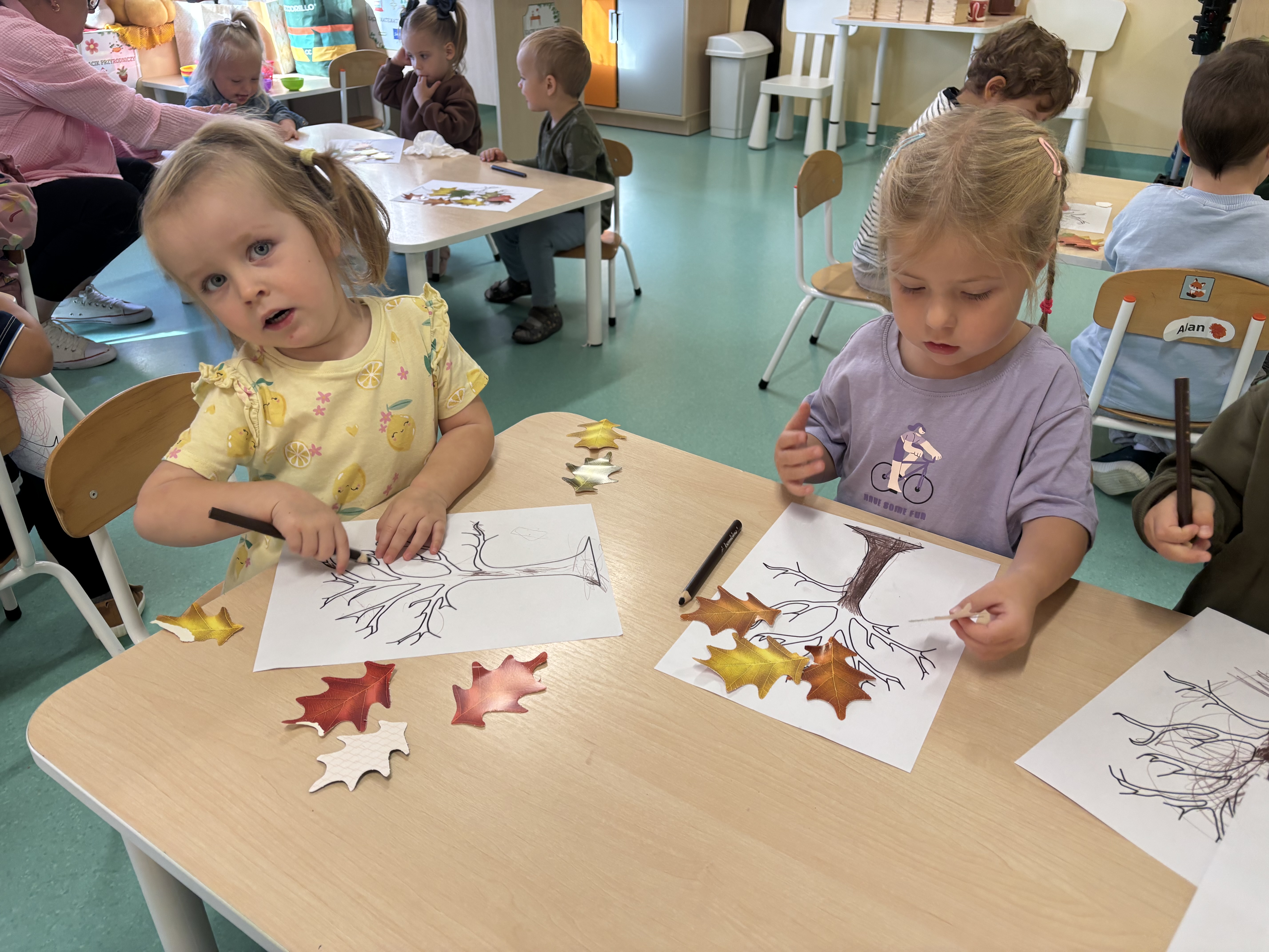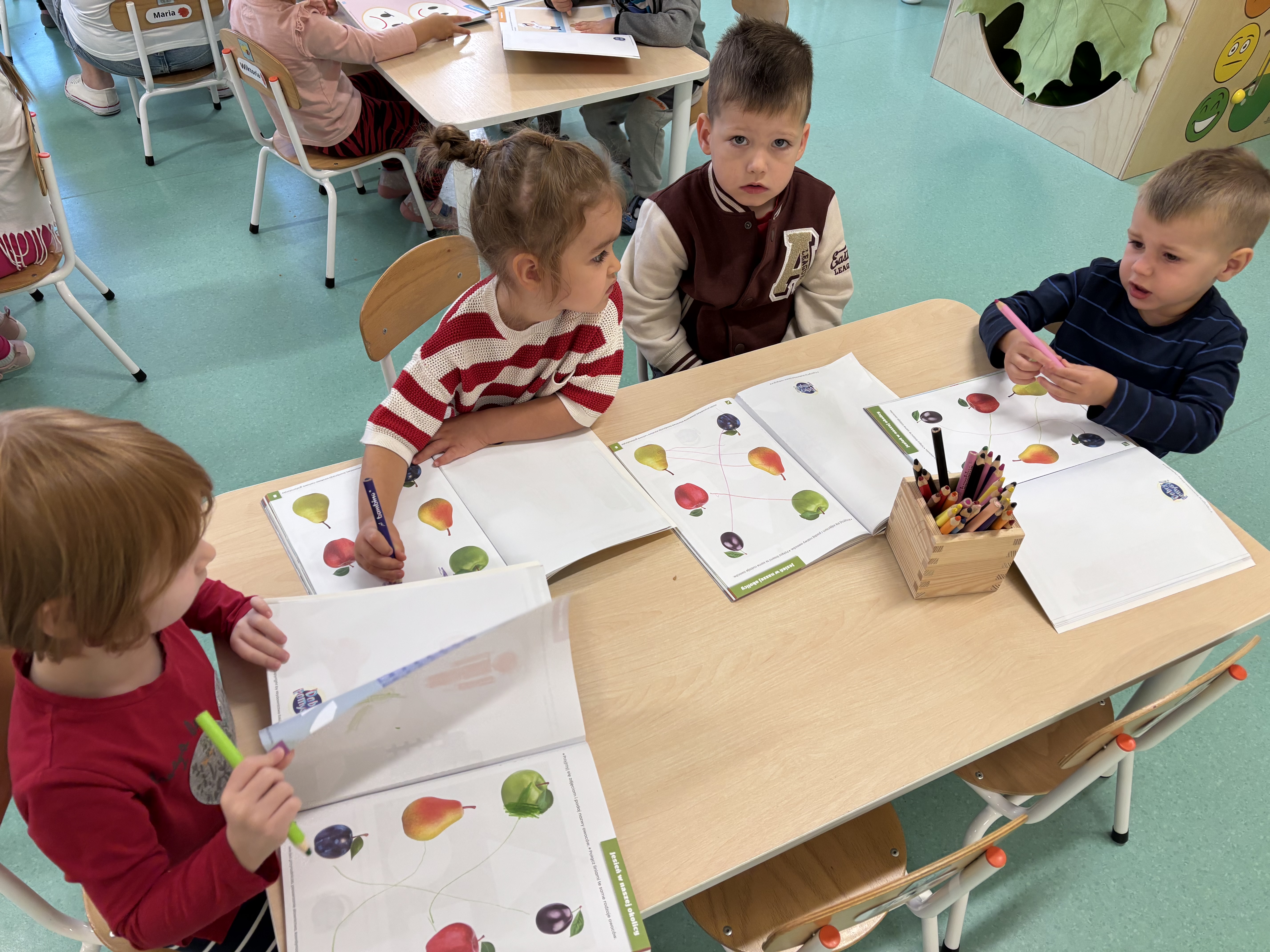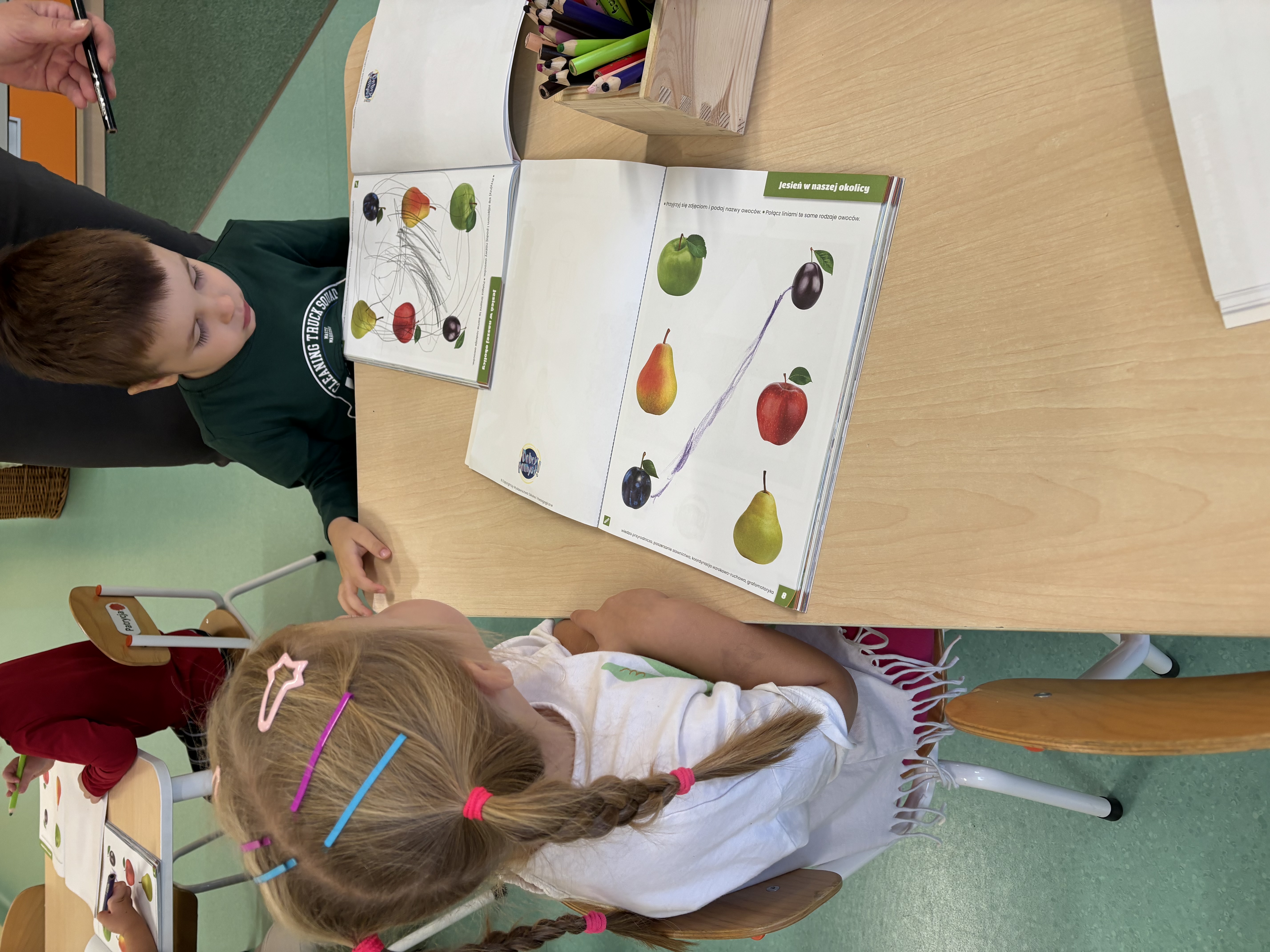 W minionym tygodniu dzieci poznawały uroki jesieni. Podczas zajęć plastycznych tworzyły prace z wykorzystaniem darów jesieni – liści, kasztanów i żołędzi. Rozmawiały o zmianach w przyrodzie, oglądały jesienne owoce i warzywa, a także słuchały opowiadań i wierszy o jesieni.