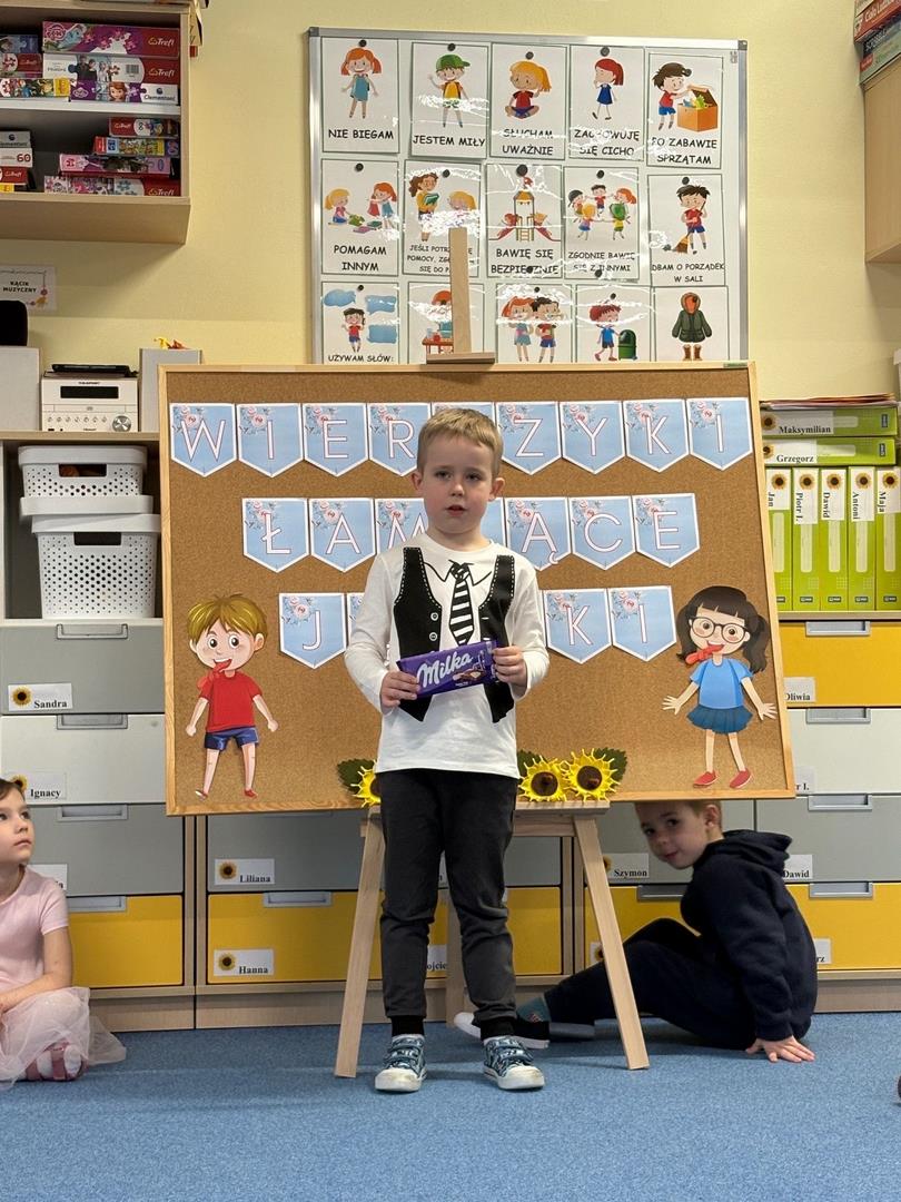 30 marca w naszym Ogródku odbył się konkurs recytatorski "Wierszyki łamiące języki". W konkursie brało udział 48 chętnych dzieci z naszego przedszkola. Komisja konkursowa wyłoniła zwycięzców oraz wyróżniła troje wykonawców.
