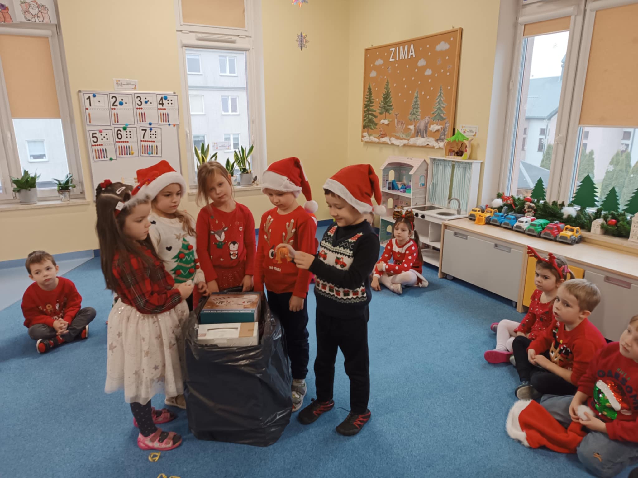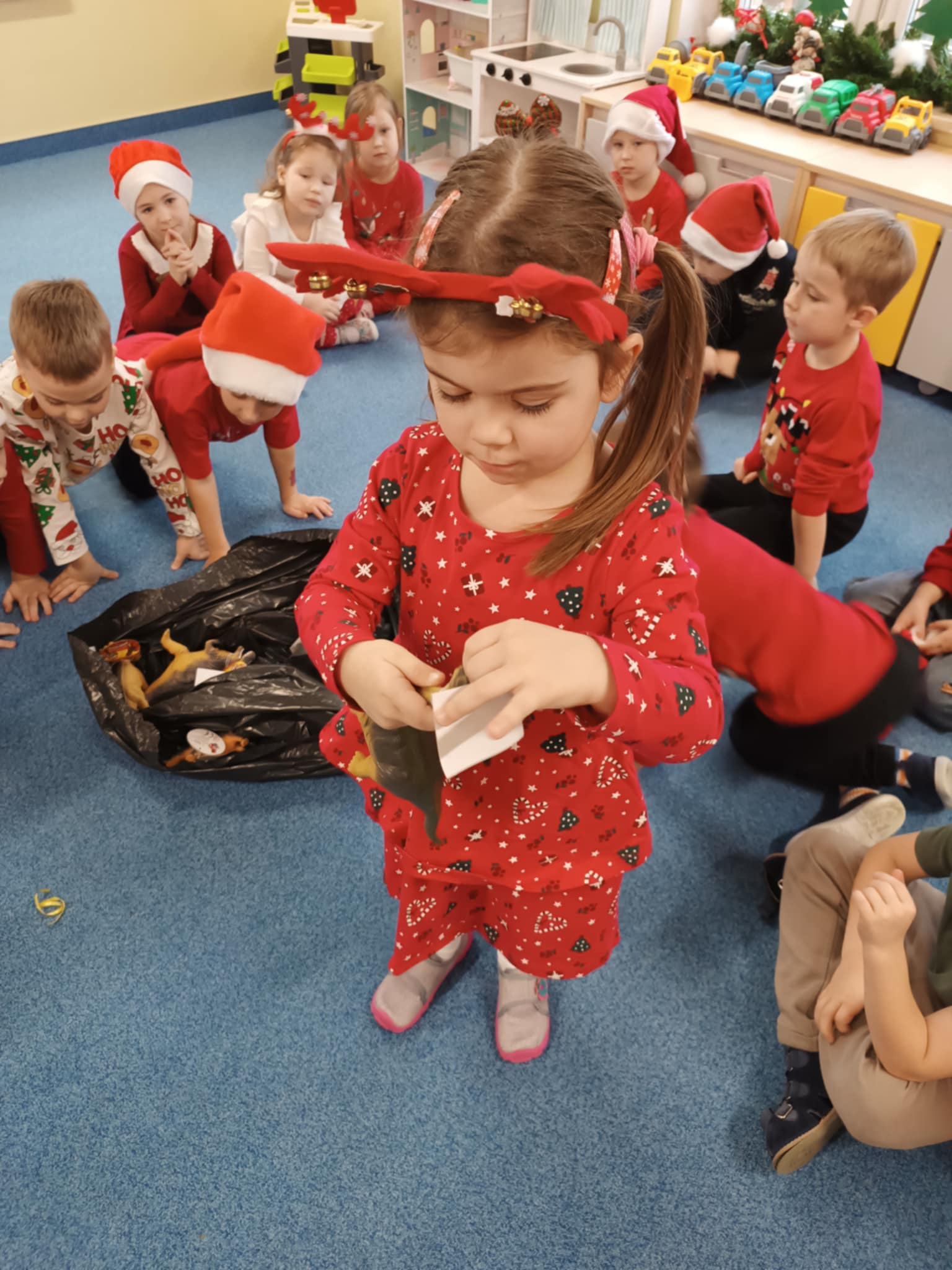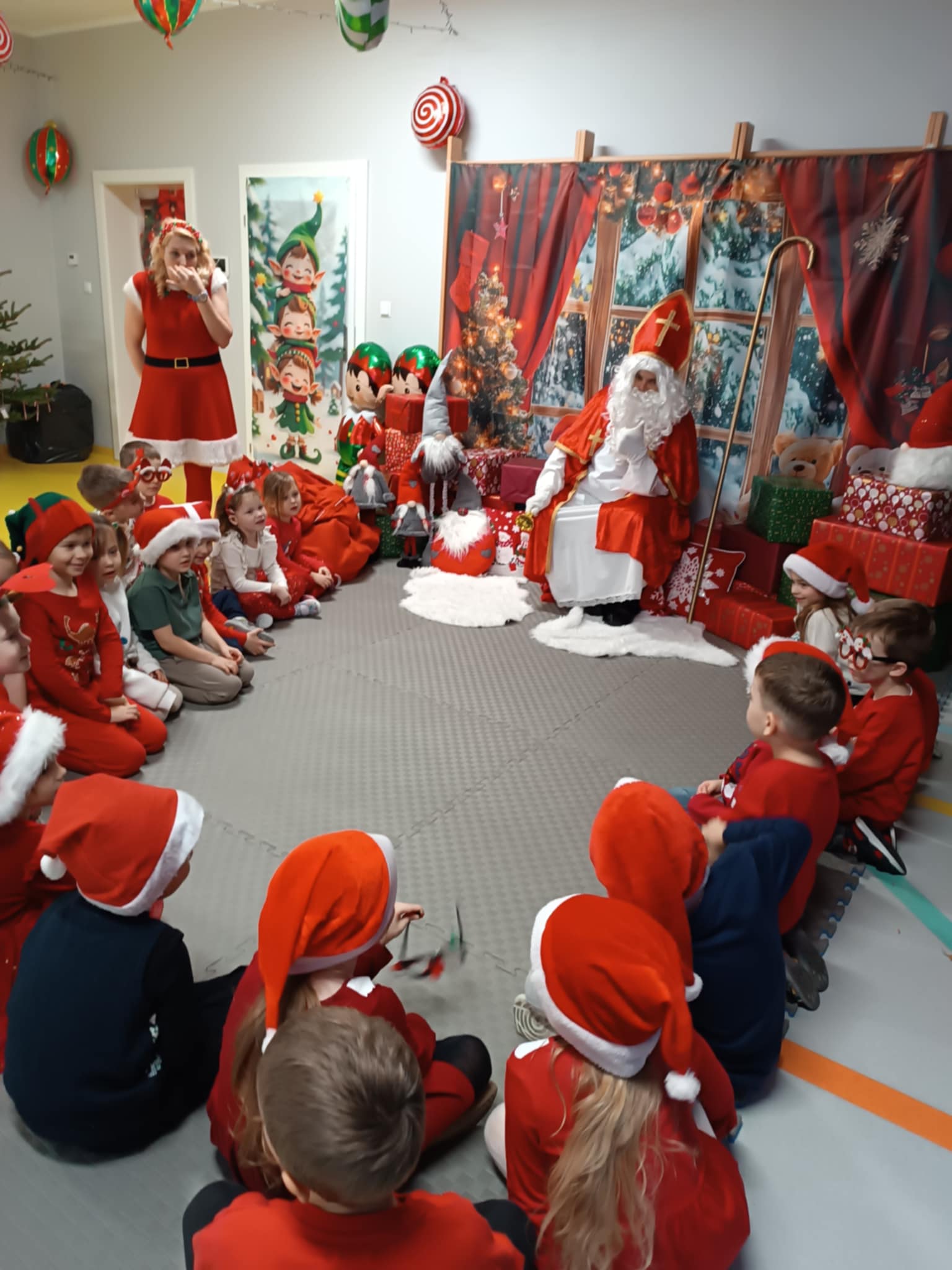 W piątek w naszym przedszkolu zjawił się Świety Mikołaj. W tym roku troszkę inaczej jak do tej pory nie odwiedzał dzieci na salach tylko dzieci odwiedzały go w jego wiosce na sali ruchu. Poza prezentami, które dzieci wzięły do domu był też jeszcze ogromny serek z nowymi zabawkami na sale.