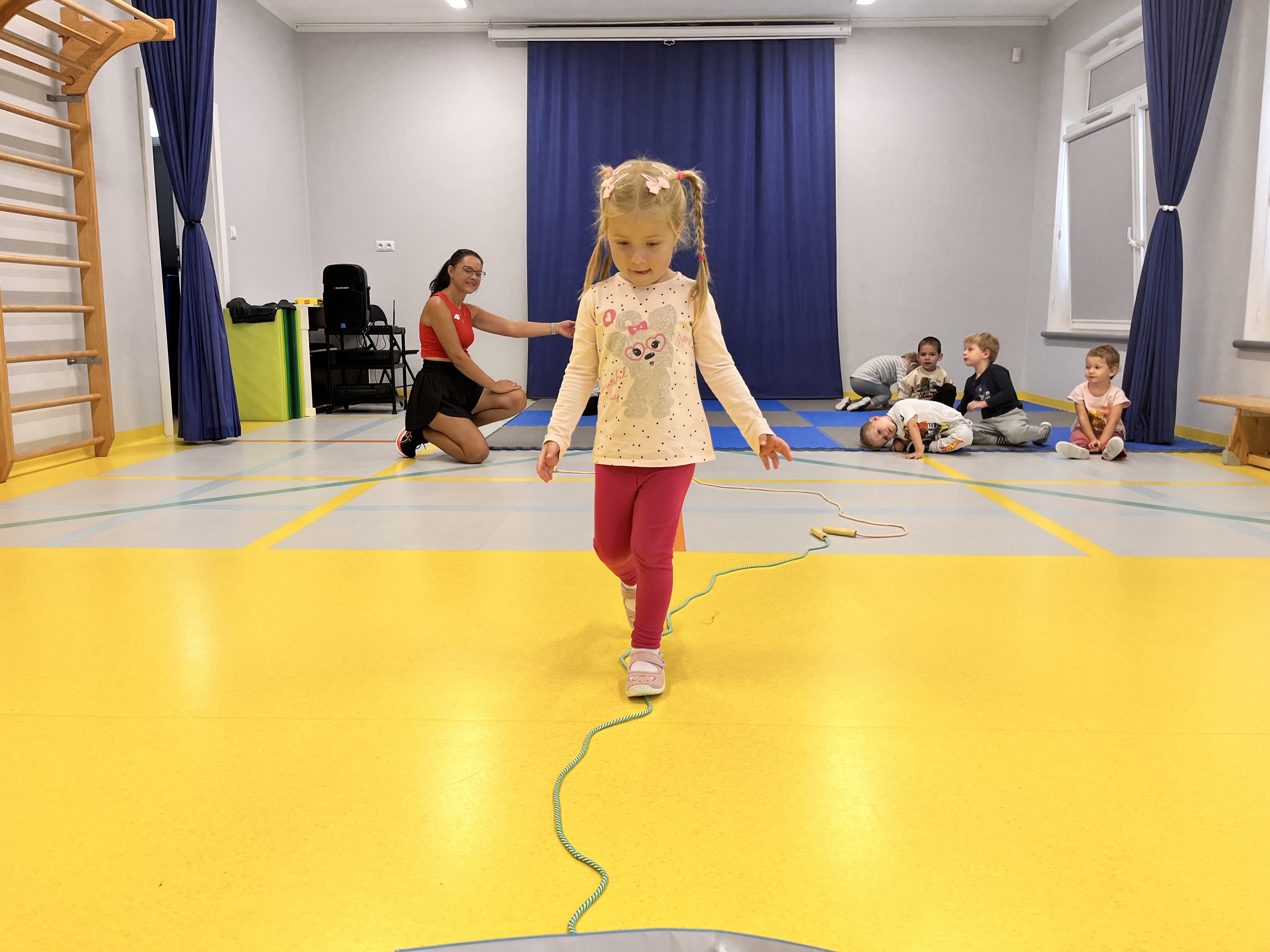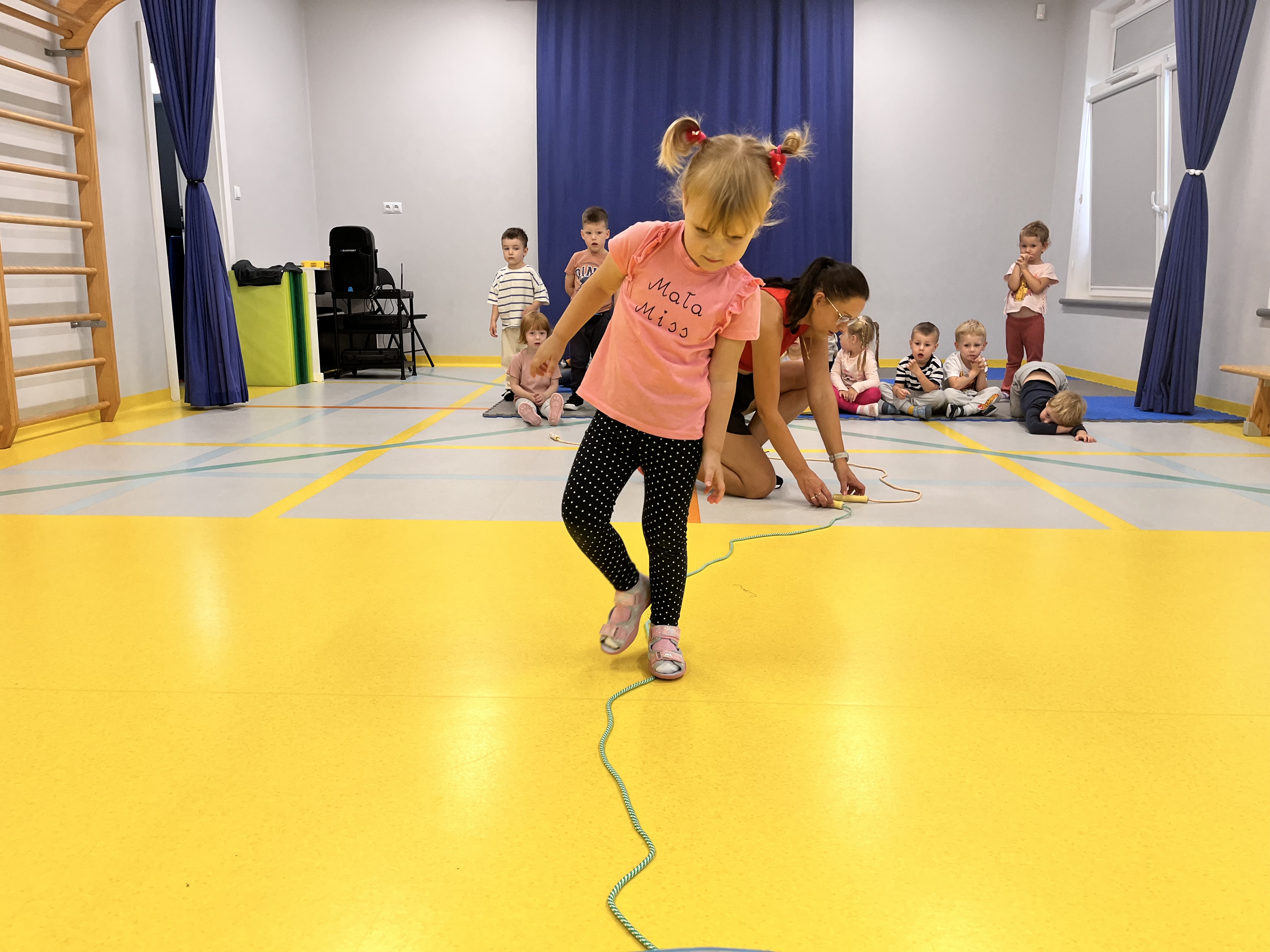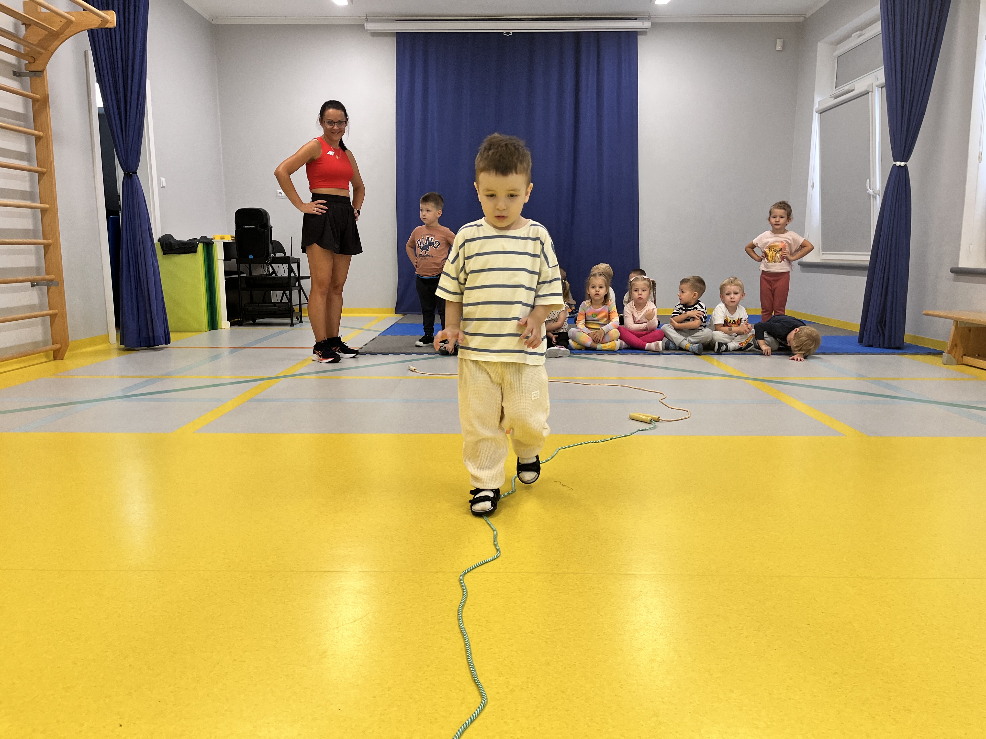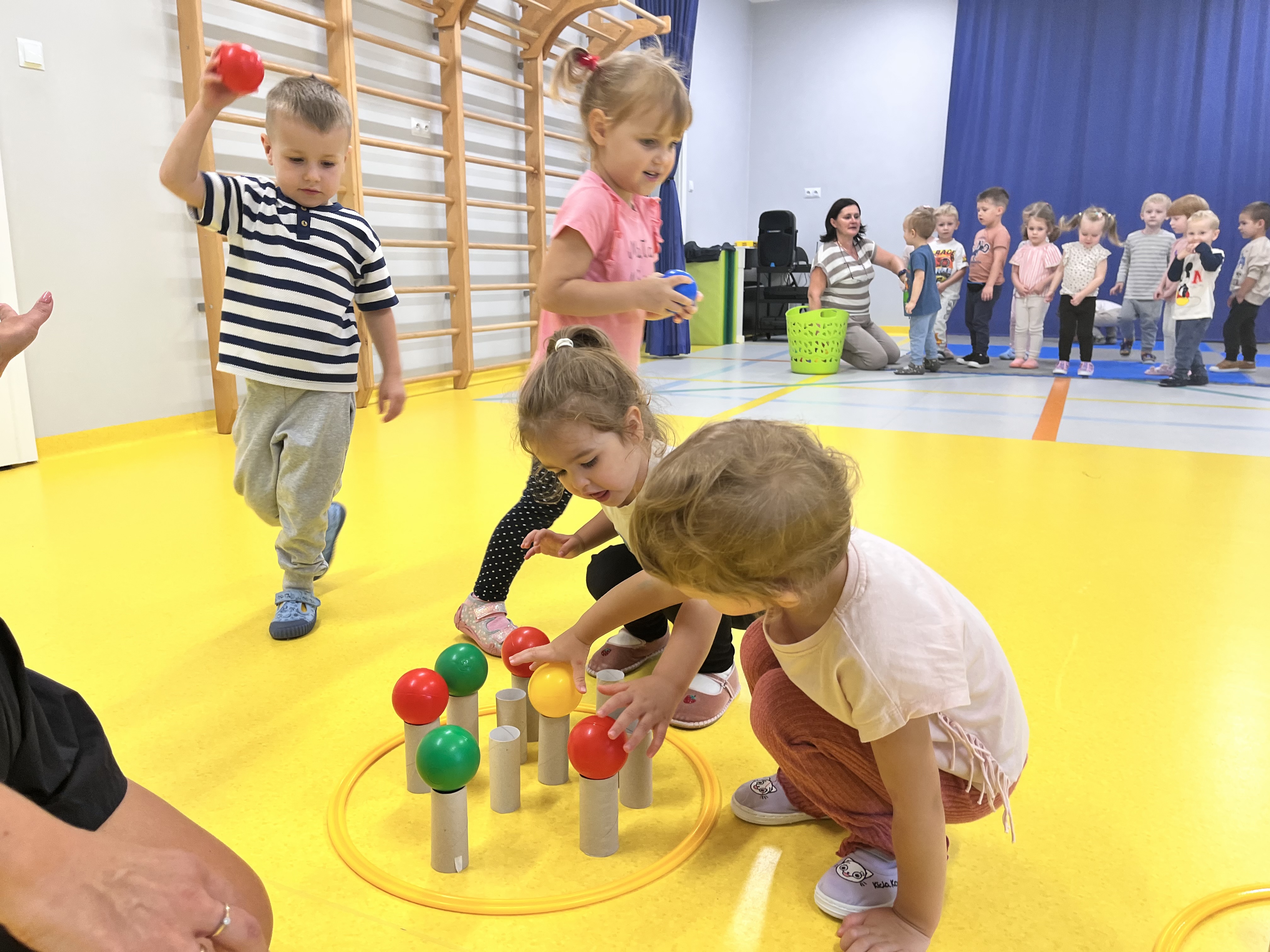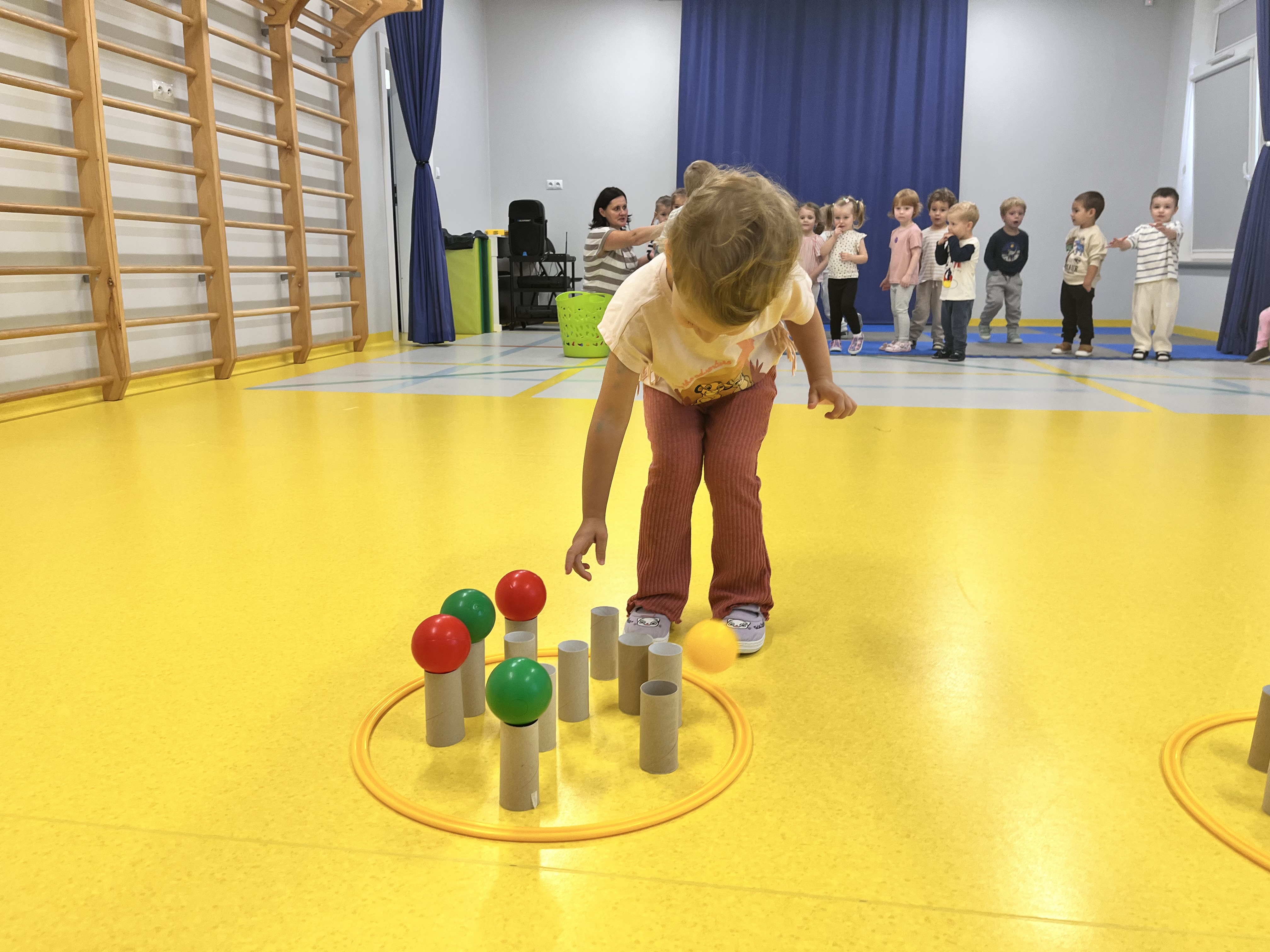Przedszkolaki uczestniczyły w różnorodnych konkurencjach i grach, które rozwijały ich sprawność fizyczną, koordynację ruchową oraz uczyły zasad zdrowej rywalizacji i współpracy. Były wyścigi, tory przeszkód, zabawy z piłkami.