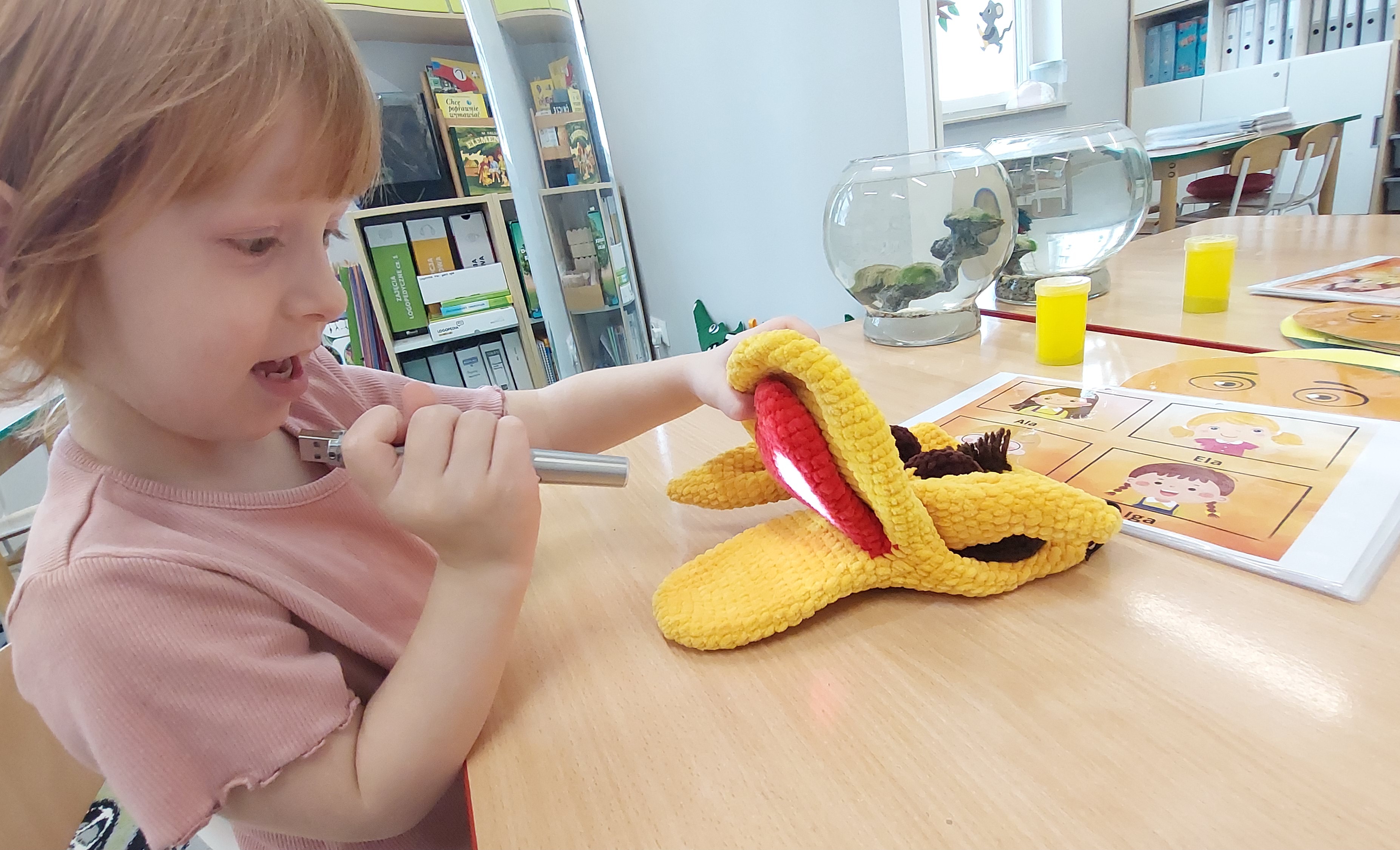 Podczas tegorocznych logopedycznych badań przesiewowych najwięcej radości przyniosły nam najmłodsze Aksamitki. Całkiem niedawno przekroczyły próg przedszkola i bardzo chętnie odwiedziły gabinet terapeutyczny. Chętnie nazywały kolorowe obrazki a nawet pozwoliły zobaczyć ząbki i gardełko.
