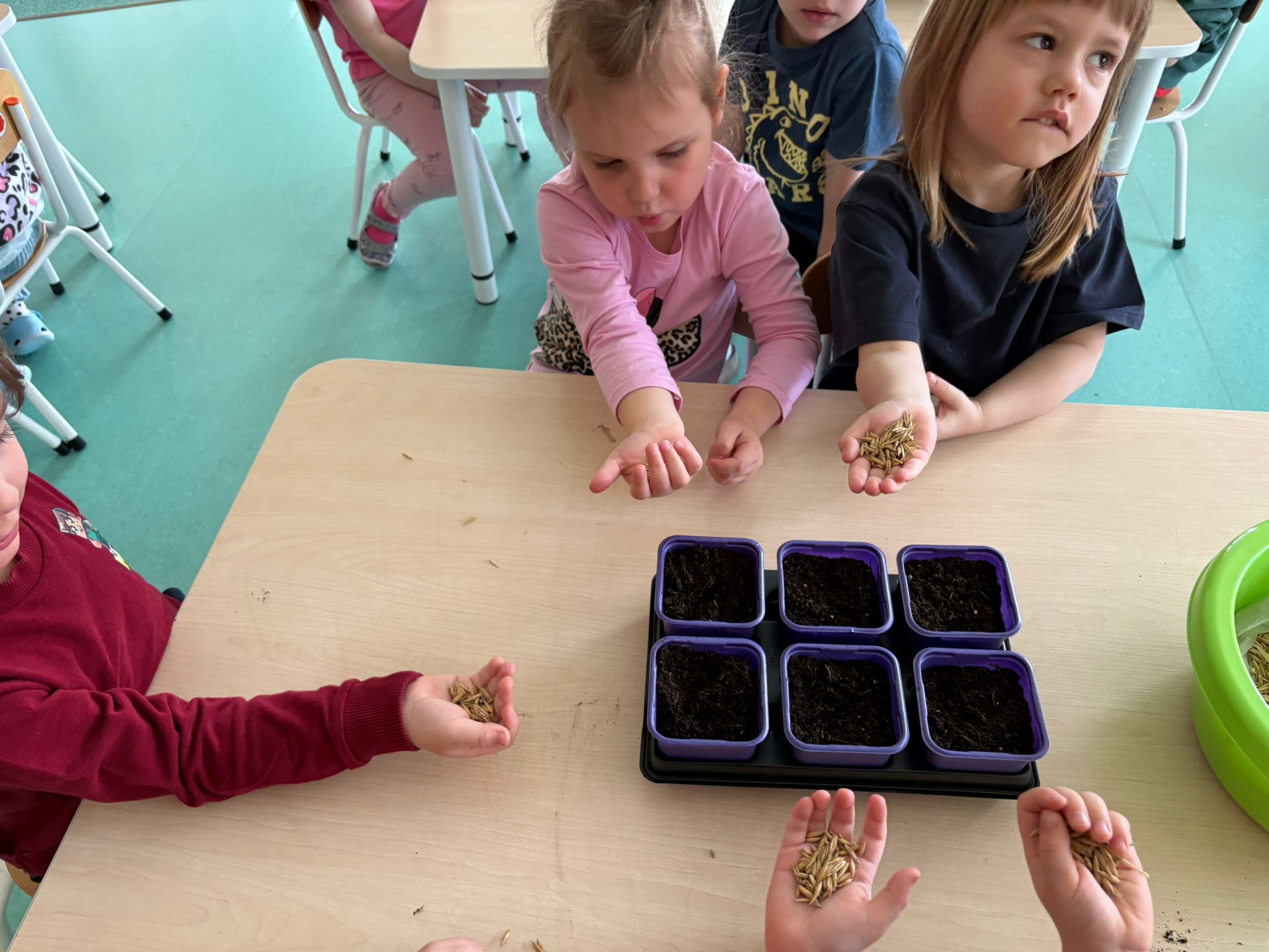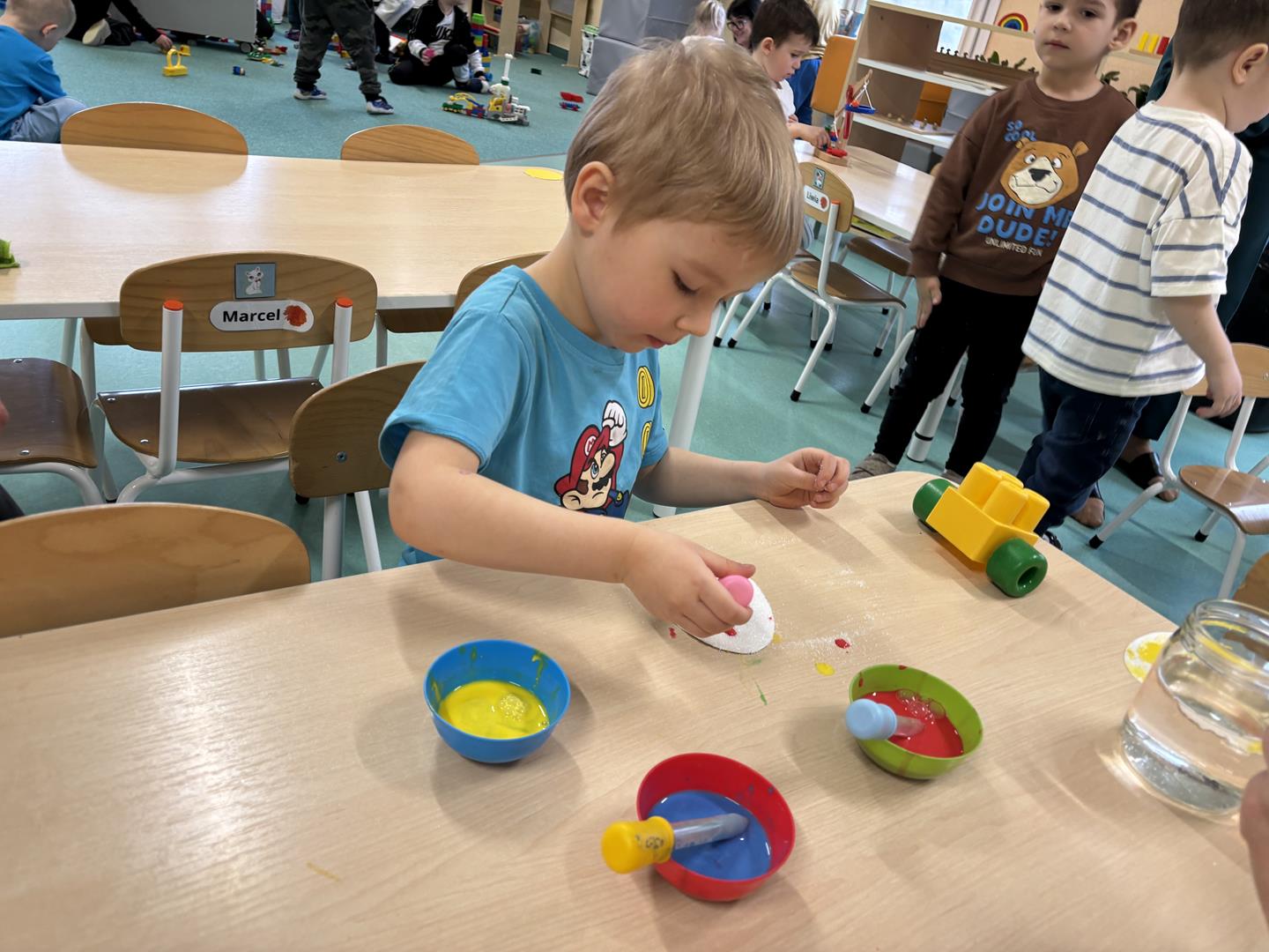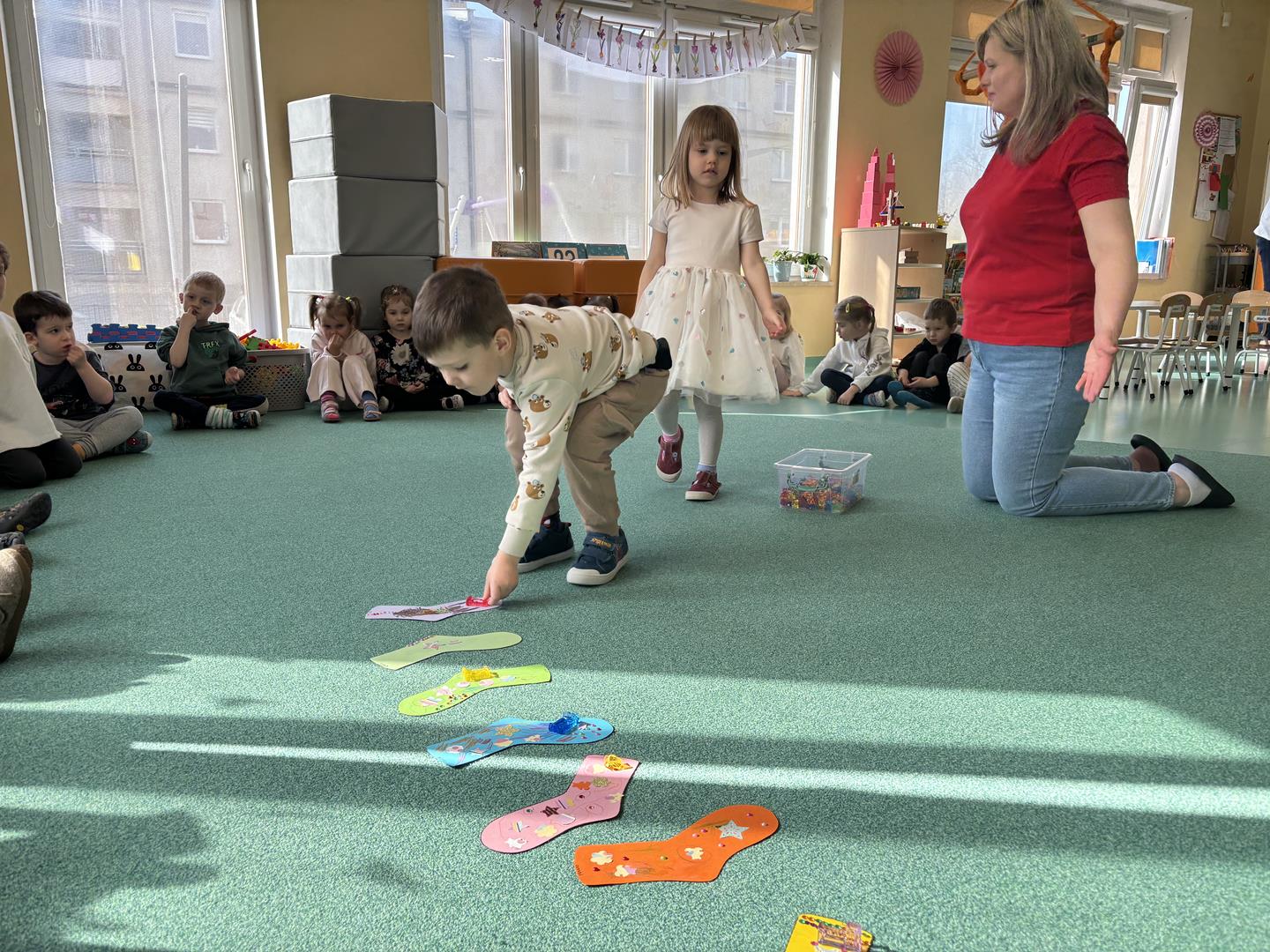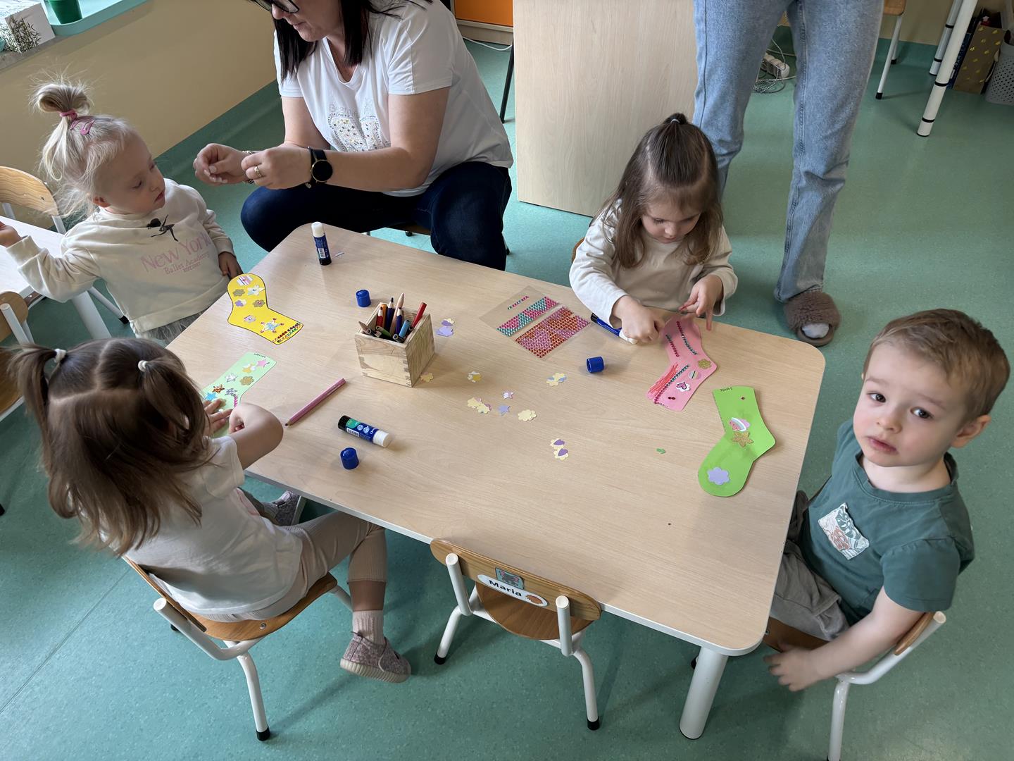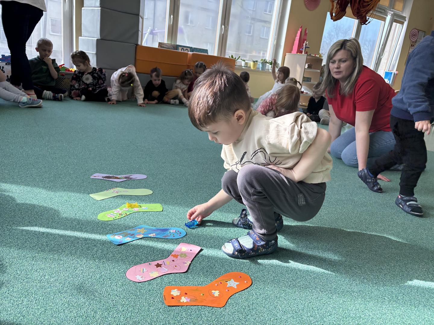 W naszej grupie „Aksamitki” ostatnie dni upłynęły w radosnej, wiosennej atmosferze i intensywnych przygotowaniach do nadchodzących świąt. Obchodziliśmy Dzień Kolorowej Skarpety, który był doskonałą okazją do rozmów o akceptacji, różnorodności i życzliwości wobec innych. Dzieci z dumą prezentowały swoje barwne, nie do pary skarpetki, a wspólną zabawę uświetnił konkurs na najciekawszą skarpetkę! W ramach przygotowań wielkanocnych dzieci z zapałem przystąpiły do tworzenia papierowych pisanek, każda praca była wyjątkowa i pełna wiosennych kolorów. Nie zabrakło również tradycyjnych działań – wspólnie zasialiśmy owies, obserwując, jak z dnia na dzień rośnie i przypomina nam o budzącej się do życia przyrodzie.