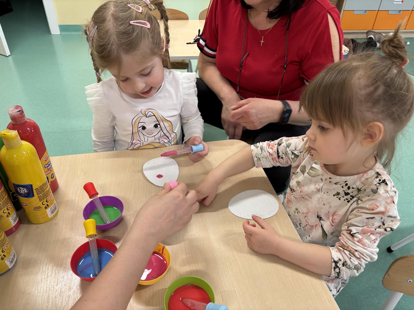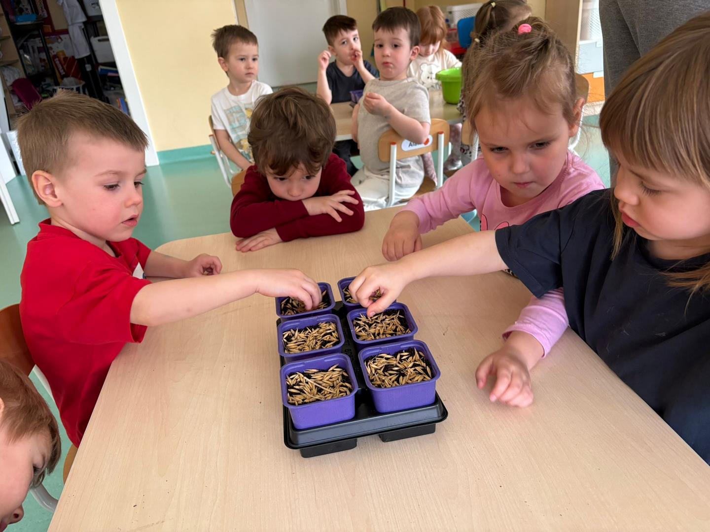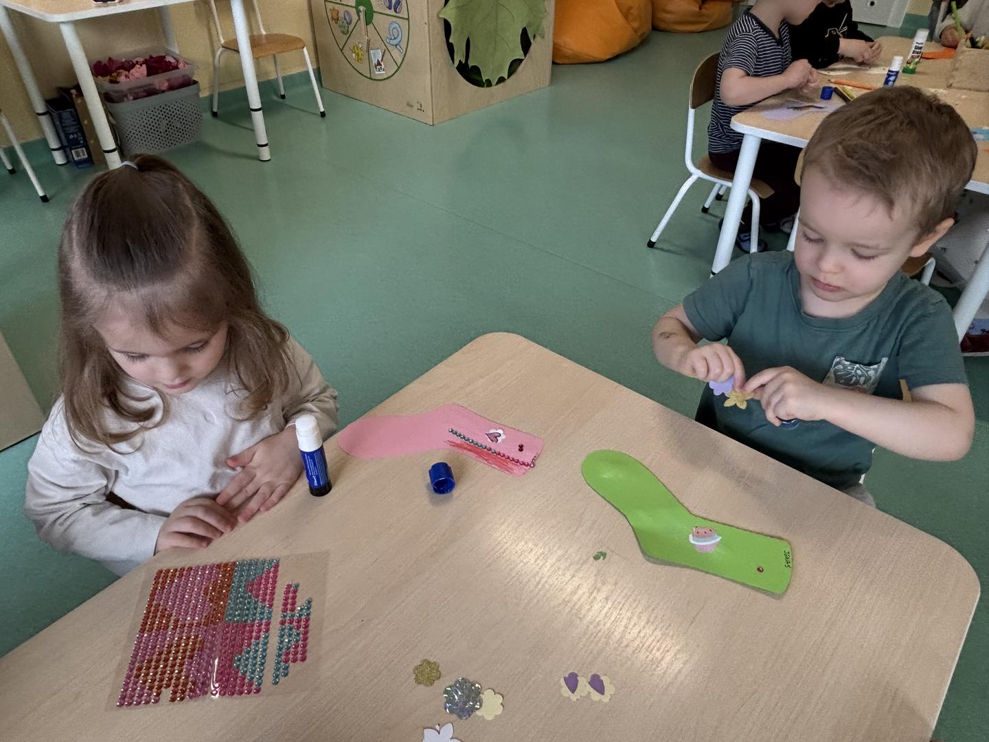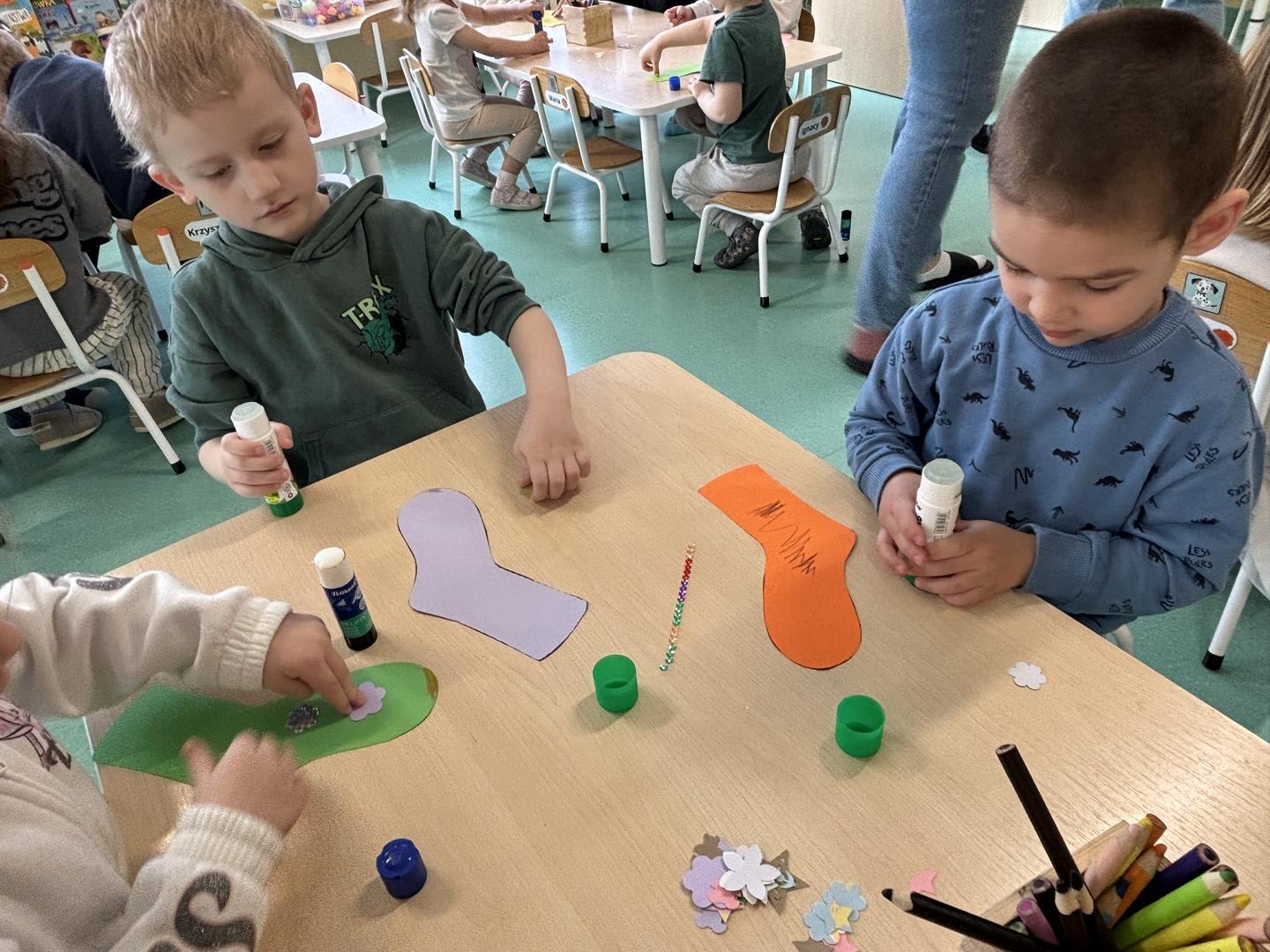 W naszej grupie „Aksamitki” ostatnie dni upłynęły w radosnej, wiosennej atmosferze i intensywnych przygotowaniach do nadchodzących świąt. Obchodziliśmy Dzień Kolorowej Skarpety, który był doskonałą okazją do rozmów o akceptacji, różnorodności i życzliwości wobec innych. Dzieci z dumą prezentowały swoje barwne, nie do pary skarpetki, a wspólną zabawę uświetnił konkurs na najciekawszą skarpetkę! W ramach przygotowań wielkanocnych dzieci z zapałem przystąpiły do tworzenia papierowych pisanek, każda praca była wyjątkowa i pełna wiosennych kolorów. Nie zabrakło również tradycyjnych działań – wspólnie zasialiśmy owies, obserwując, jak z dnia na dzień rośnie i przypomina nam o budzącej się do życia przyrodzie.