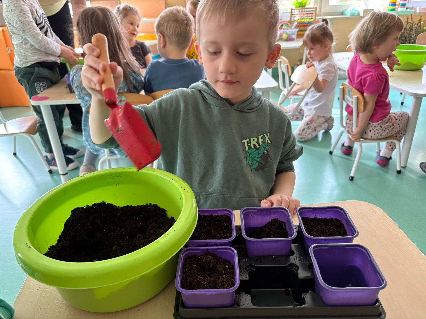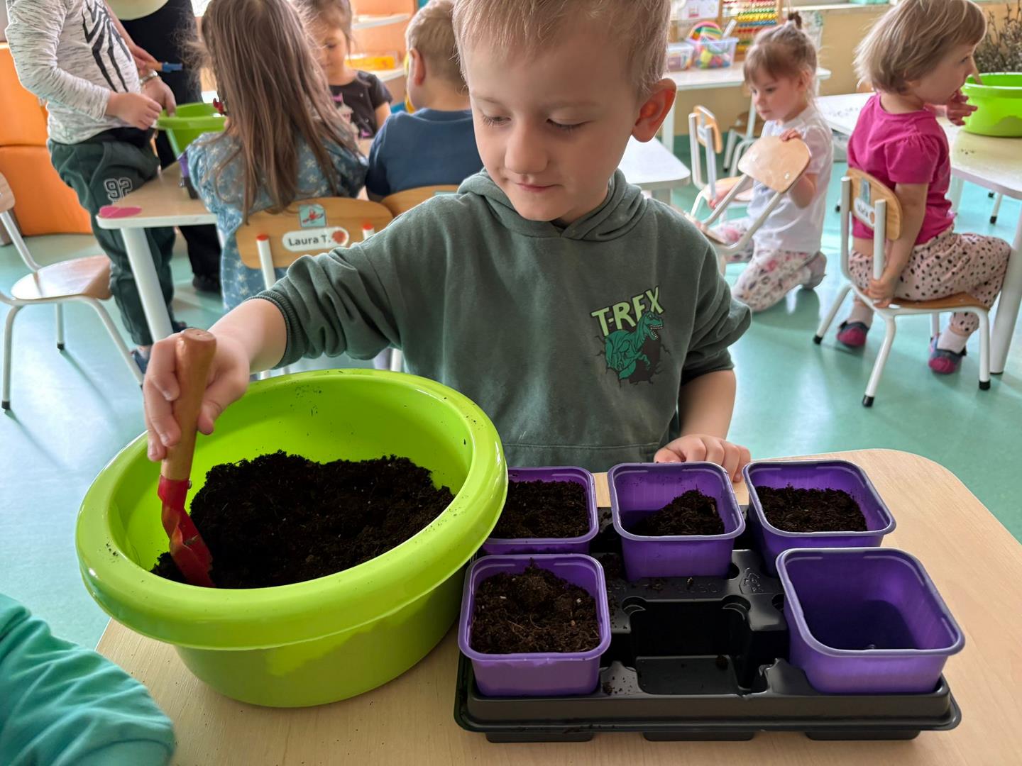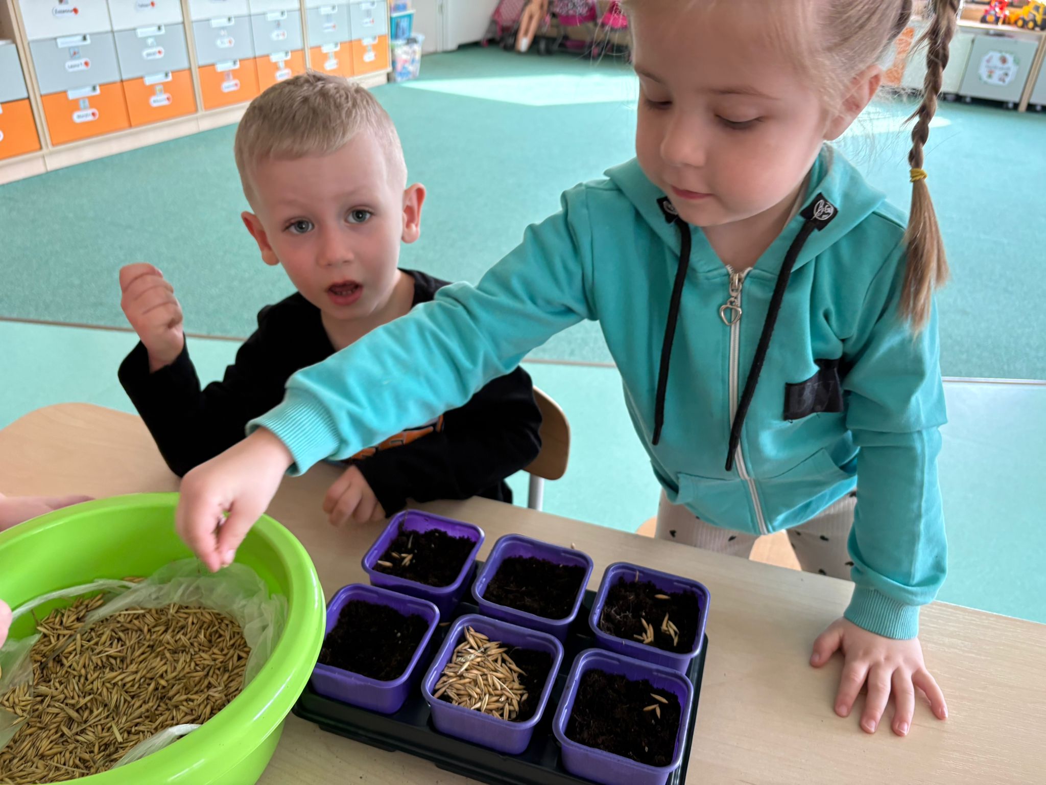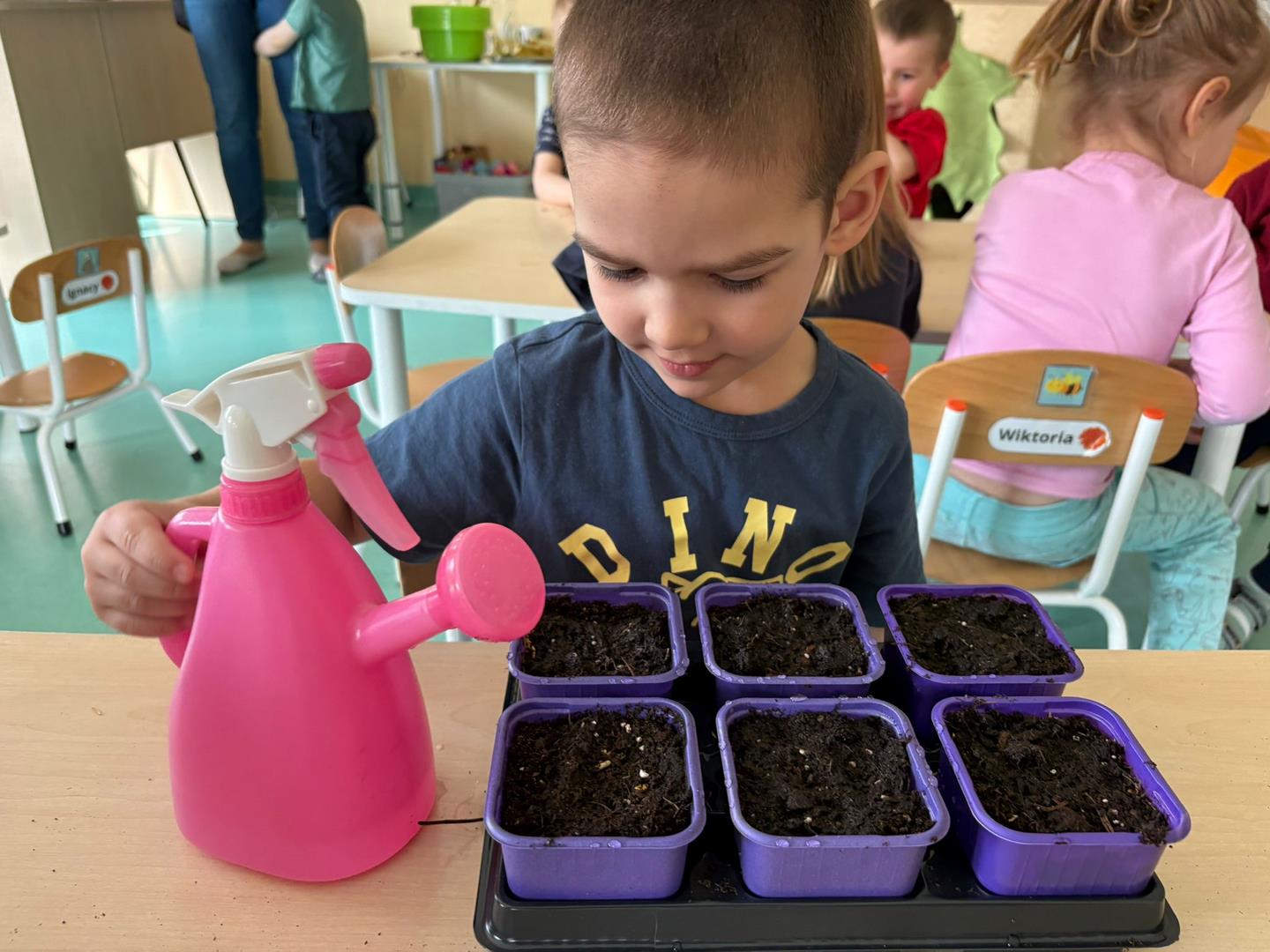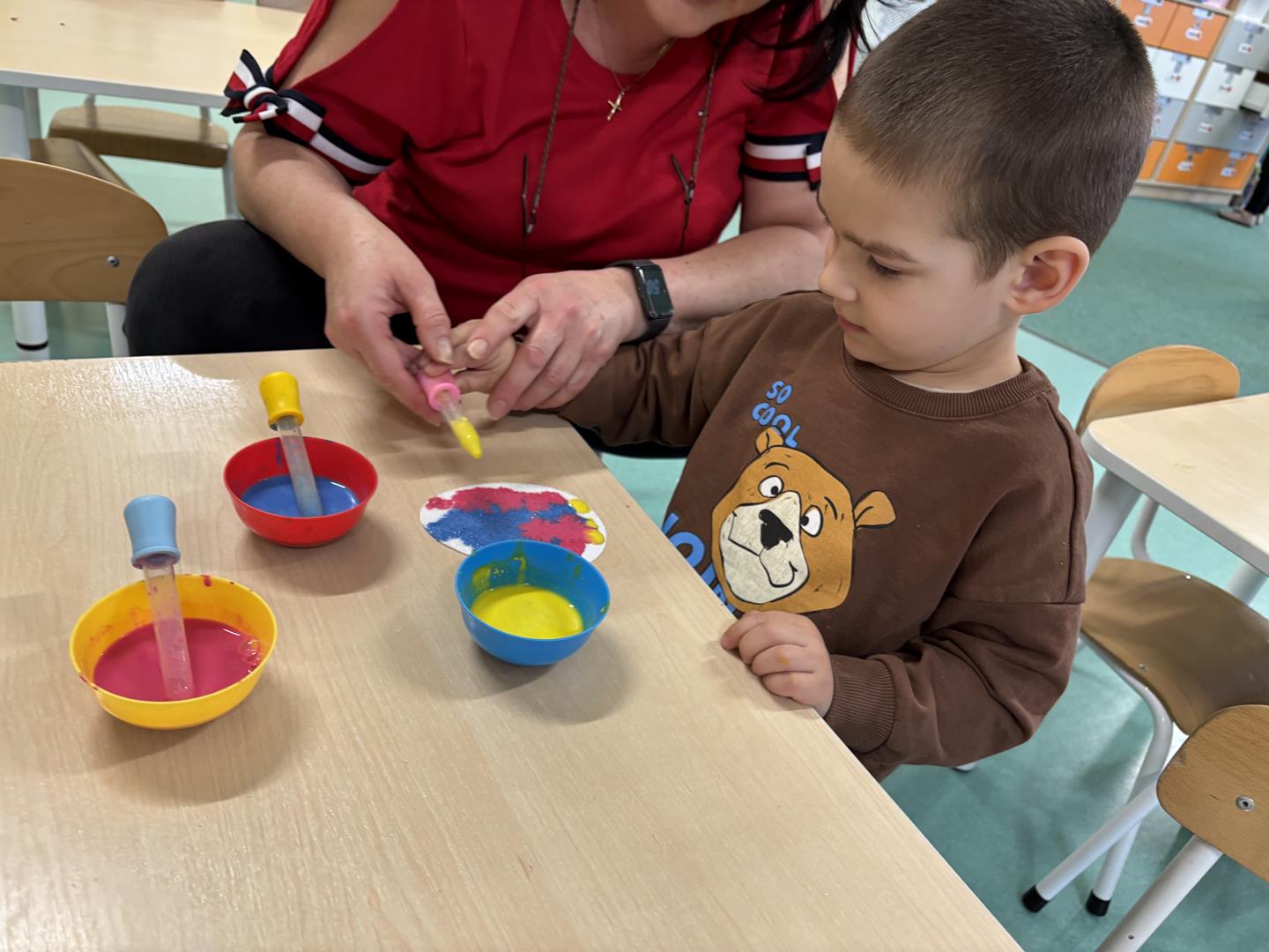 W naszej grupie „Aksamitki” ostatnie dni upłynęły w radosnej, wiosennej atmosferze i intensywnych przygotowaniach do nadchodzących świąt. Obchodziliśmy Dzień Kolorowej Skarpety, który był doskonałą okazją do rozmów o akceptacji, różnorodności i życzliwości wobec innych. Dzieci z dumą prezentowały swoje barwne, nie do pary skarpetki, a wspólną zabawę uświetnił konkurs na najciekawszą skarpetkę! W ramach przygotowań wielkanocnych dzieci z zapałem przystąpiły do tworzenia papierowych pisanek, każda praca była wyjątkowa i pełna wiosennych kolorów. Nie zabrakło również tradycyjnych działań – wspólnie zasialiśmy owies, obserwując, jak z dnia na dzień rośnie i przypomina nam o budzącej się do życia przyrodzie.