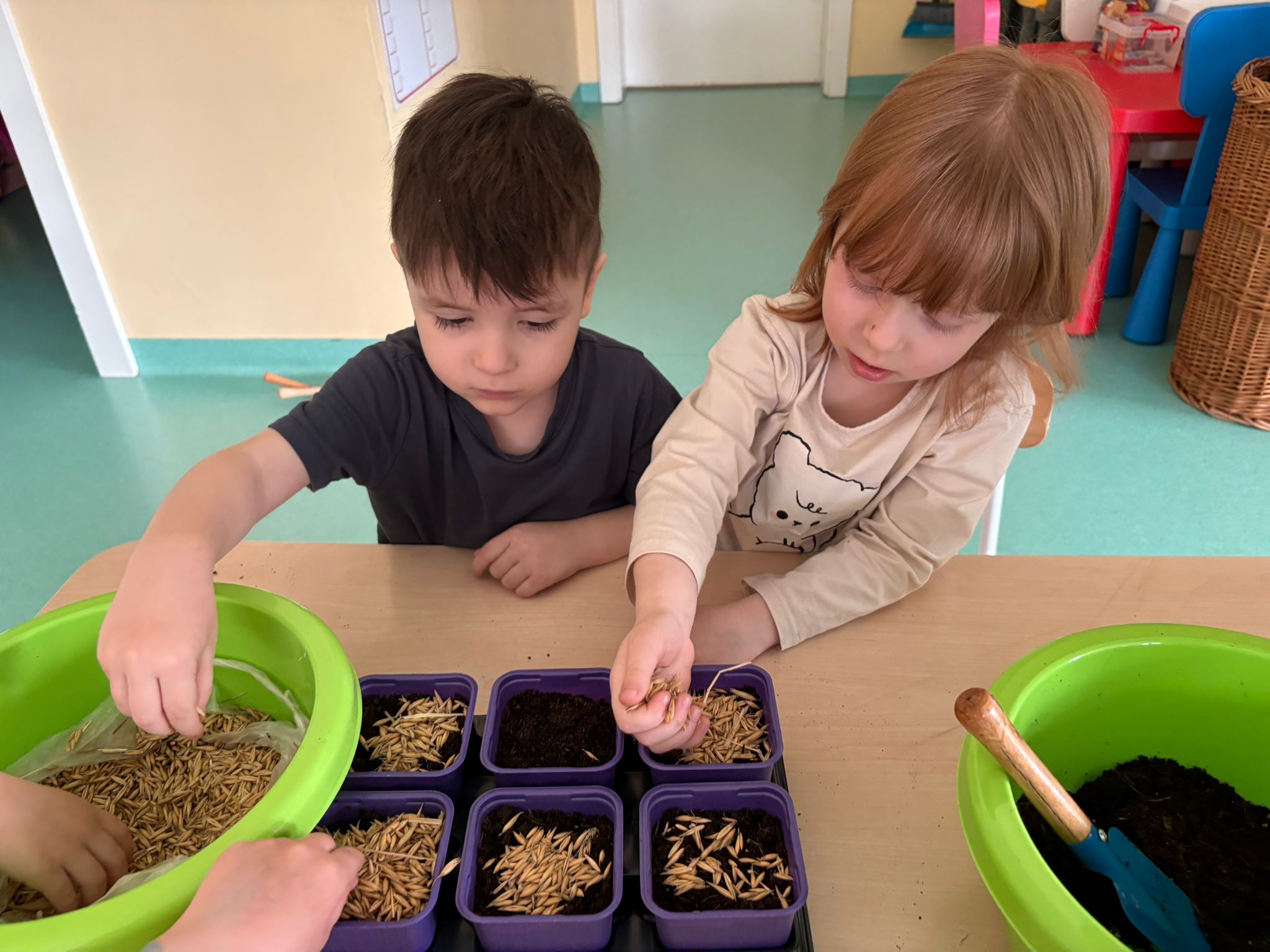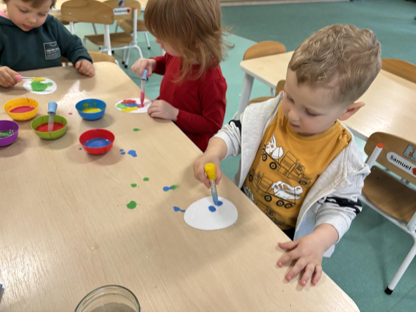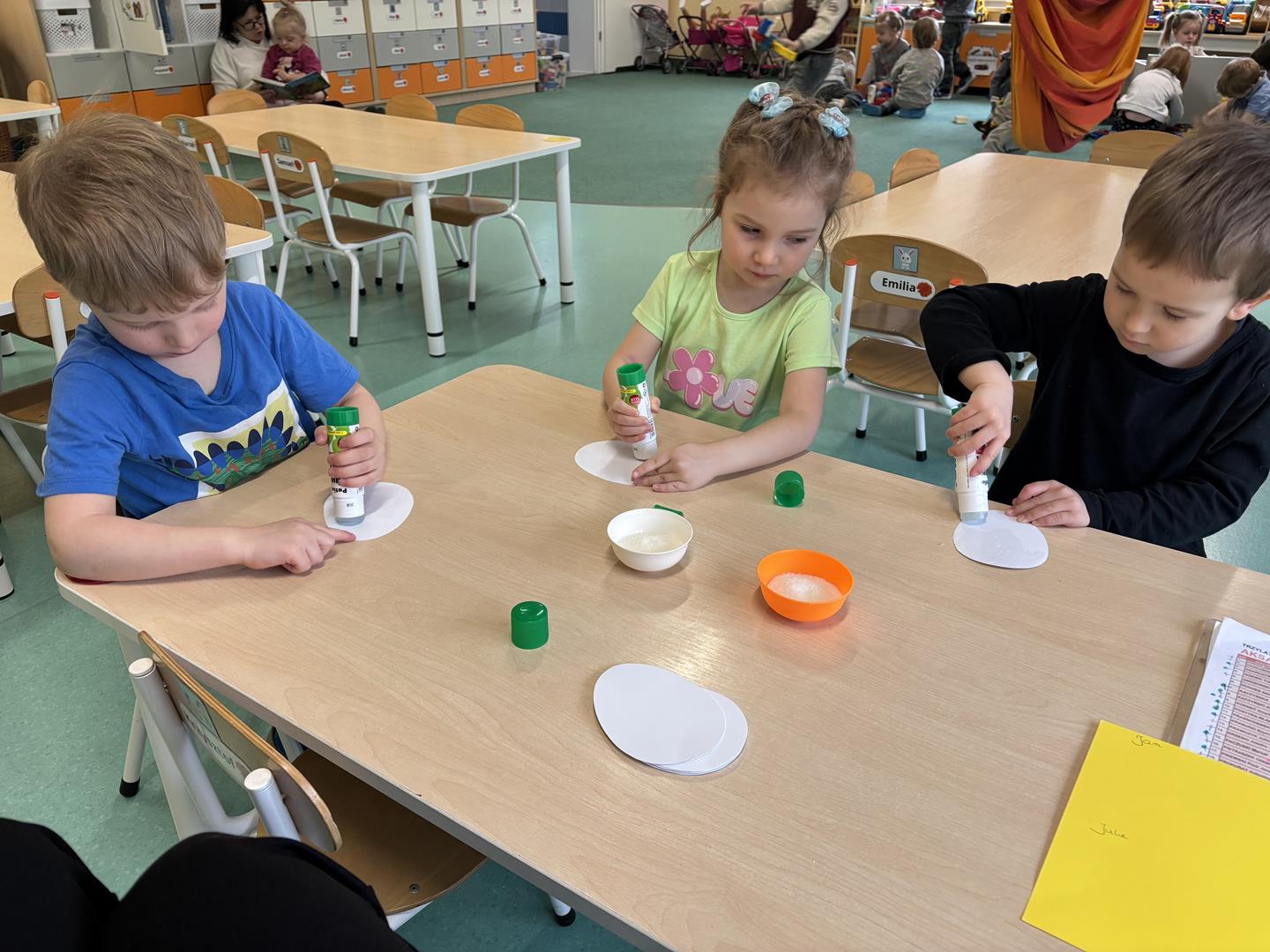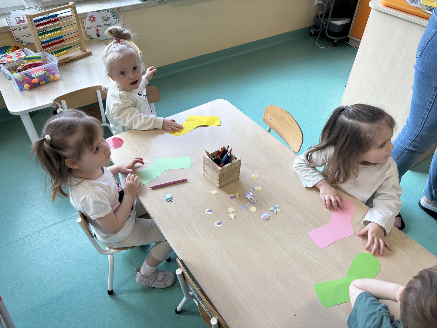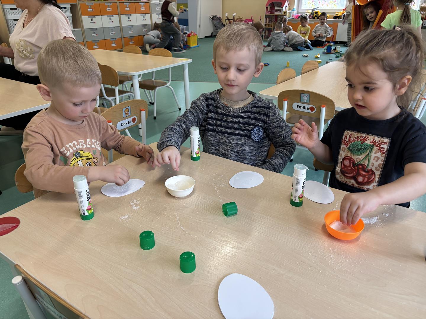 W naszej grupie „Aksamitki” ostatnie dni upłynęły w radosnej, wiosennej atmosferze i intensywnych przygotowaniach do nadchodzących świąt. Obchodziliśmy Dzień Kolorowej Skarpety, który był doskonałą okazją do rozmów o akceptacji, różnorodności i życzliwości wobec innych. Dzieci z dumą prezentowały swoje barwne, nie do pary skarpetki, a wspólną zabawę uświetnił konkurs na najciekawszą skarpetkę! W ramach przygotowań wielkanocnych dzieci z zapałem przystąpiły do tworzenia papierowych pisanek, każda praca była wyjątkowa i pełna wiosennych kolorów. Nie zabrakło również tradycyjnych działań – wspólnie zasialiśmy owies, obserwując, jak z dnia na dzień rośnie i przypomina nam o budzącej się do życia przyrodzie.