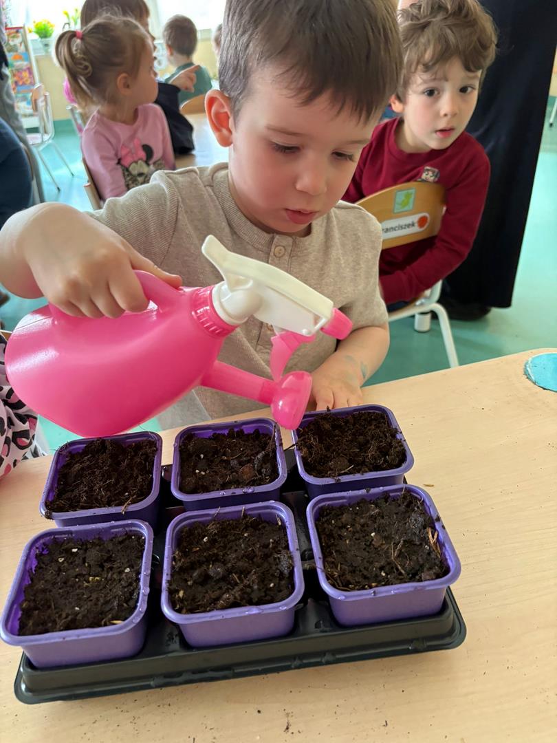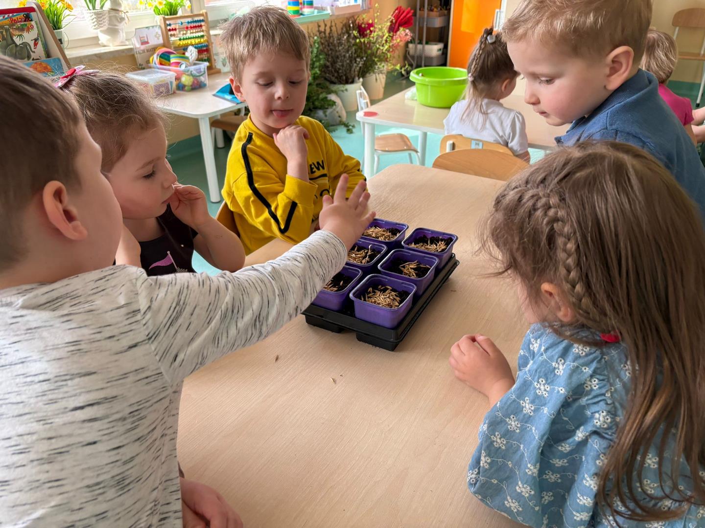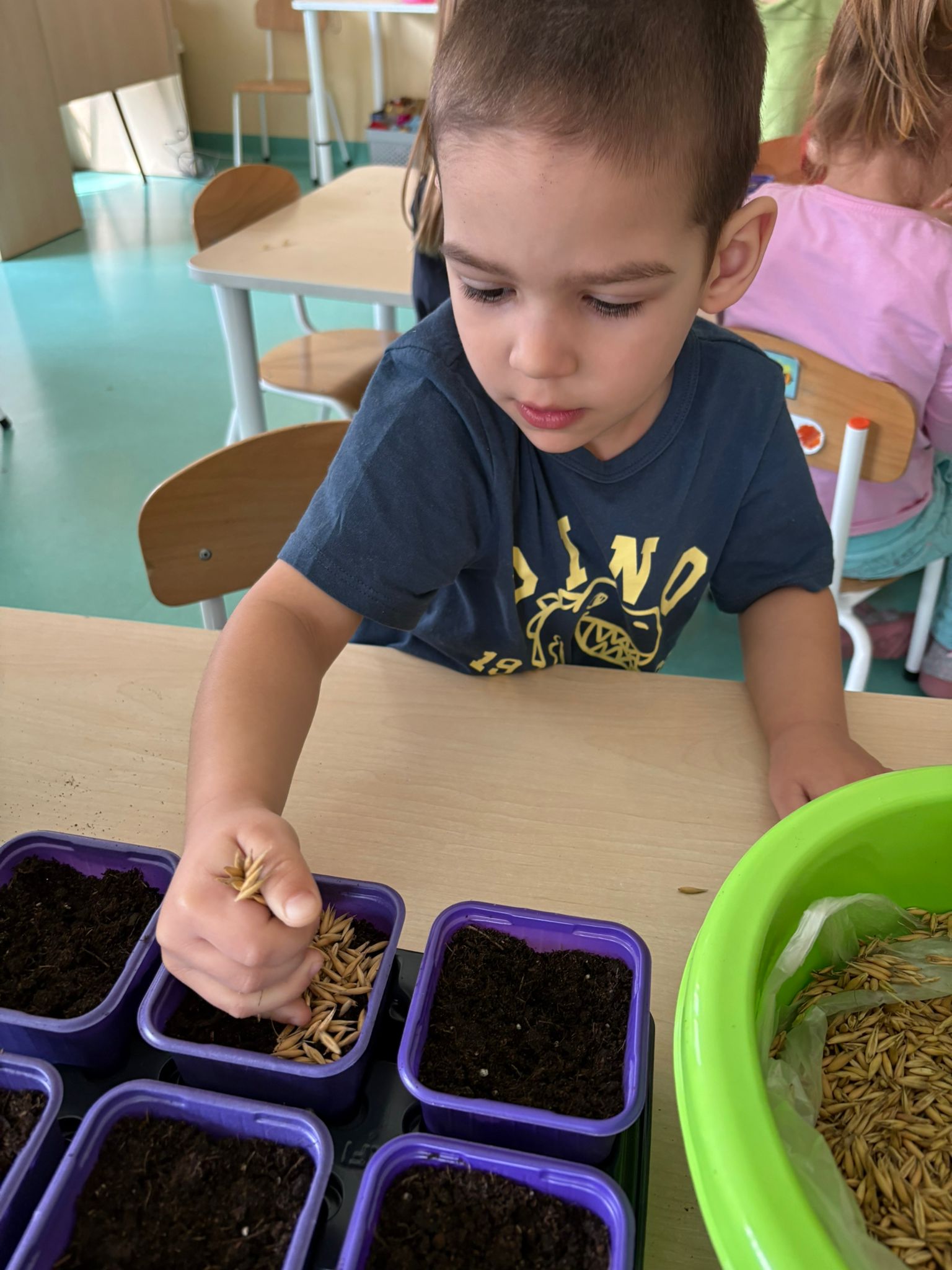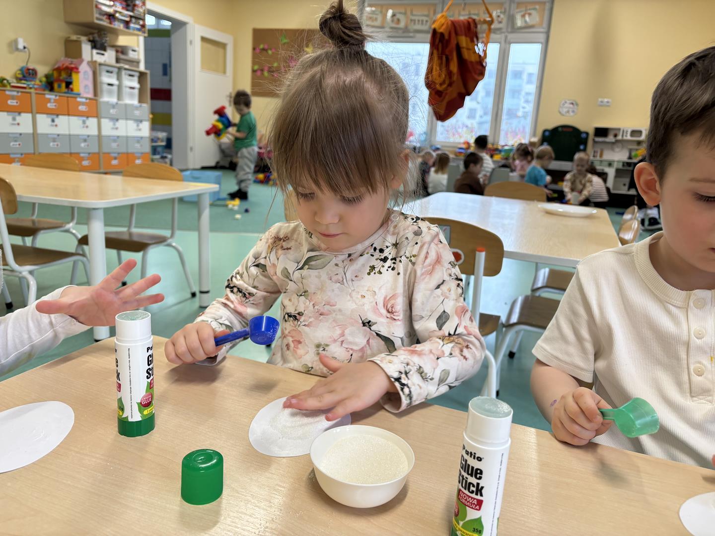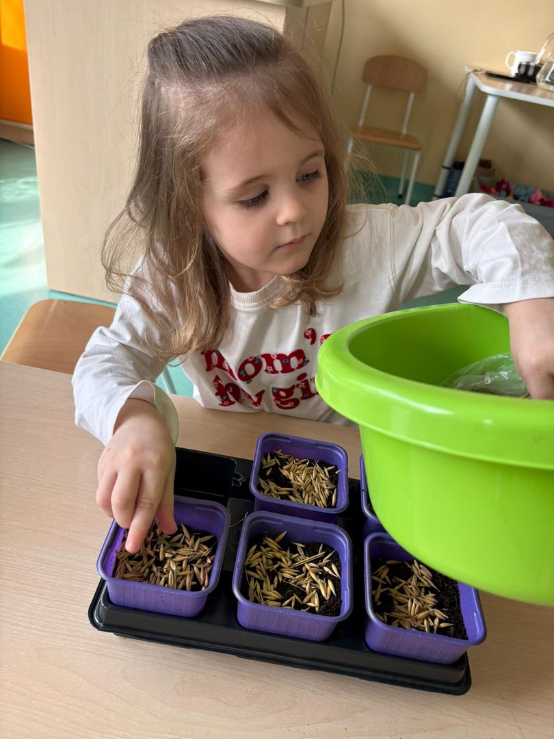W naszej grupie „Aksamitki” ostatnie dni upłynęły w radosnej, wiosennej atmosferze i intensywnych przygotowaniach do nadchodzących świąt. Obchodziliśmy Dzień Kolorowej Skarpety, który był doskonałą okazją do rozmów o akceptacji, różnorodności i życzliwości wobec innych. Dzieci z dumą prezentowały swoje barwne, nie do pary skarpetki, a wspólną zabawę uświetnił konkurs na najciekawszą skarpetkę! W ramach przygotowań wielkanocnych dzieci z zapałem przystąpiły do tworzenia papierowych pisanek, każda praca była wyjątkowa i pełna wiosennych kolorów. Nie zabrakło również tradycyjnych działań – wspólnie zasialiśmy owies, obserwując, jak z dnia na dzień rośnie i przypomina nam o budzącej się do życia przyrodzie.