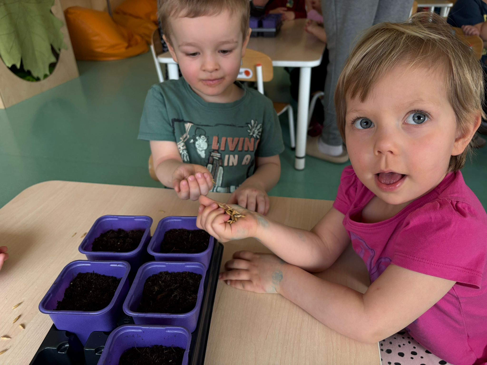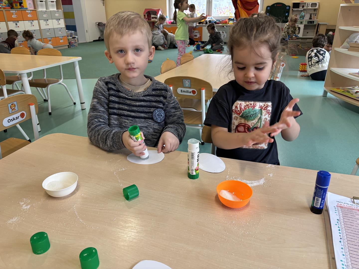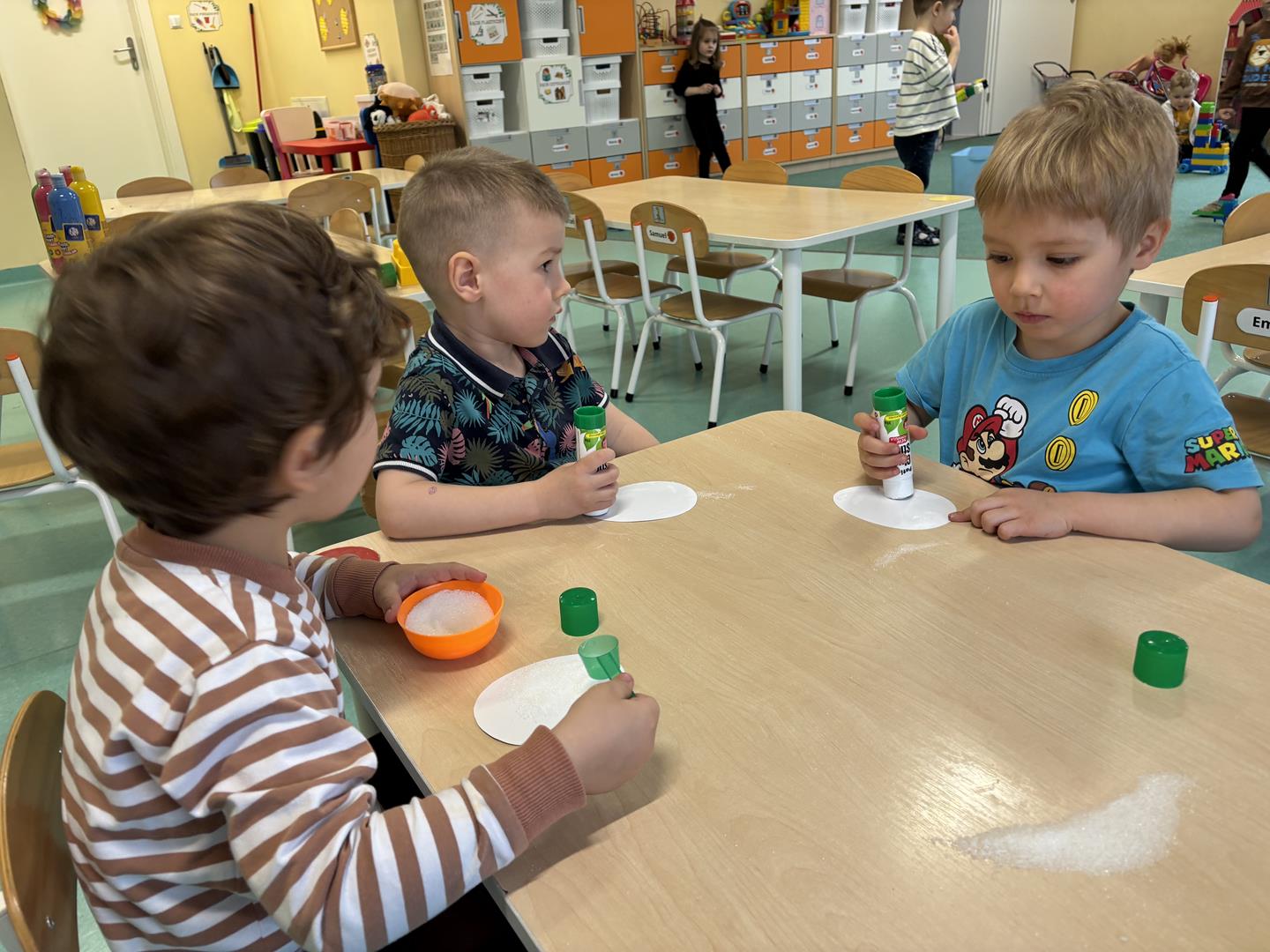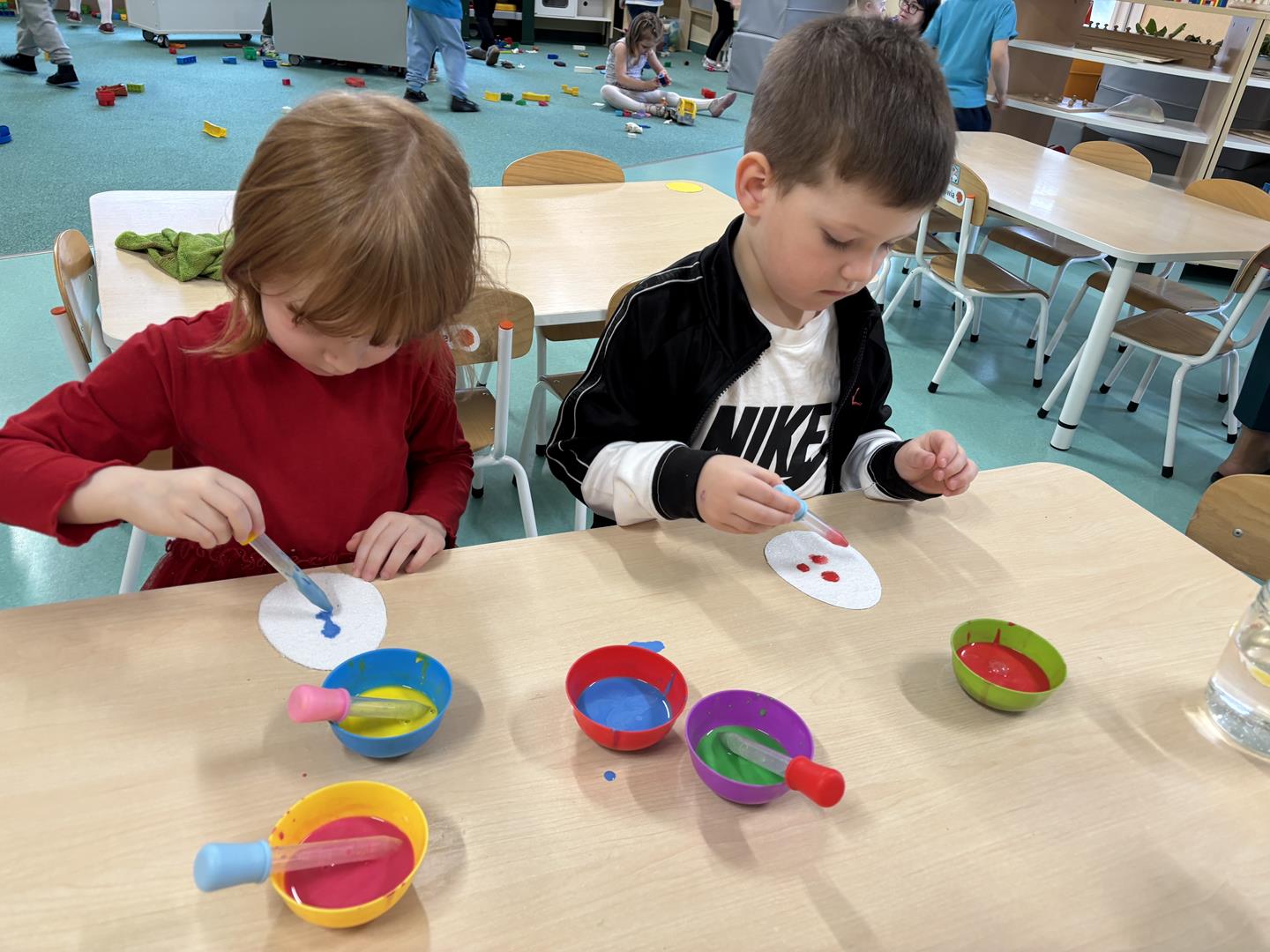 W naszej grupie „Aksamitki” ostatnie dni upłynęły w radosnej, wiosennej atmosferze i intensywnych przygotowaniach do nadchodzących świąt. Obchodziliśmy Dzień Kolorowej Skarpety, który był doskonałą okazją do rozmów o akceptacji, różnorodności i życzliwości wobec innych. Dzieci z dumą prezentowały swoje barwne, nie do pary skarpetki, a wspólną zabawę uświetnił konkurs na najciekawszą skarpetkę! W ramach przygotowań wielkanocnych dzieci z zapałem przystąpiły do tworzenia papierowych pisanek, każda praca była wyjątkowa i pełna wiosennych kolorów. Nie zabrakło również tradycyjnych działań – wspólnie zasialiśmy owies, obserwując, jak z dnia na dzień rośnie i przypomina nam o budzącej się do życia przyrodzie.