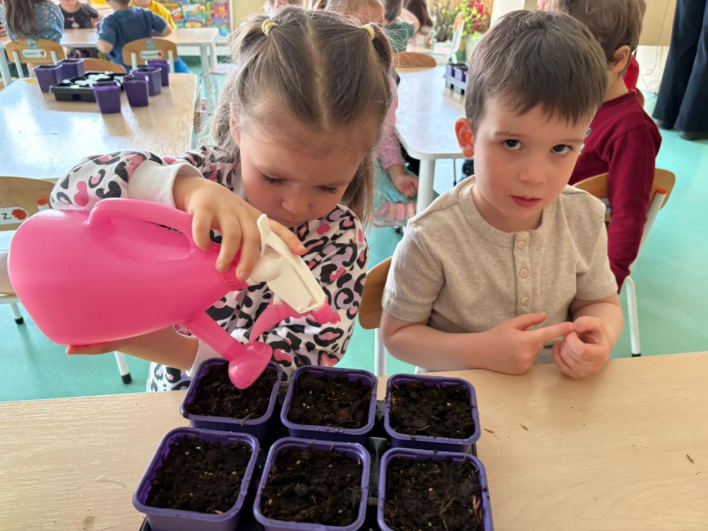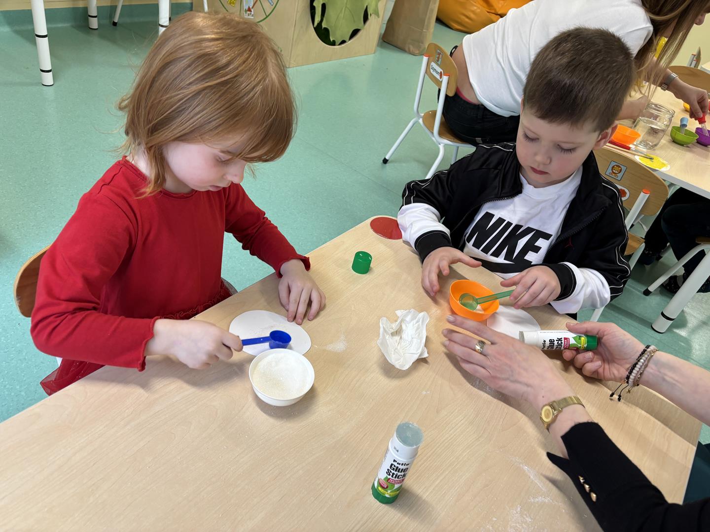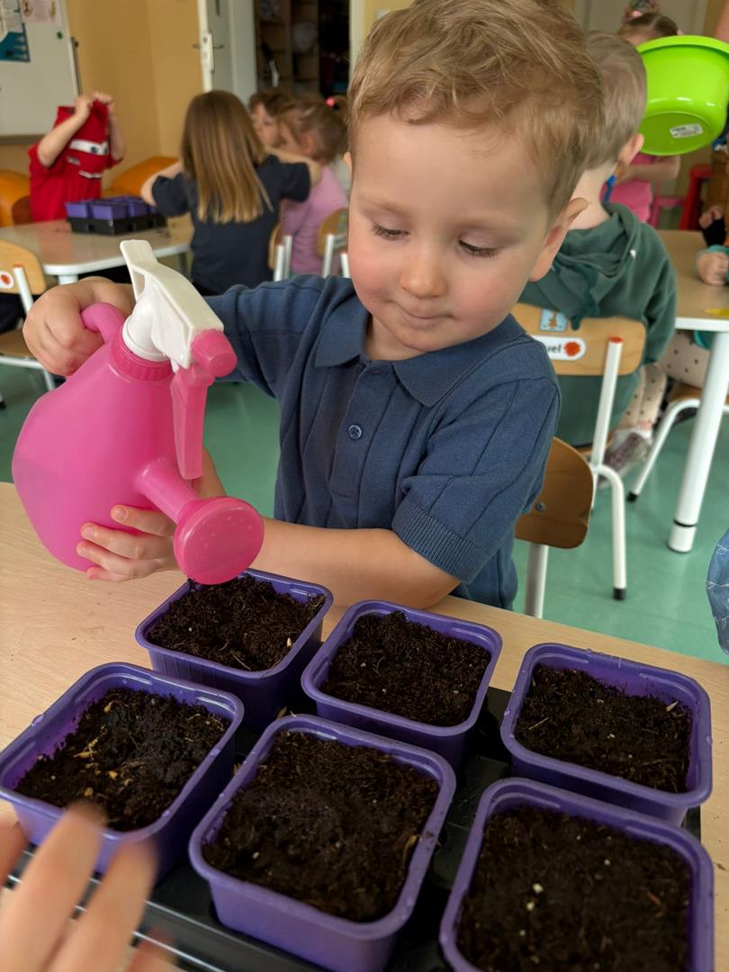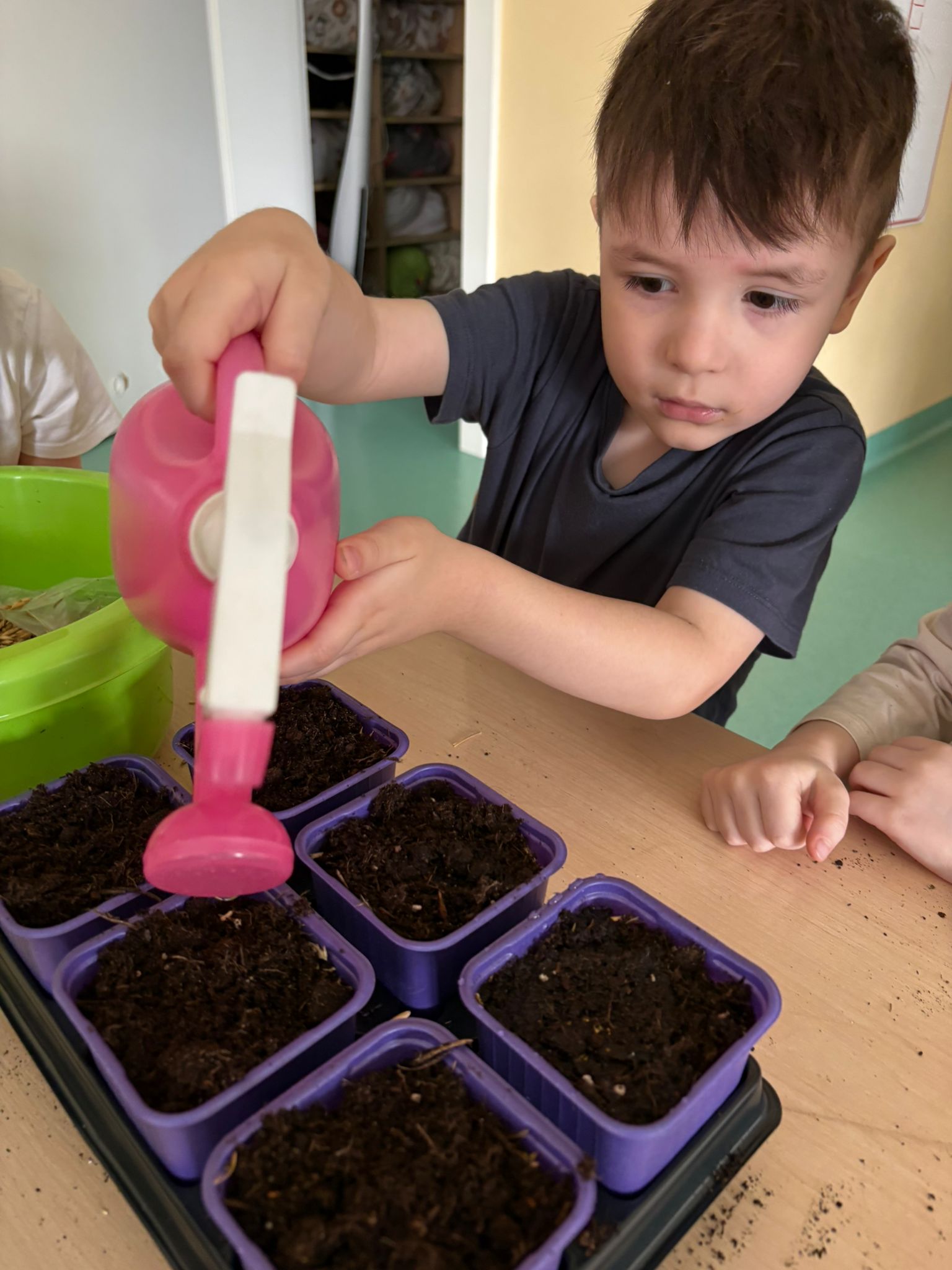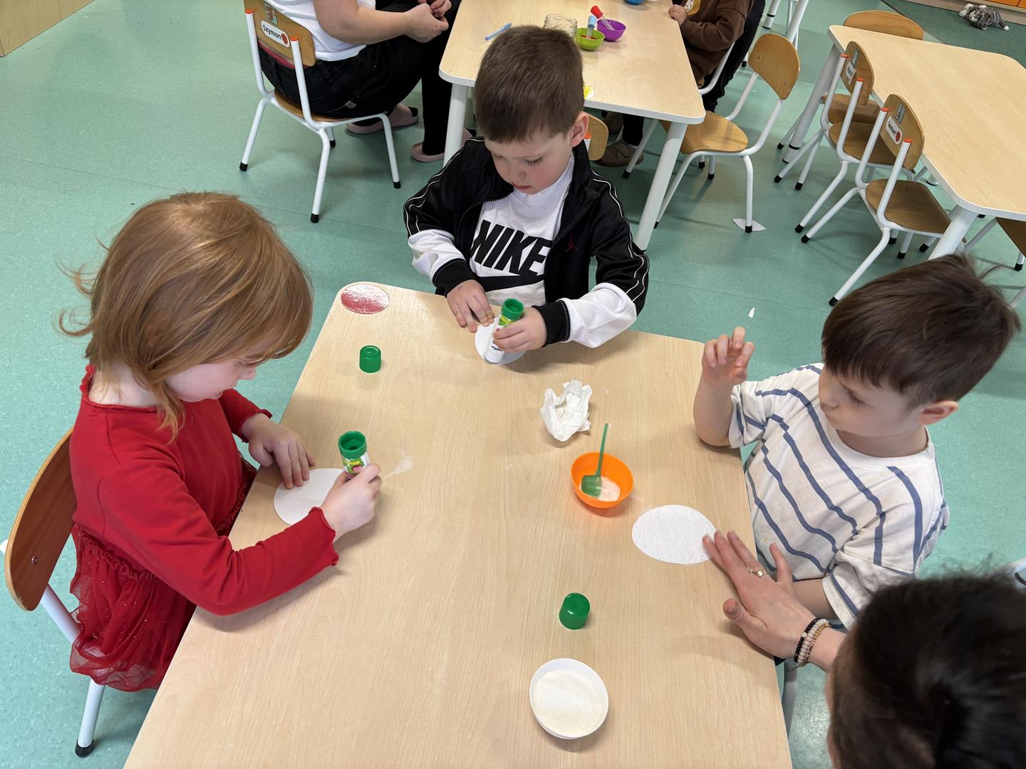 W naszej grupie „Aksamitki” ostatnie dni upłynęły w radosnej, wiosennej atmosferze i intensywnych przygotowaniach do nadchodzących świąt. Obchodziliśmy Dzień Kolorowej Skarpety, który był doskonałą okazją do rozmów o akceptacji, różnorodności i życzliwości wobec innych. Dzieci z dumą prezentowały swoje barwne, nie do pary skarpetki, a wspólną zabawę uświetnił konkurs na najciekawszą skarpetkę! W ramach przygotowań wielkanocnych dzieci z zapałem przystąpiły do tworzenia papierowych pisanek, każda praca była wyjątkowa i pełna wiosennych kolorów. Nie zabrakło również tradycyjnych działań – wspólnie zasialiśmy owies, obserwując, jak z dnia na dzień rośnie i przypomina nam o budzącej się do życia przyrodzie.