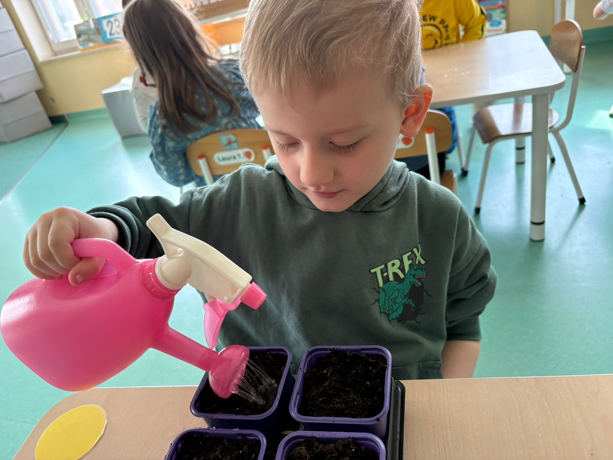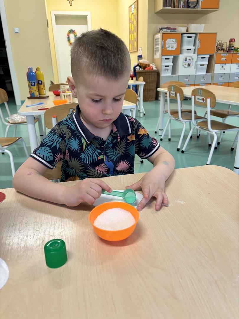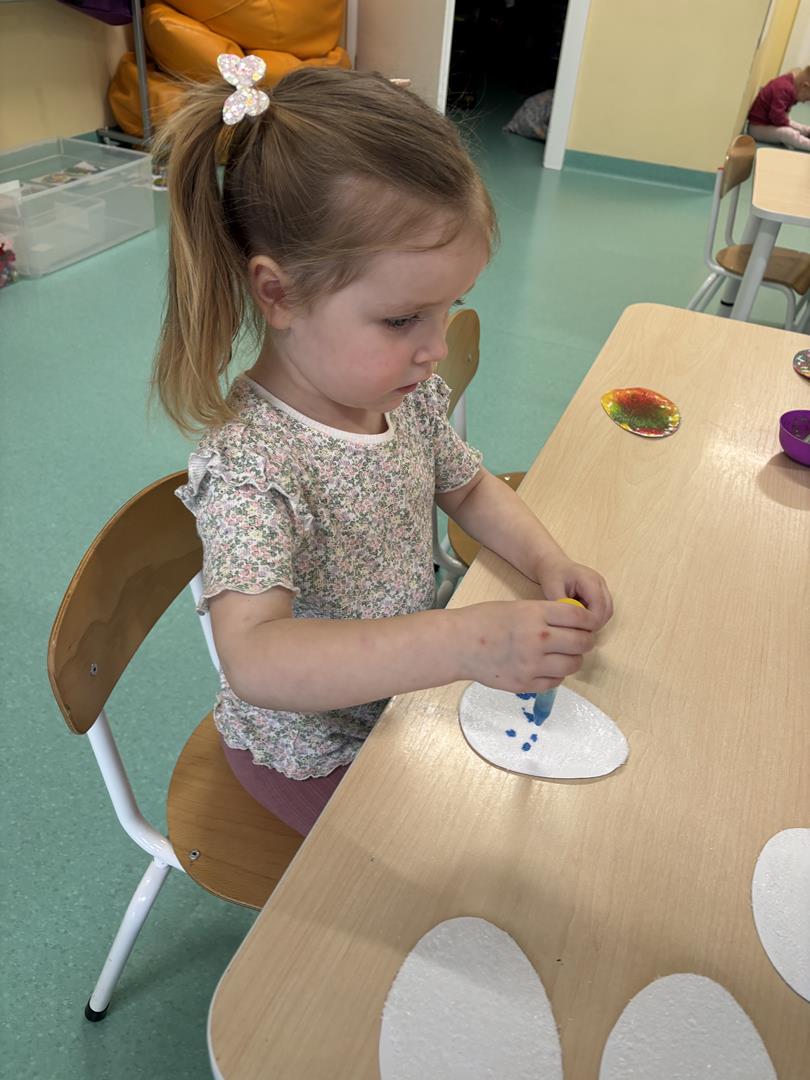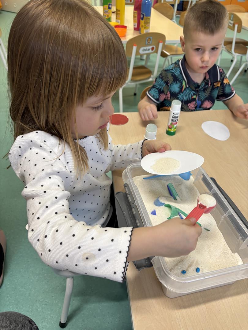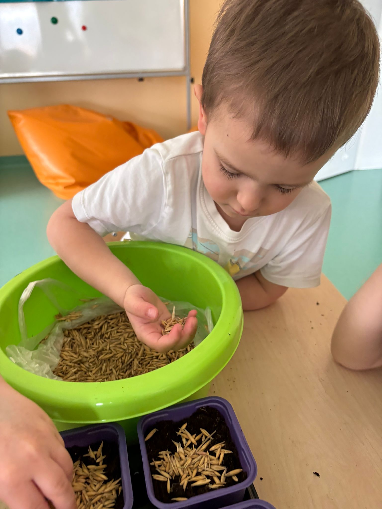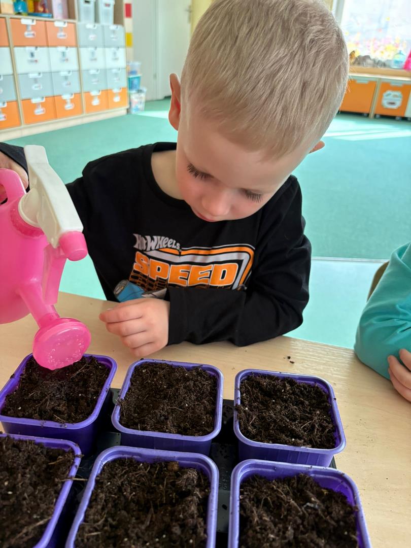 W naszej grupie „Aksamitki” ostatnie dni upłynęły w radosnej, wiosennej atmosferze i intensywnych przygotowaniach do nadchodzących świąt. Obchodziliśmy Dzień Kolorowej Skarpety, który był doskonałą okazją do rozmów o akceptacji, różnorodności i życzliwości wobec innych. Dzieci z dumą prezentowały swoje barwne, nie do pary skarpetki, a wspólną zabawę uświetnił konkurs na najciekawszą skarpetkę! W ramach przygotowań wielkanocnych dzieci z zapałem przystąpiły do tworzenia papierowych pisanek, każda praca była wyjątkowa i pełna wiosennych kolorów. Nie zabrakło również tradycyjnych działań – wspólnie zasialiśmy owies, obserwując, jak z dnia na dzień rośnie i przypomina nam o budzącej się do życia przyrodzie.