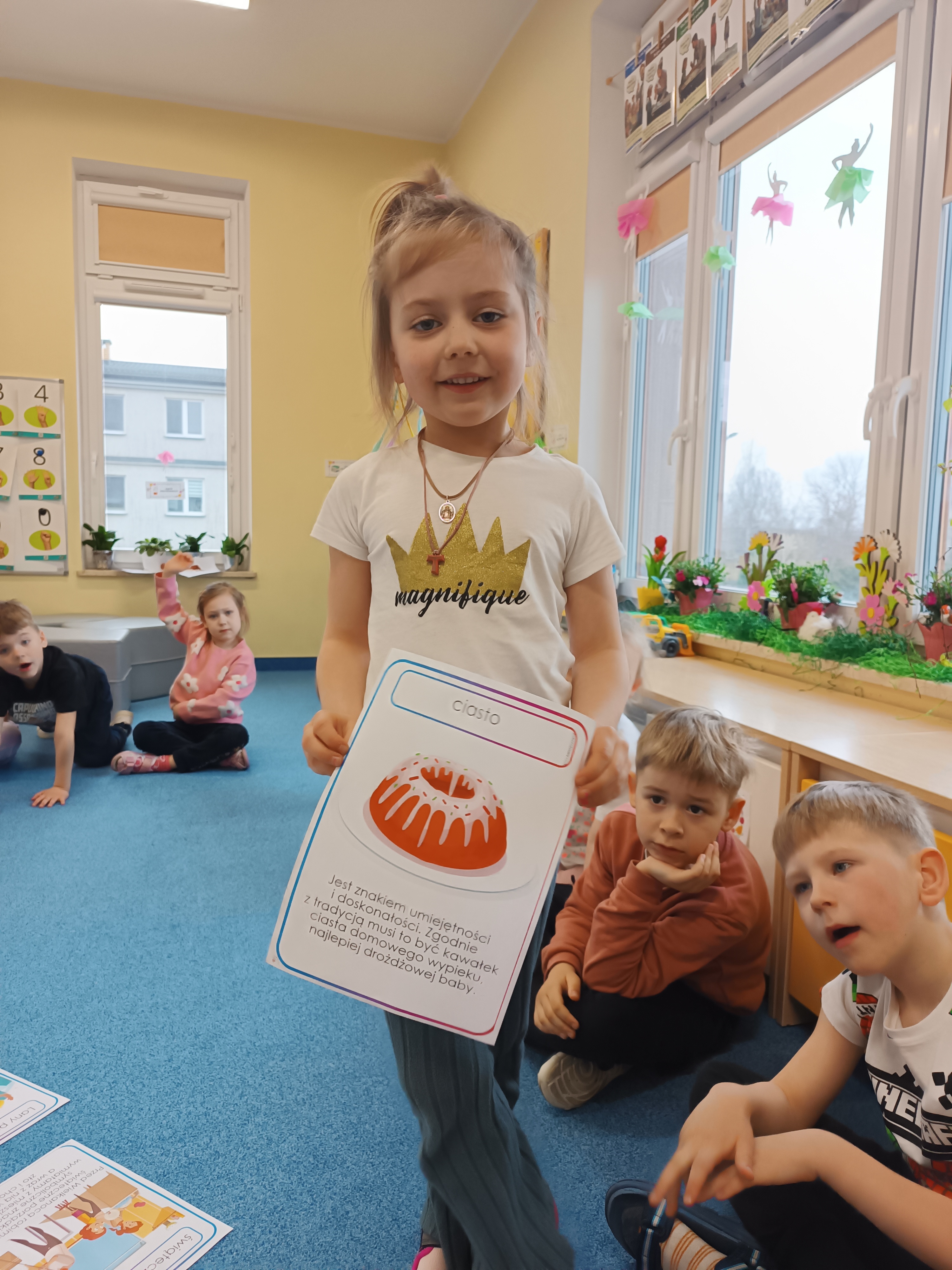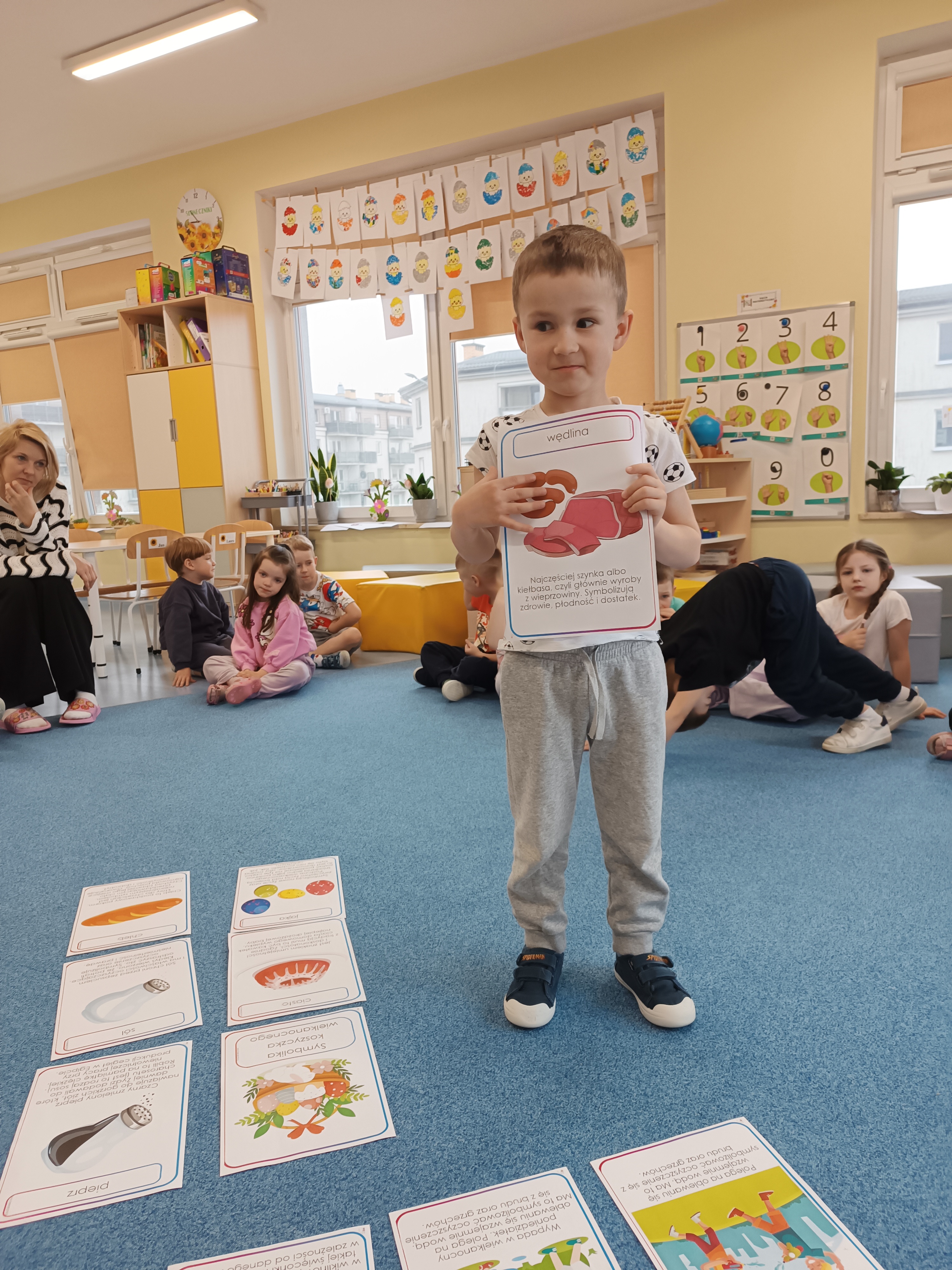 Poznaliśmy tradycje i zwyczaje związane z tym wyjątkowym czasem – dzieci dowiedziały się, co wkładamy do koszyczka wielkanocnego oraz dlaczego święcimy pokarmy.