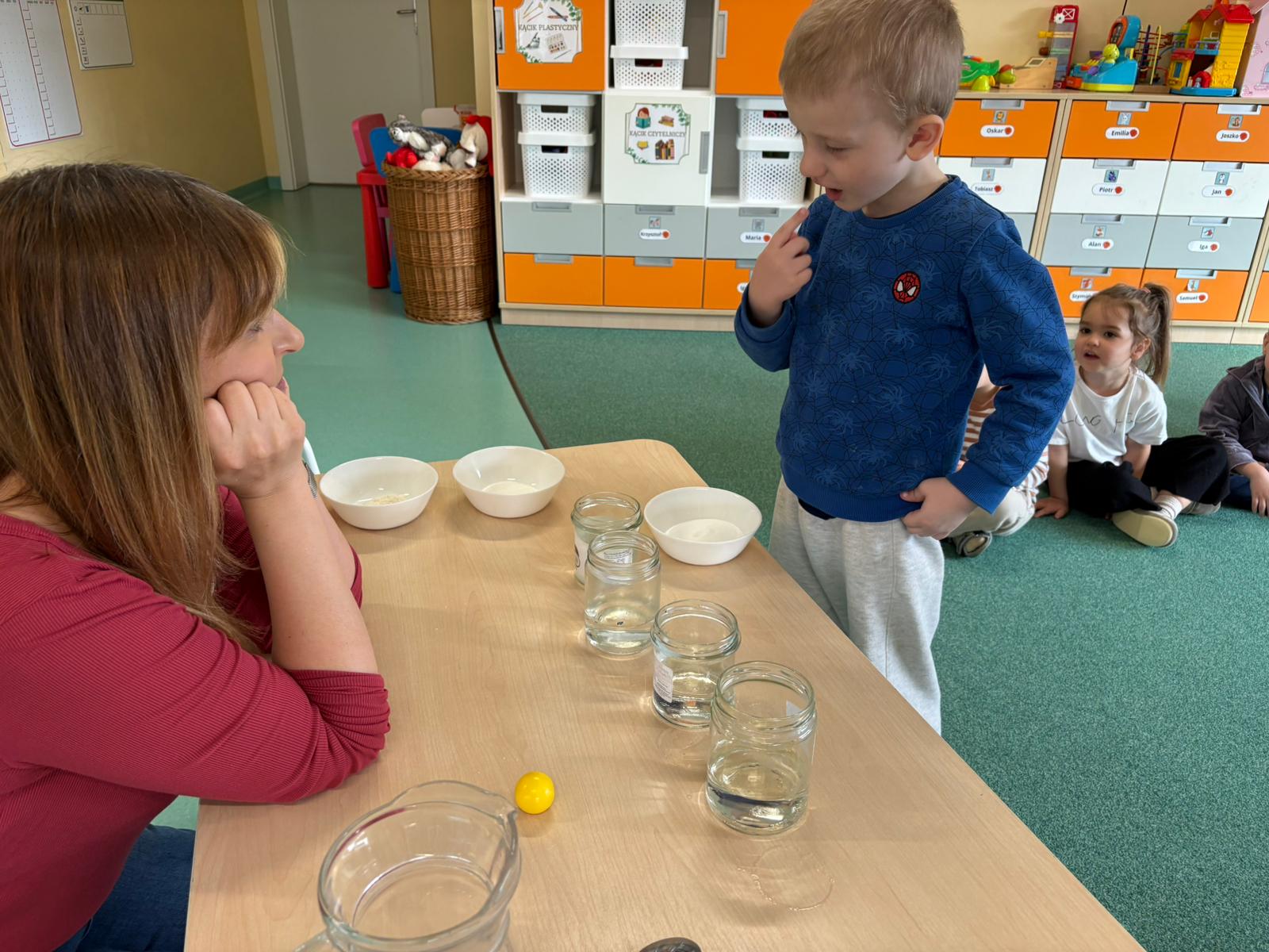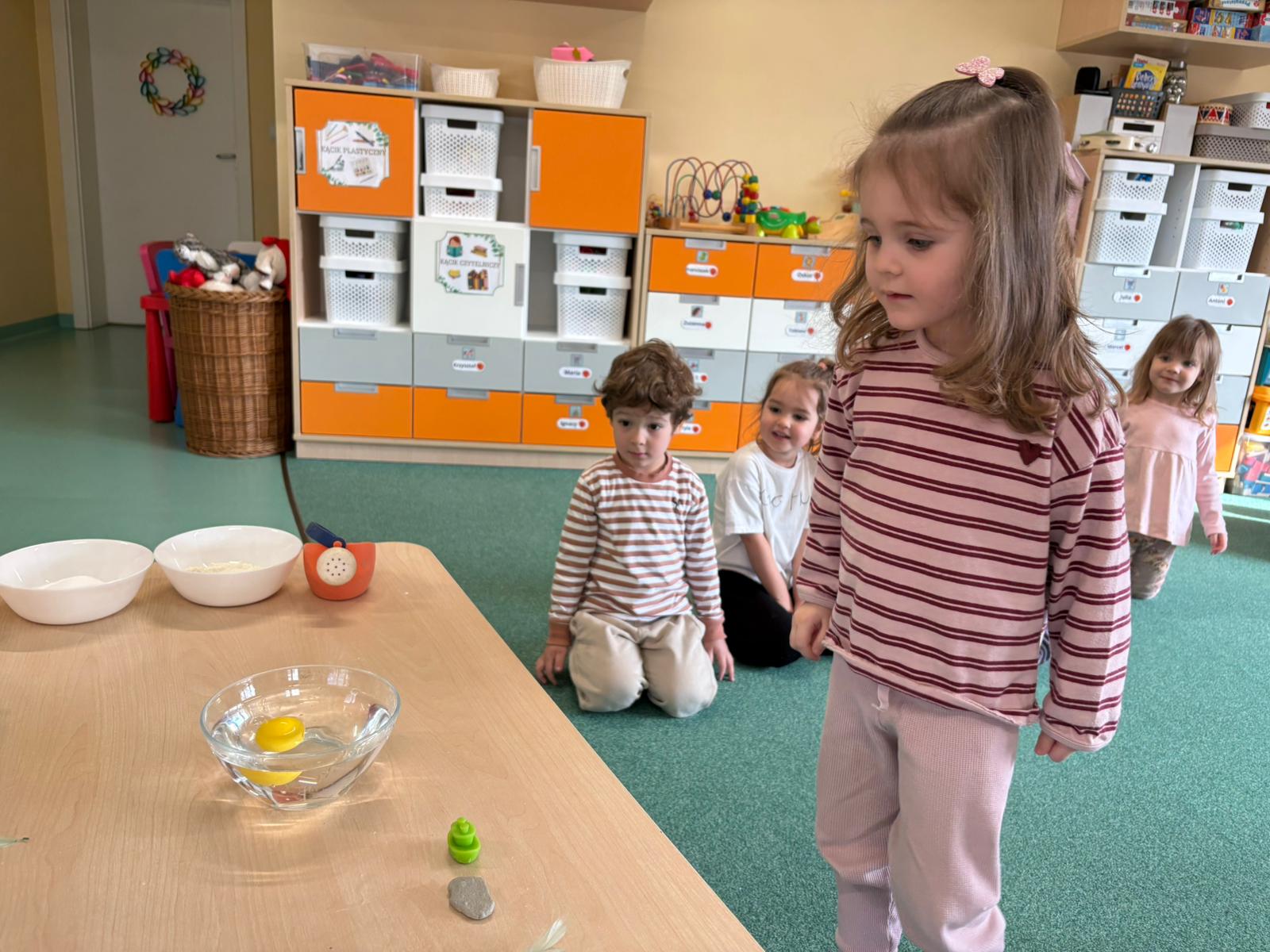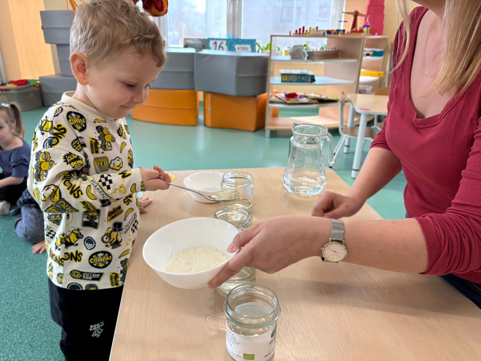 Nasze przedszkolaki wyruszyły w niezwykłą podróż po świecie żywiołów, a najwięcej radości przyniosły im zabawy i eksperymenty z wodą. Było chlapanie, przelewanie i mnóstwo odkrywania! Dzieci z zaciekawieniem sprawdzały, co pływa, a co tonie, co się rozpuszcza, a co nie, a także przekonały się, czy woda ma swój kształt. Oj, działo się naprawdę dużo!