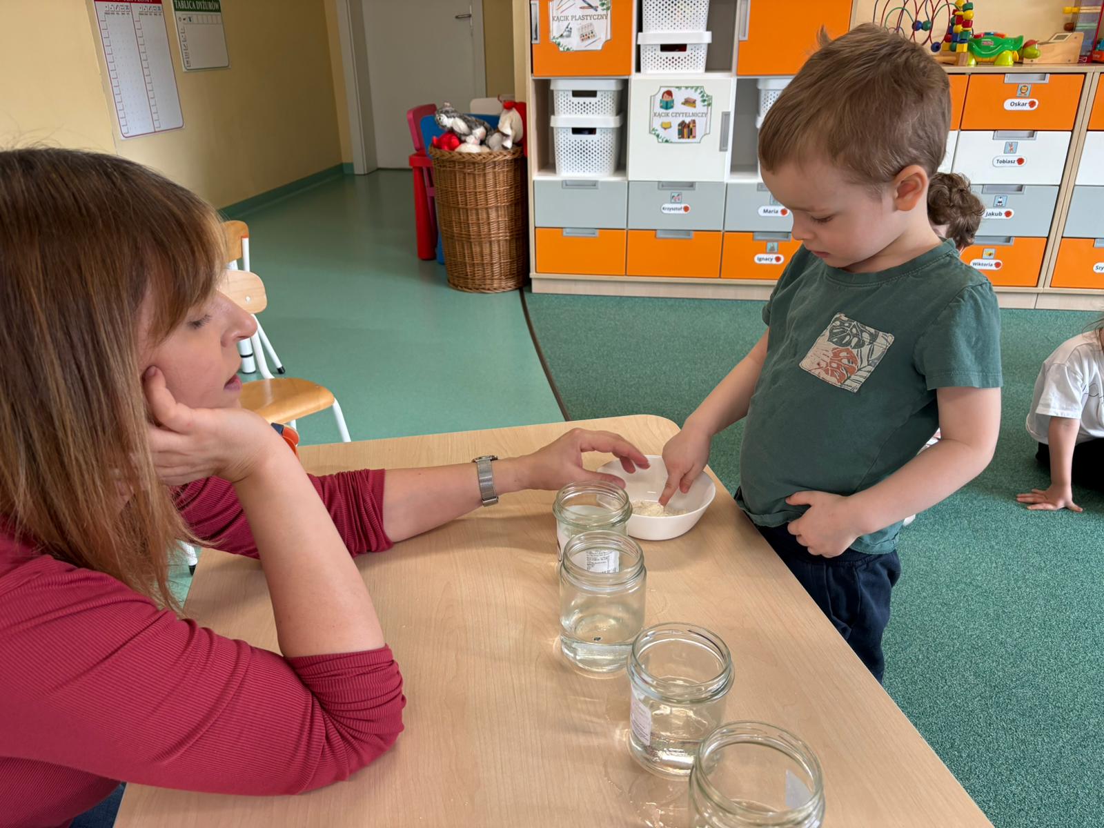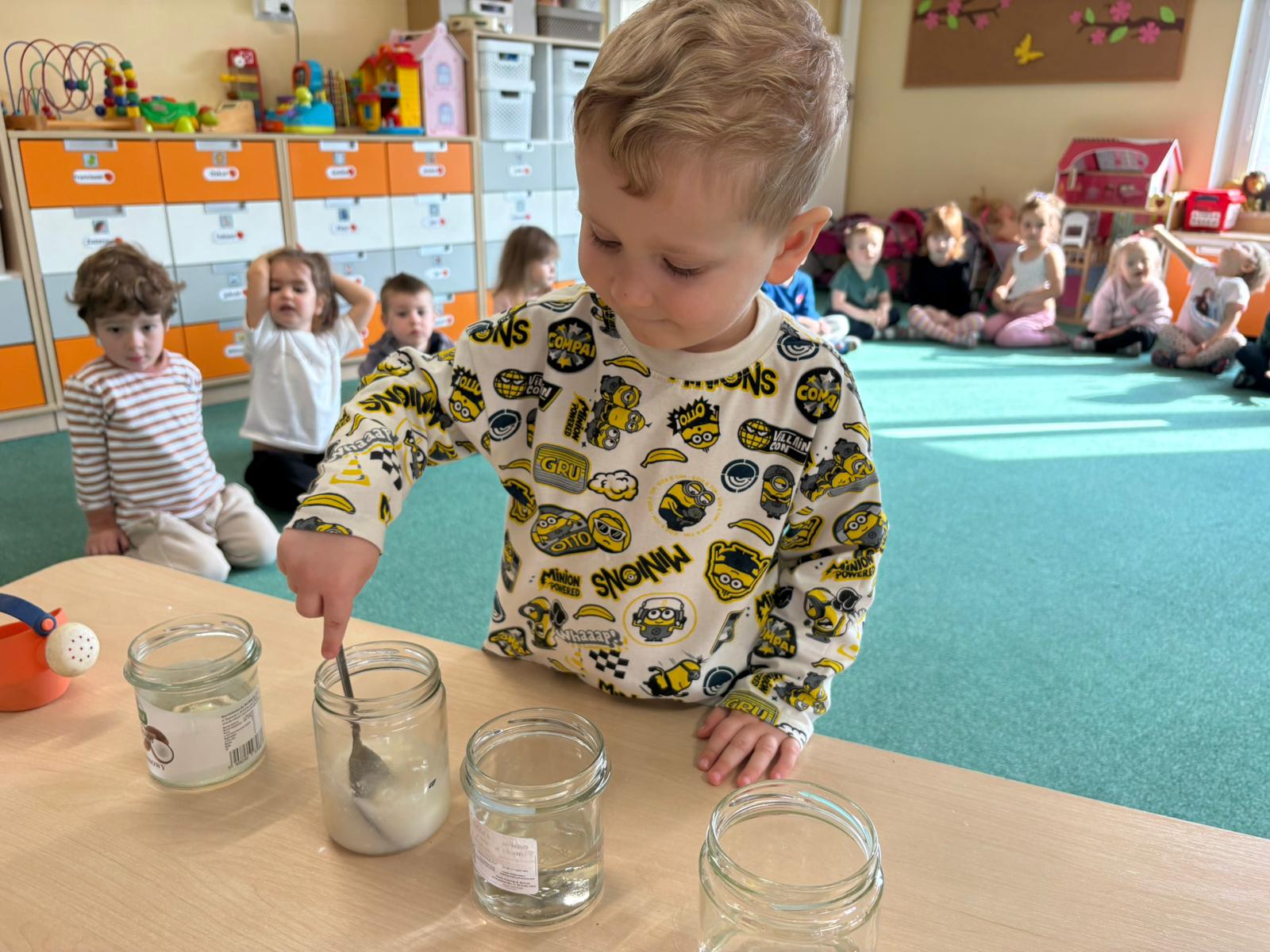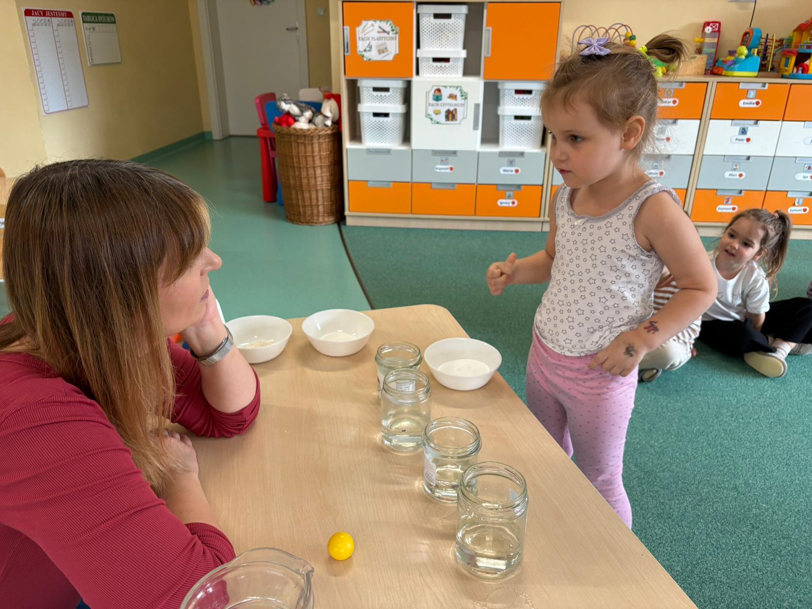 Nasze przedszkolaki wyruszyły w niezwykłą podróż po świecie żywiołów, a najwięcej radości przyniosły im zabawy i eksperymenty z wodą. Było chlapanie, przelewanie i mnóstwo odkrywania! Dzieci z zaciekawieniem sprawdzały, co pływa, a co tonie, co się rozpuszcza, a co nie, a także przekonały się, czy woda ma swój kształt. Oj, działo się naprawdę dużo!