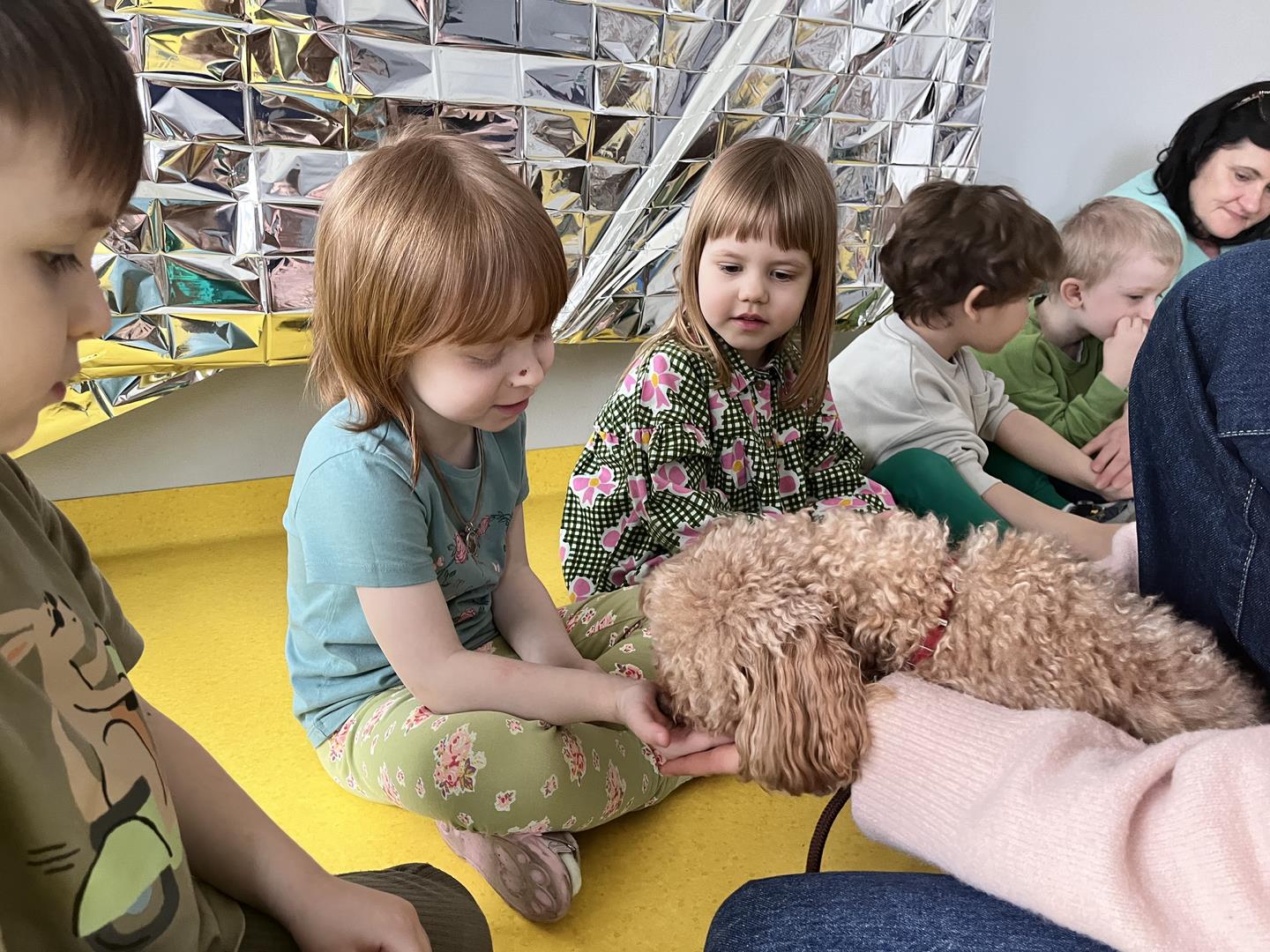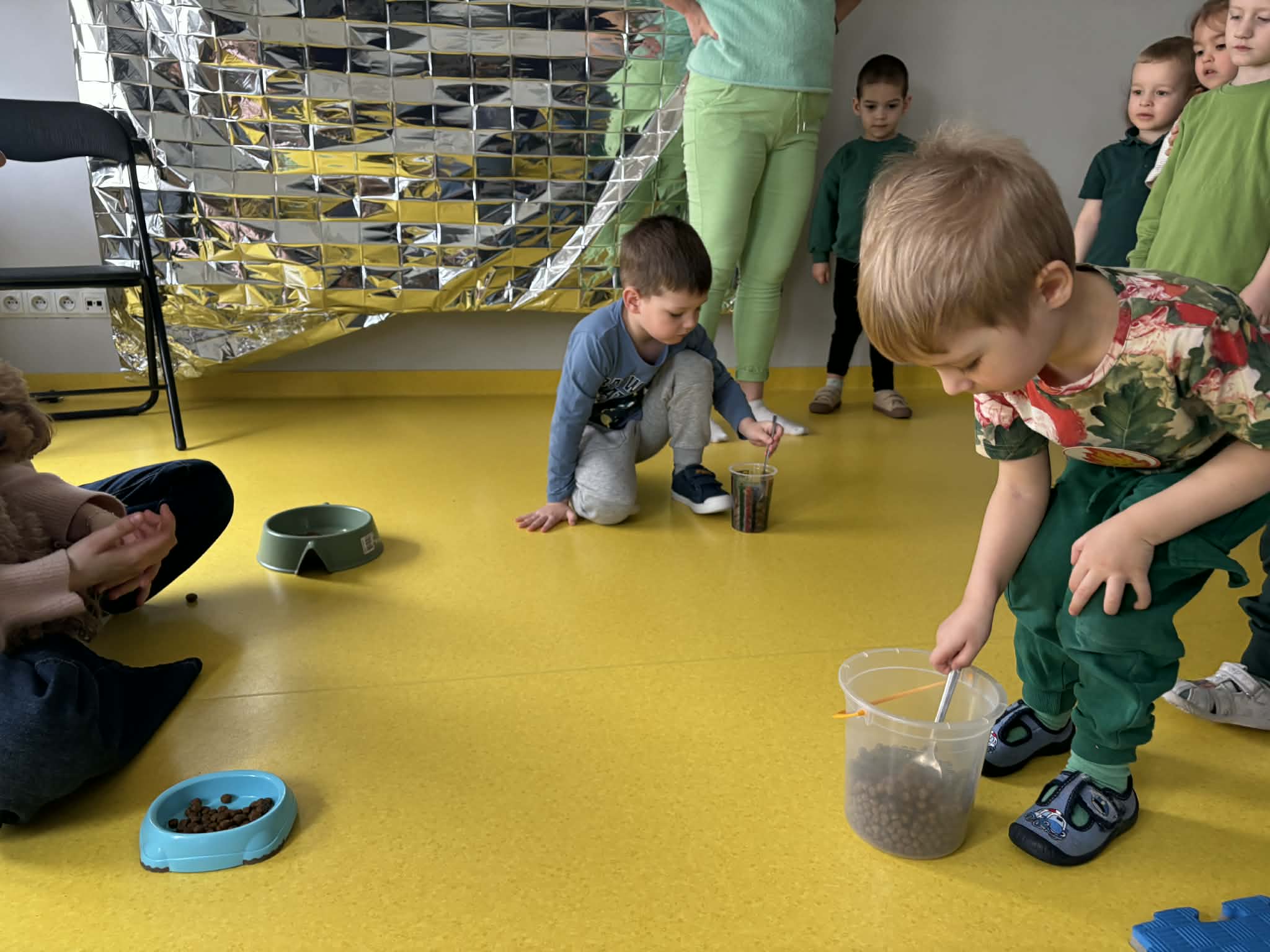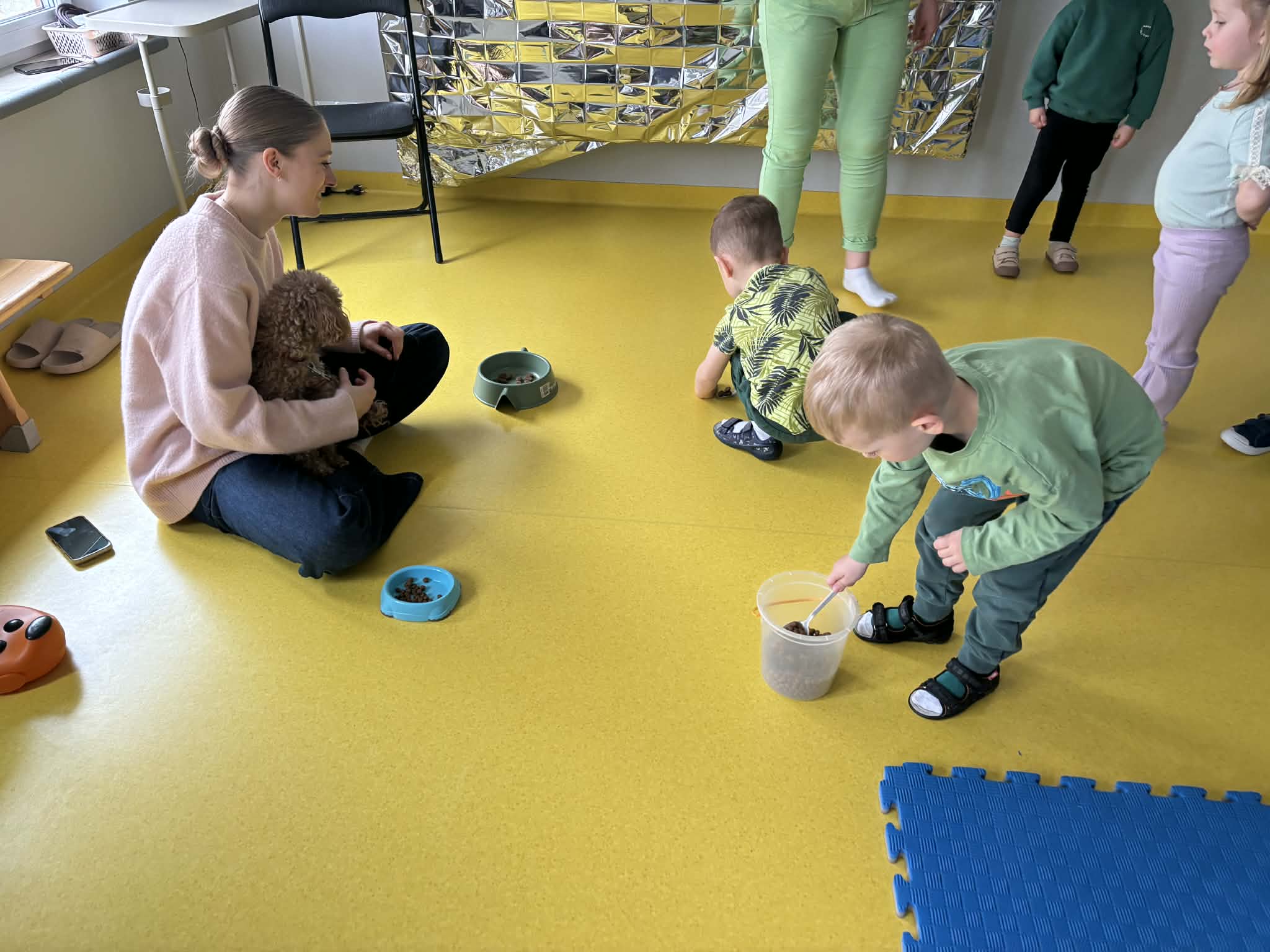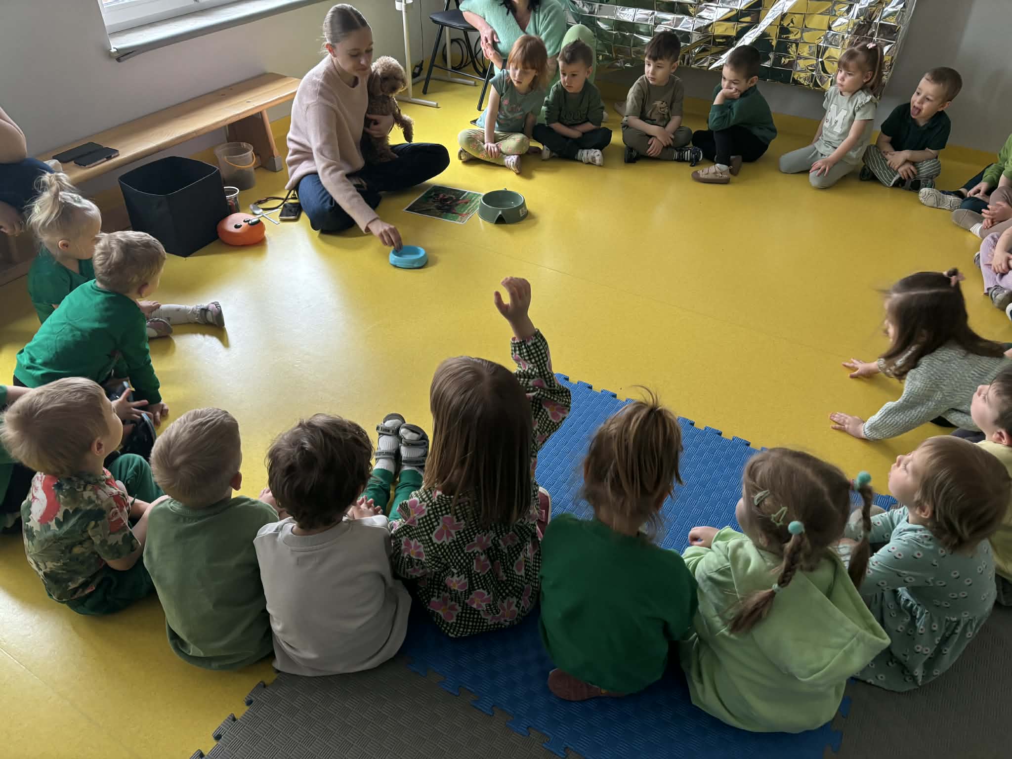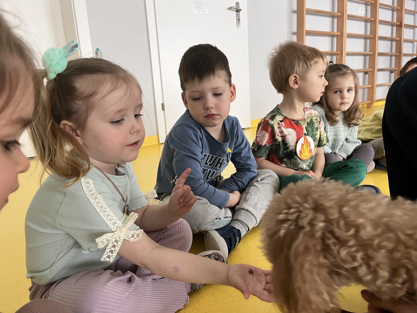 Na zakończenie tego pełnego wrażeń tygodnia odwiedzili nas wyjątkowi goście – Irysek oraz pani Ola. Zajęcia z dogoterapii były pełne uśmiechu, czułości i radości. Dzieci były zachwycone!