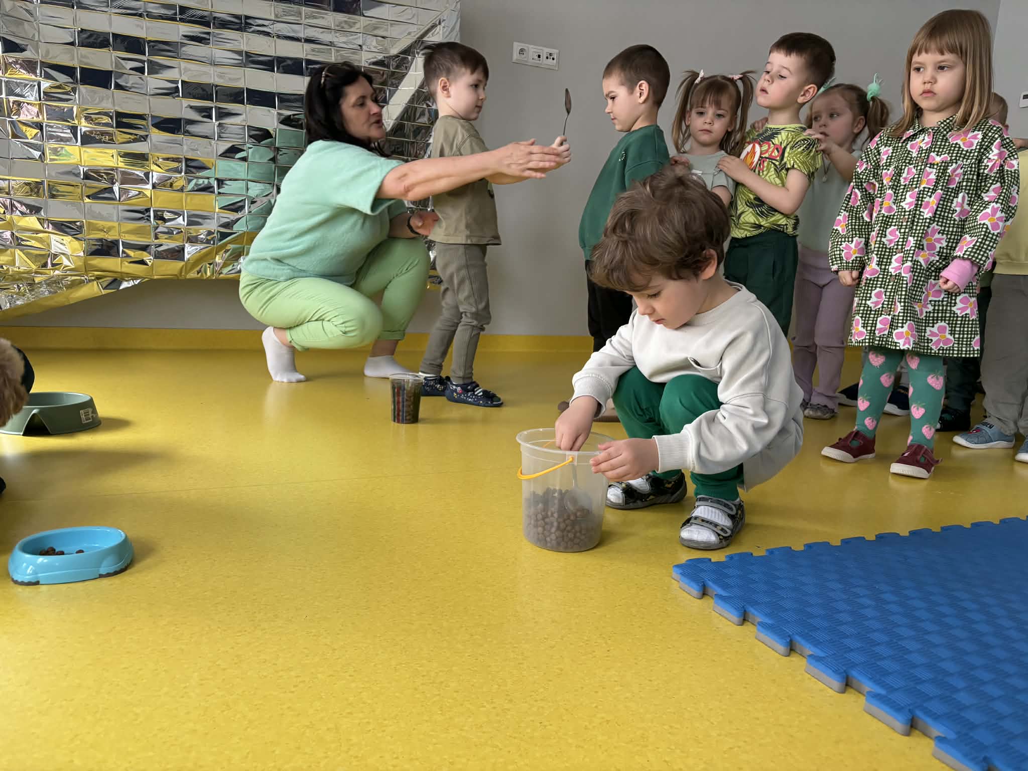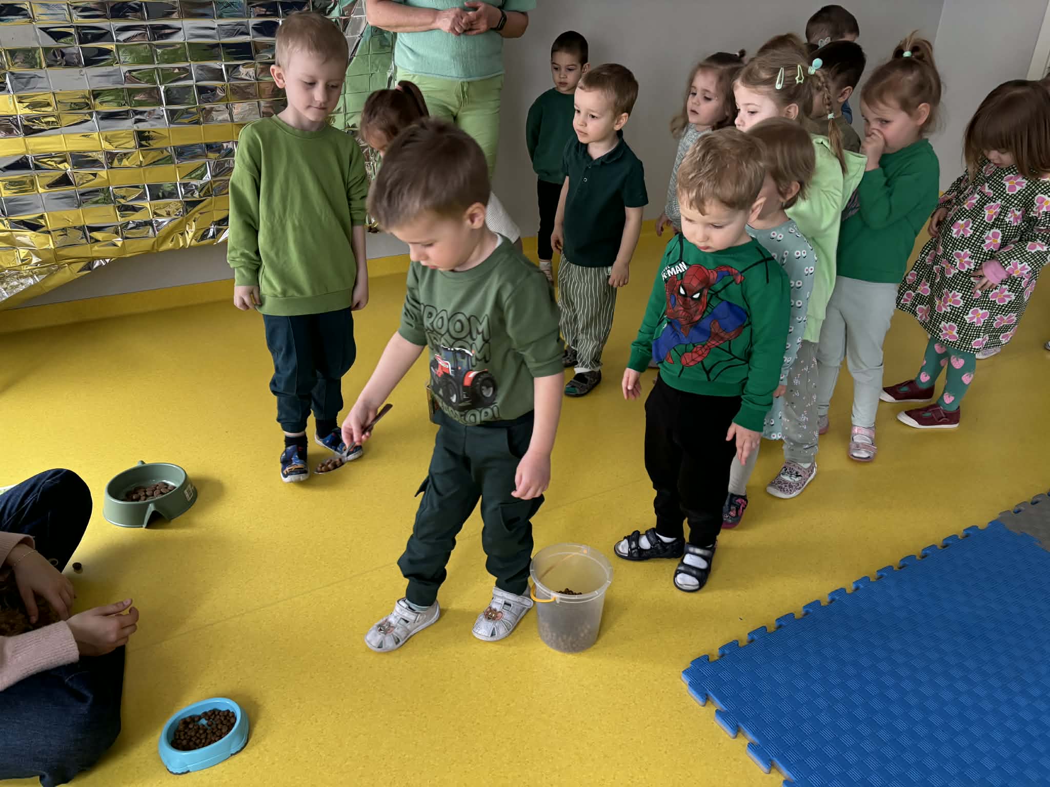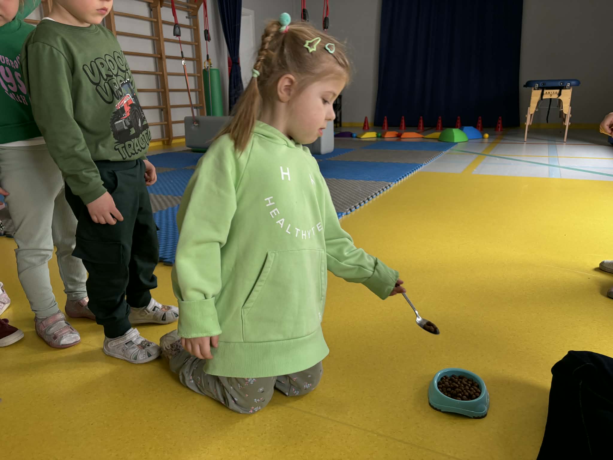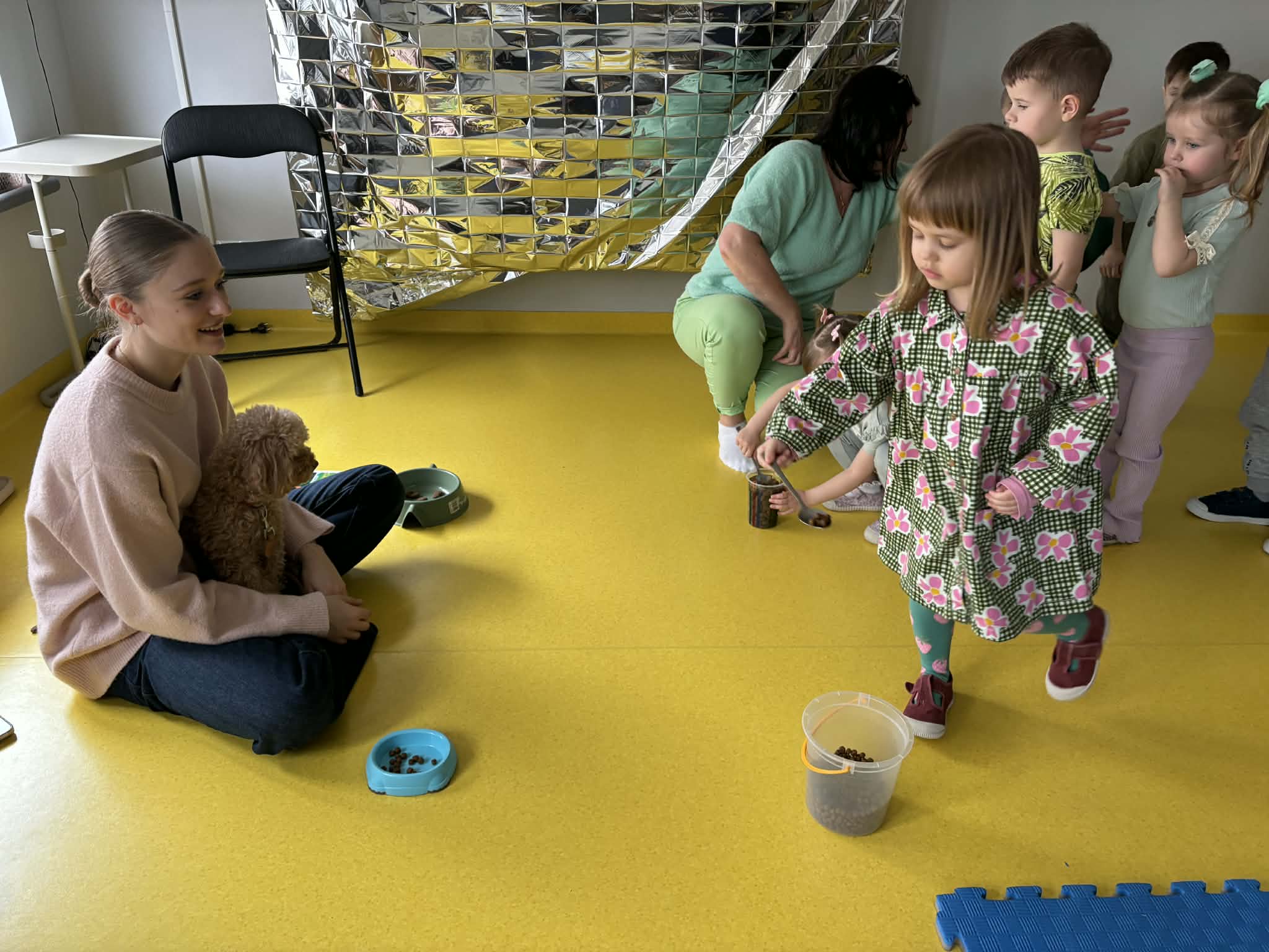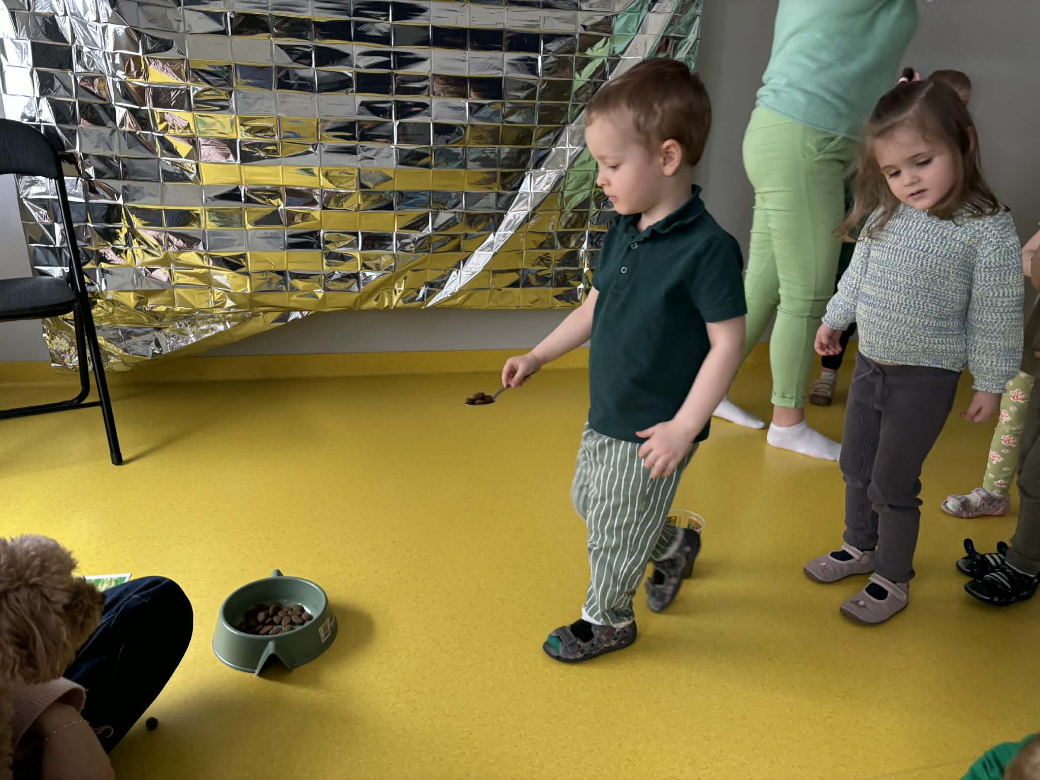Na zakończenie tego pełnego wrażeń tygodnia odwiedzili nas wyjątkowi goście – Irysek oraz pani Ola. Zajęcia z dogoterapii były pełne uśmiechu, czułości i radości. Dzieci były zachwycone!